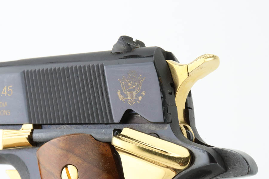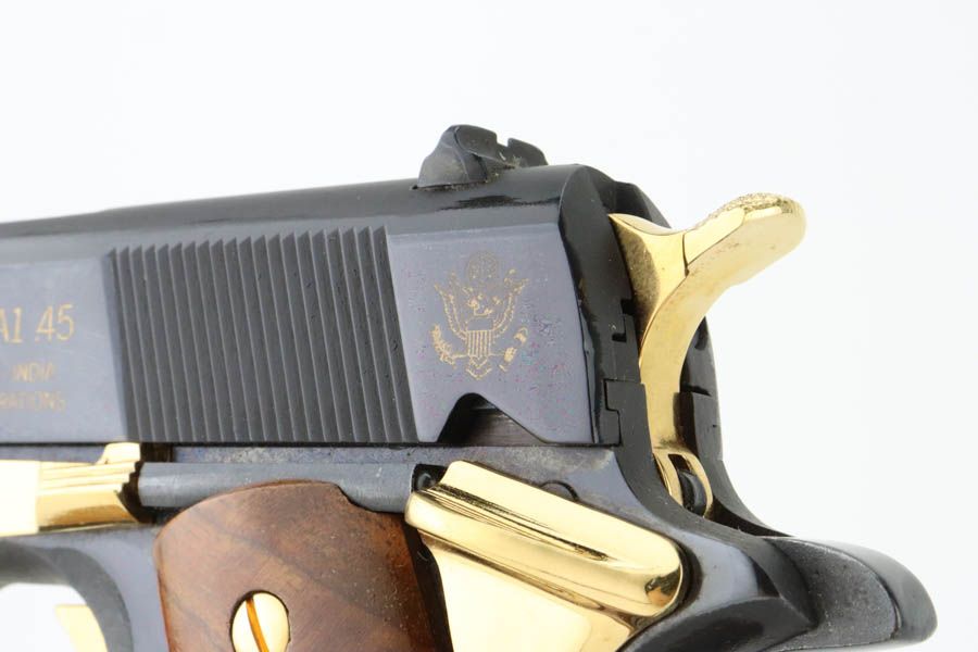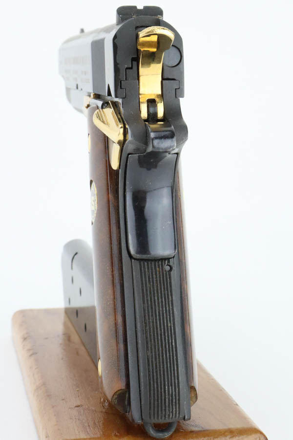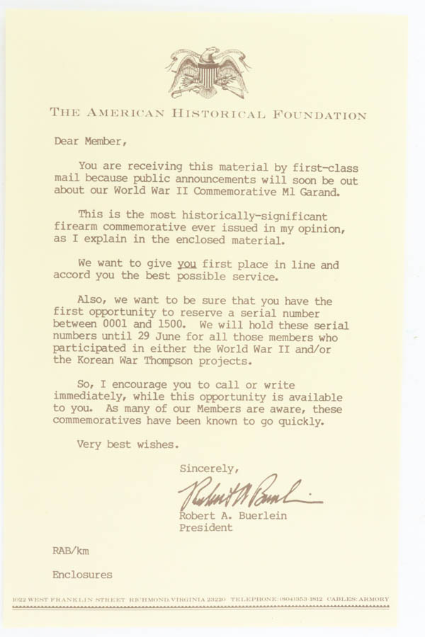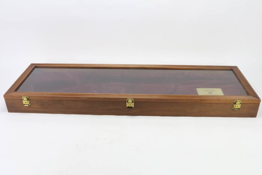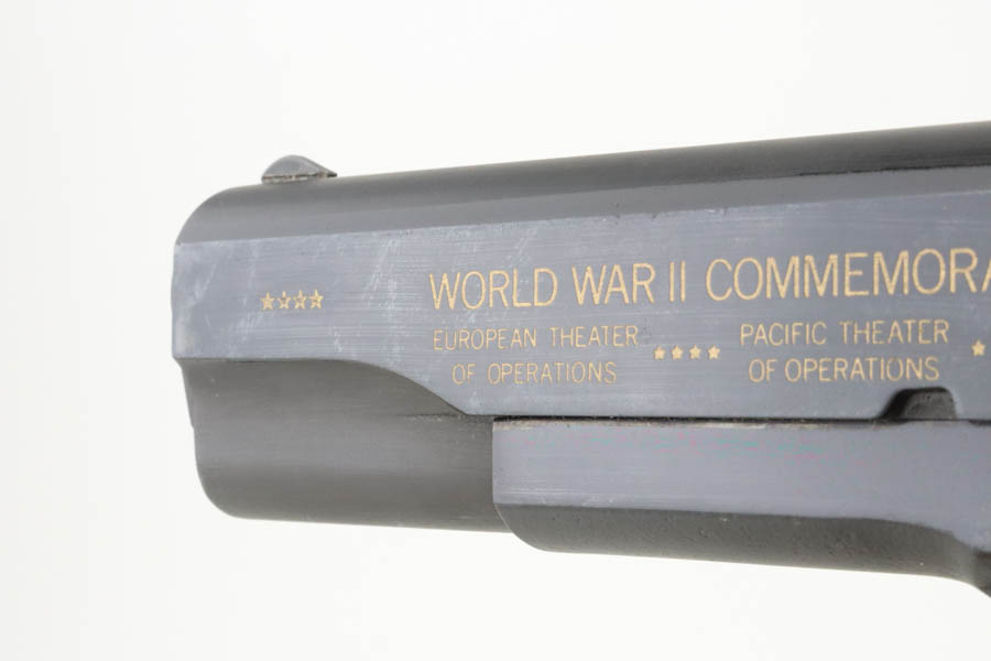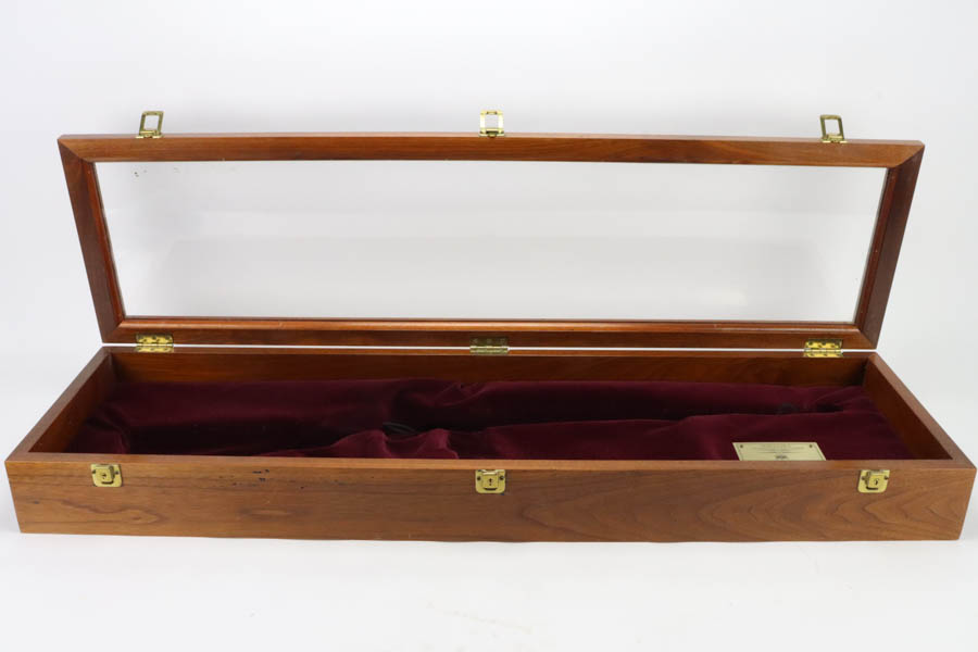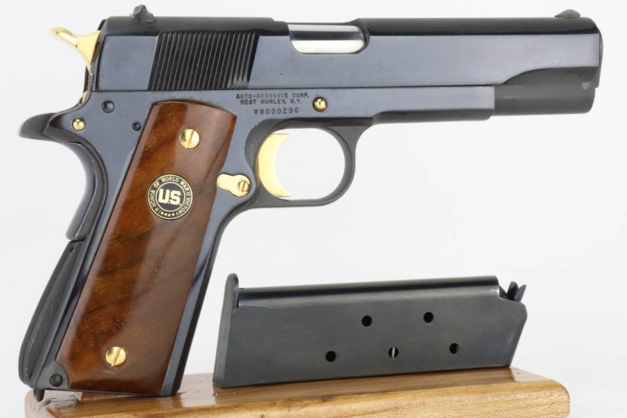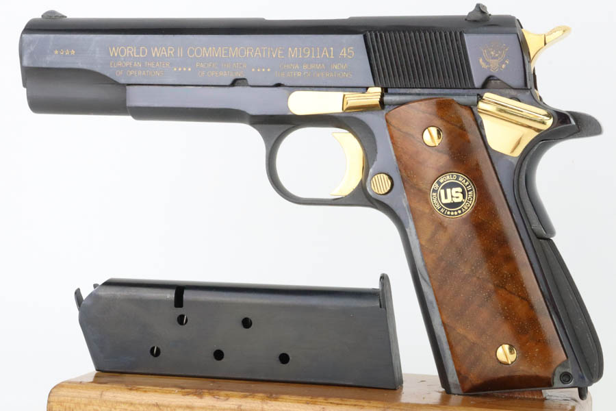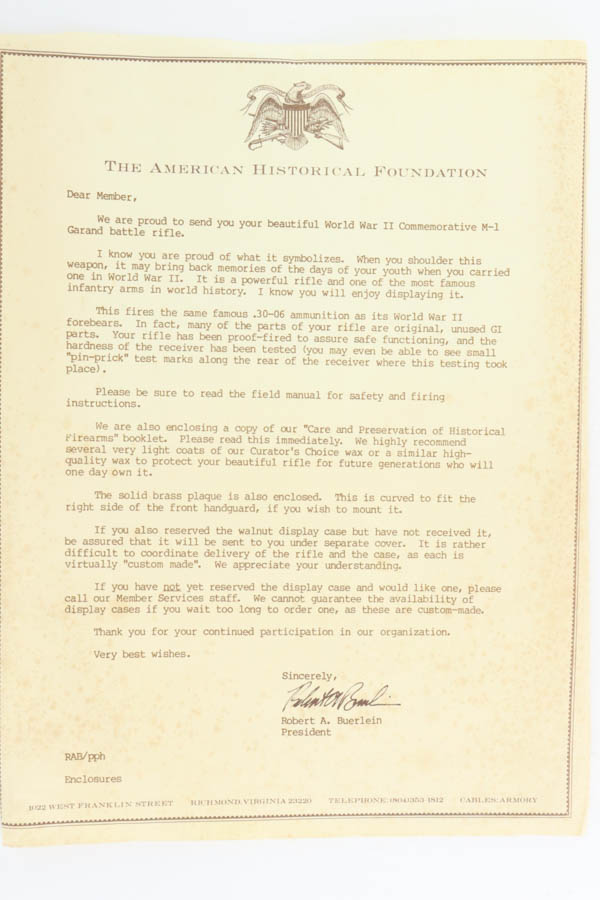 6/18/24 – This is a very cool, matching set of the Auto Ordnance WW2 Commemorative Firearms offering issued in conjunction with the American Historical Society. This four-gun set has matching serial numbers between each firearm, gun #296 in the set. This set was bought new by our consignor and he never fired any of them. They are all in mint condition, and come with all of the original display cases and paperwork/literature. The Garand is a Springfield production, Iver Johnson made the M1 carbine, and Auto Ordnance produced the 1911A1 and Thompson. It appears only 500 of these sets were made and it’s very difficult to find a matching set, especially in unfired condition.