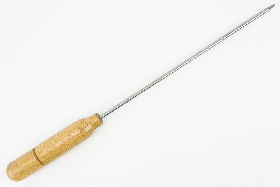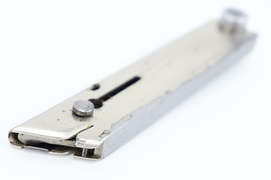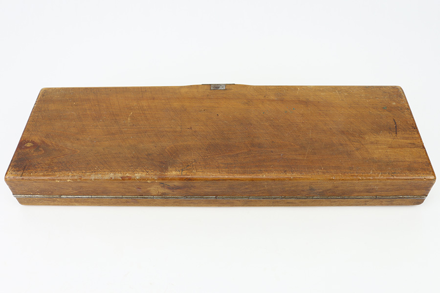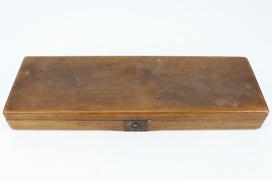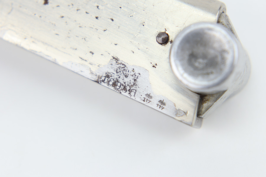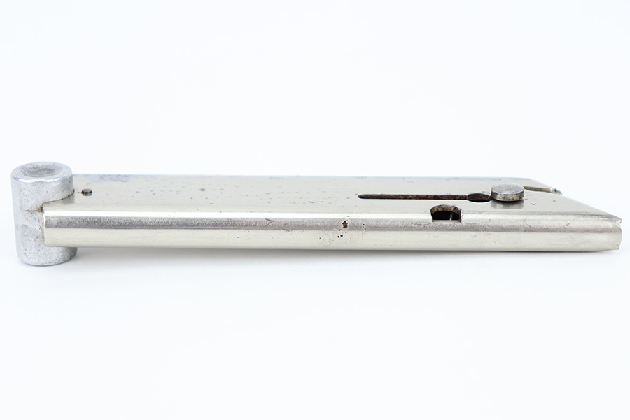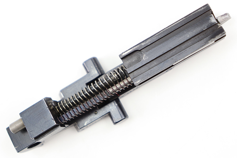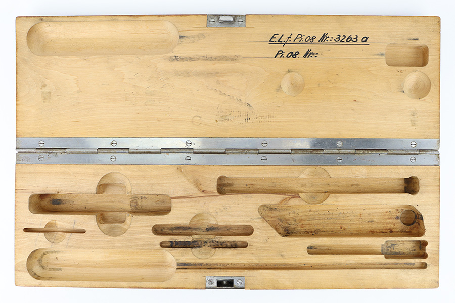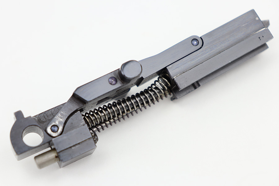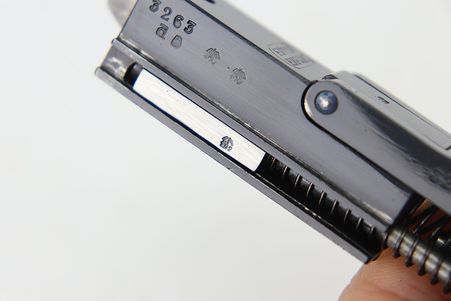 12/29/23 – This is an original WW2 era production German .22 Conversion kit. The kit is complete with an original wooden case that’s labeled and numbered by hand on the interior lid. The serial number on the case (3263a) is matching to the number on the barrel and toggle assembly. The magazine is numbered 1695a (mismatching), but still has the proper/correct waffen eagle proof stamps. The cleaning rod and block piece are eagle proof stamped and not numbered. The kit is in great condition overall with excellent original finish on the toggle assembly. The springs are tight and smooth with no functionality issues. The barrel is excellent with a minty bore that we rate 10/10 overall. The magazine has some light surface flaking of the nickel tube, as well as some speckling patina, but no major flaws and no functional issues.