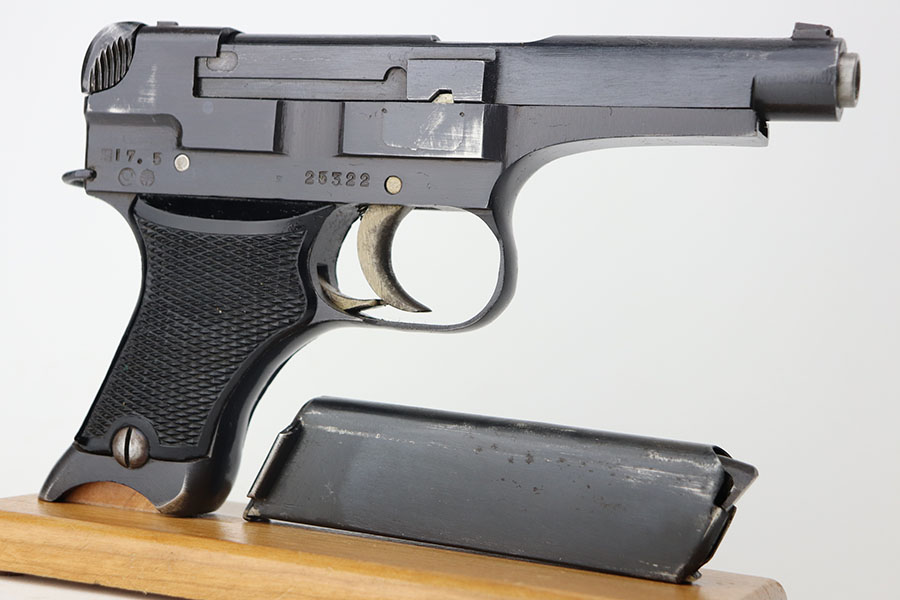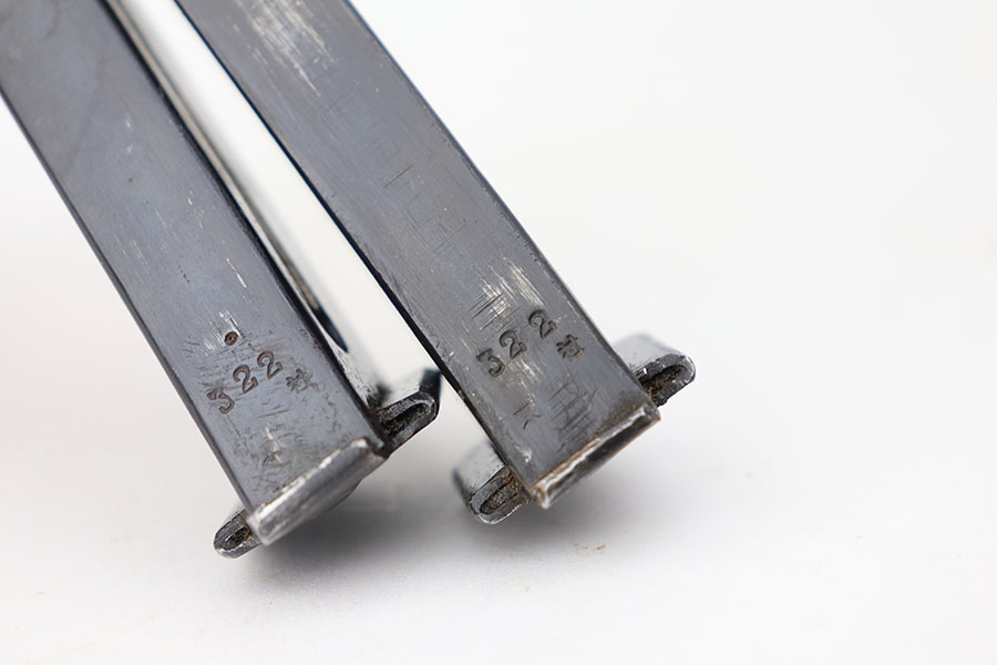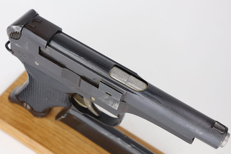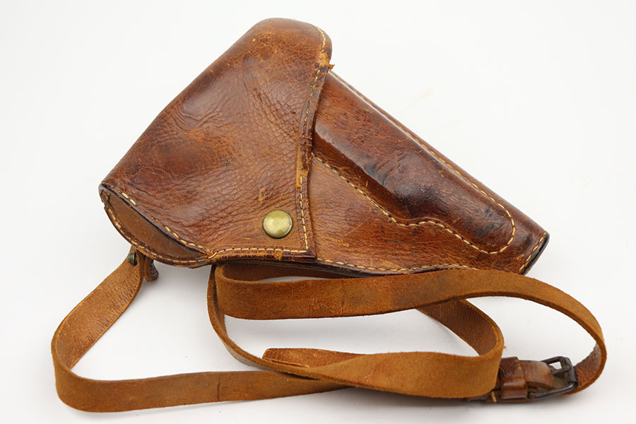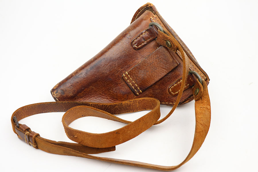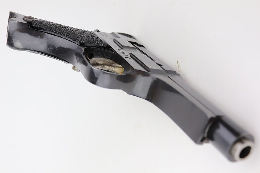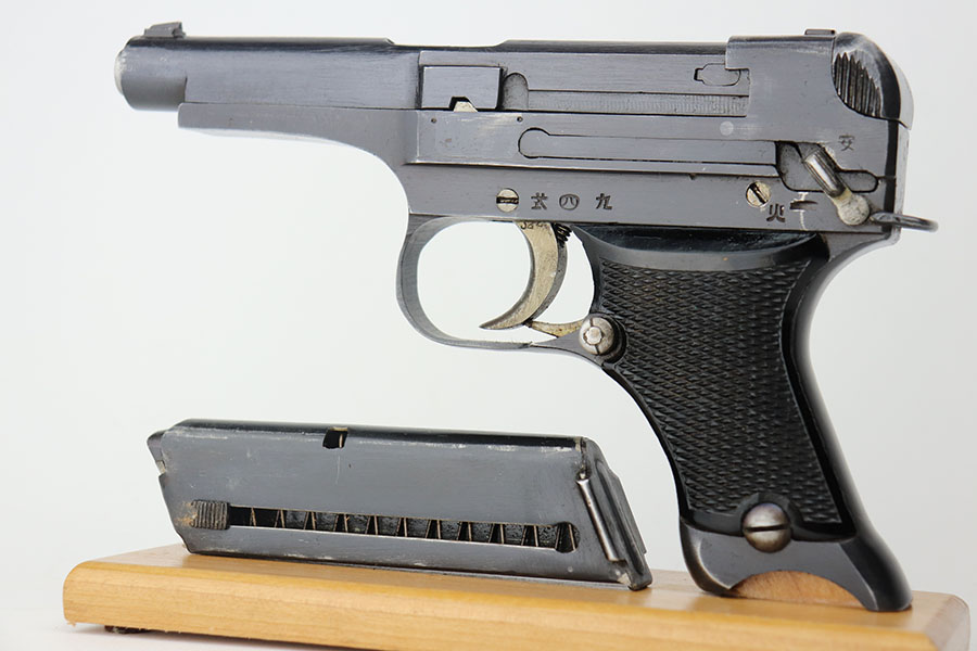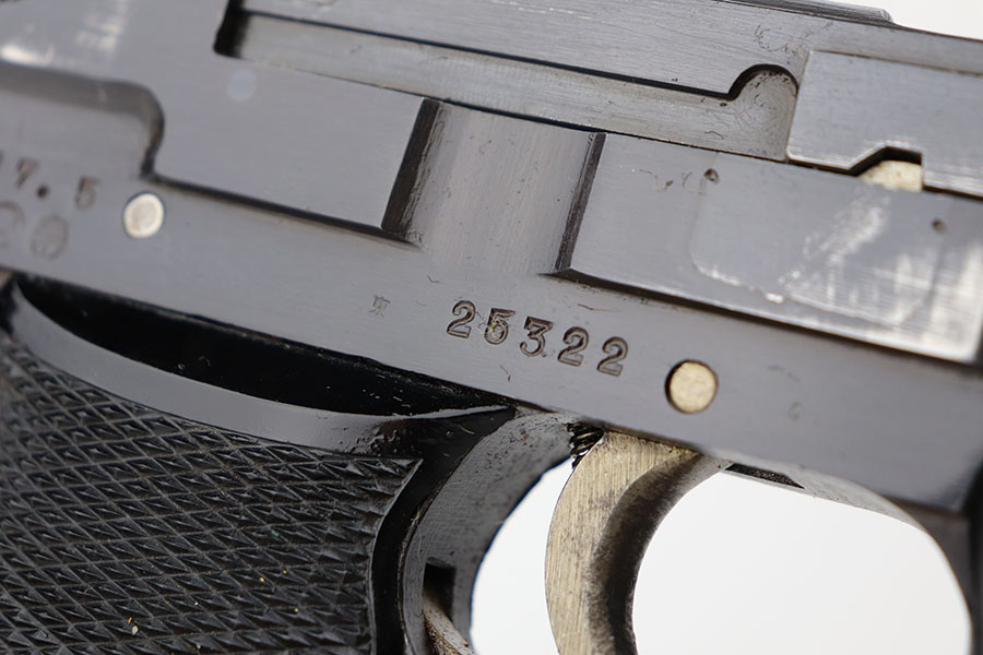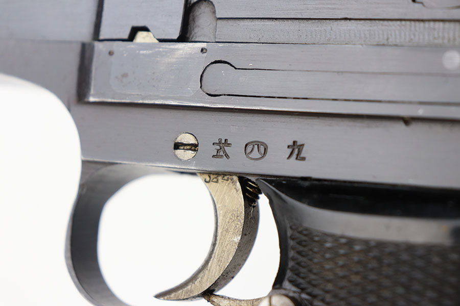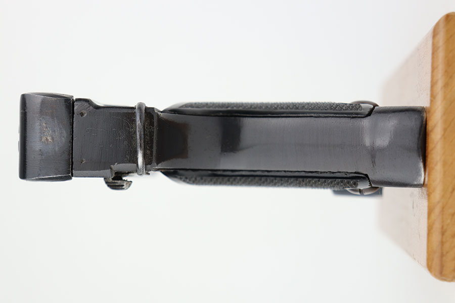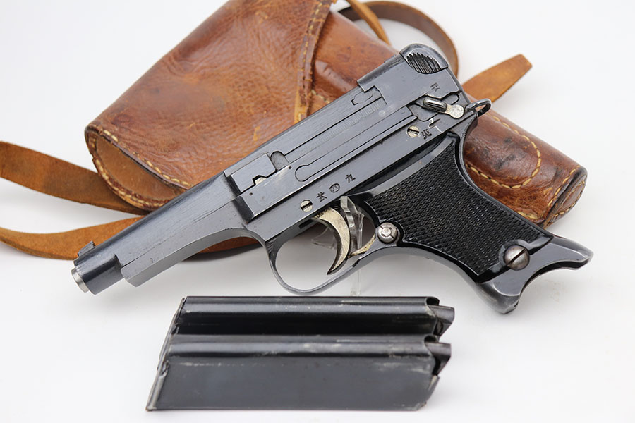 4/20/21 – This is a beautiful and complete Type 94 Nambu rig with shoulder holster, cleaning rod, vintage ammo and both original, matching magazines. The pistol was made in May of 1942 at the Kokubunji Arsenal. The original blue rates at around 96% with some finish loss on the right side of the frame and bottom of the front strap. Mint bore, hardly looks used. Excellent grips with no defects. The rig includes an original shoulder holster with strap intact, as well as the cleaning rod. Lastly, a box of original ammo is included though it has been taped/resealed. It appears full but we will leave it sealed for now. Hischier collection.