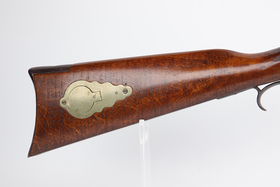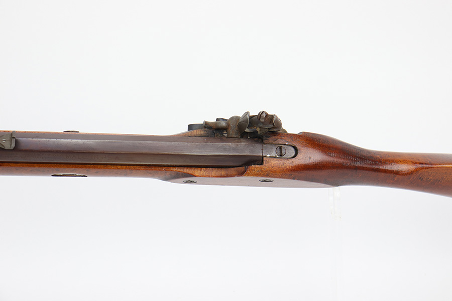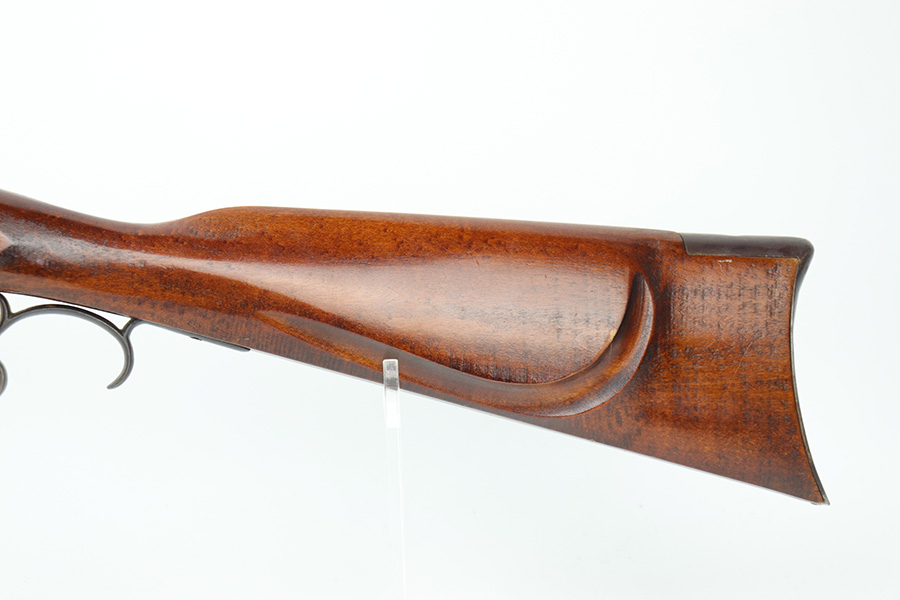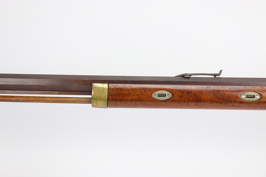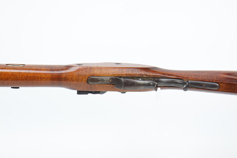 7/20/23 – This is a nice example of a Connecticut Valley Arms Flintlock Rifle, black powder only and chambered in .45 Caliber. No FFL required. Comes with ram rod. It has retained the majority of its finish with general high edge wear and some light scratchy wear here and there along the barrel. Some very light surface rust on the lock. Excellent woods stock. The bore has strong rifling with very light surface rust throughout – should clean up well with a good cleaning.