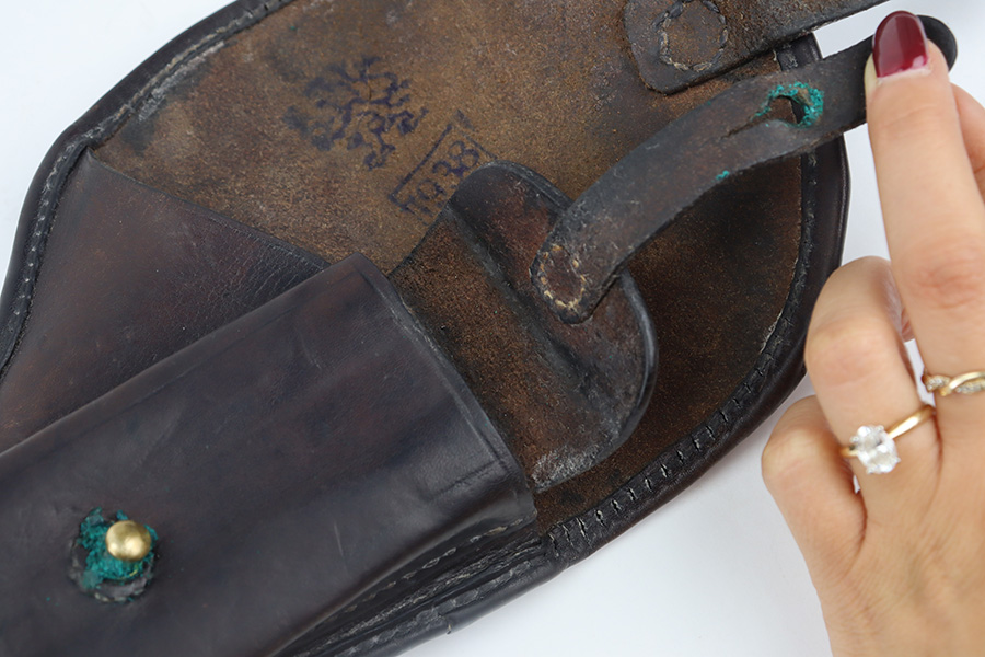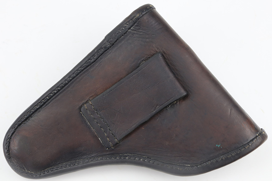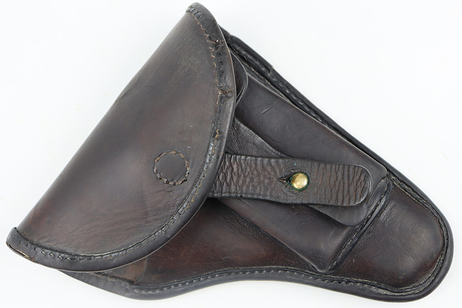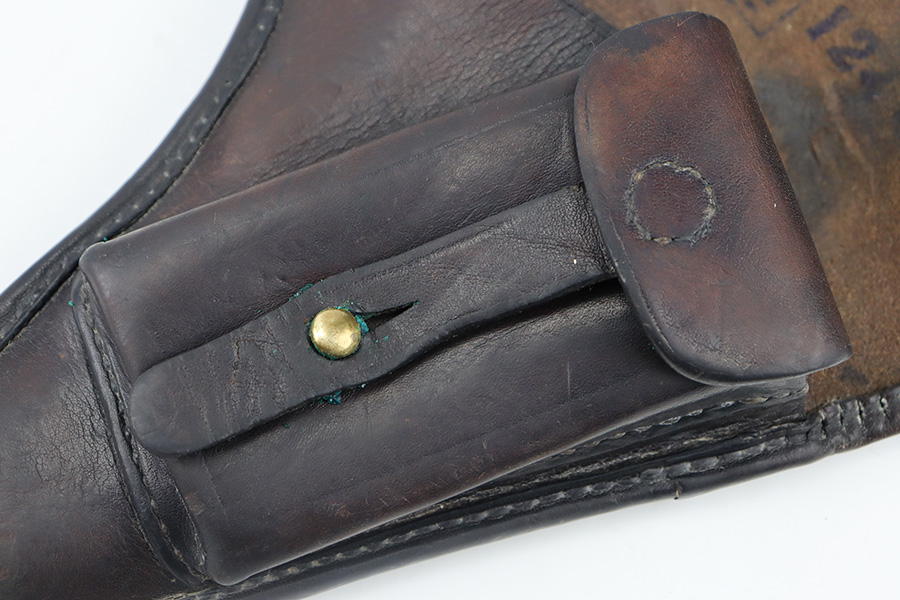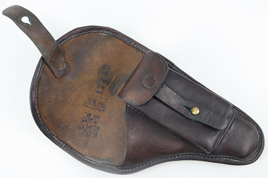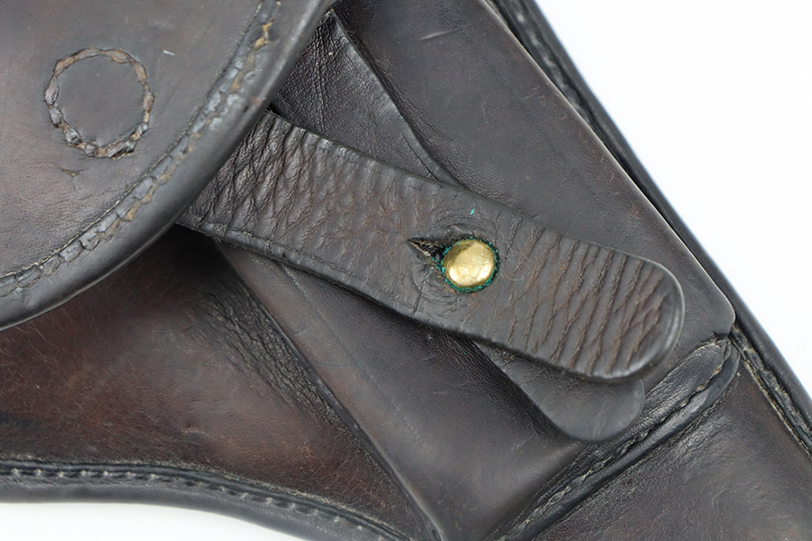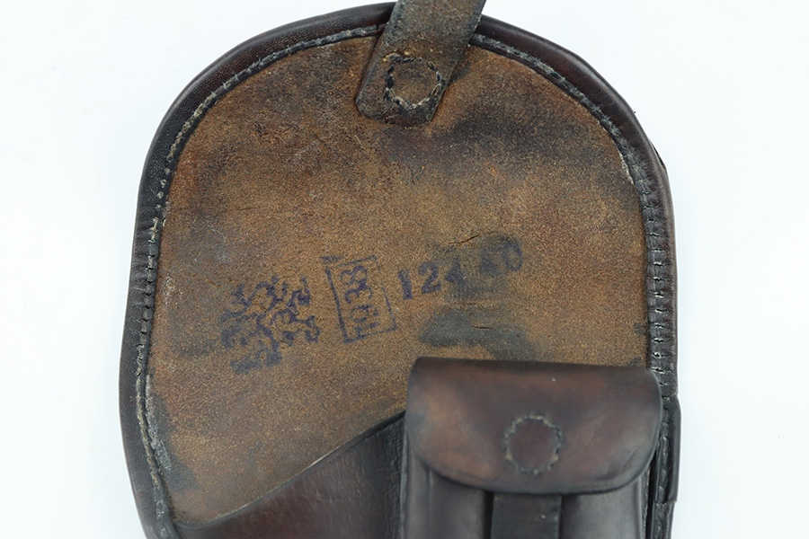 11/30/23 – This is an original, early WW2 production CZ-24 / CZ-27 holster. The holster is Czech ink stamped on the interior leather and shows a 1938 date. The leather is in great overall condition with normal wear from use and age, but no excessive damage. The stitching is all original, but there’s some missing stitches around the folded edge around the brim of the holster. Shown in photos. Overall a very good example.