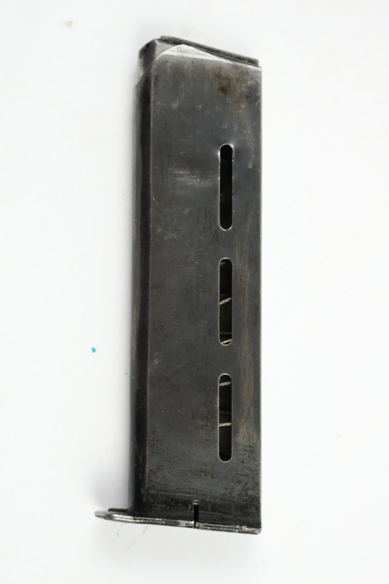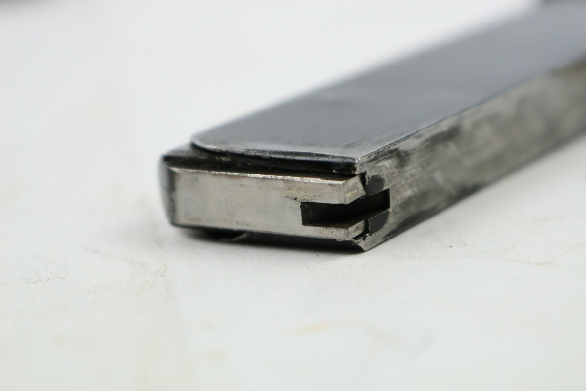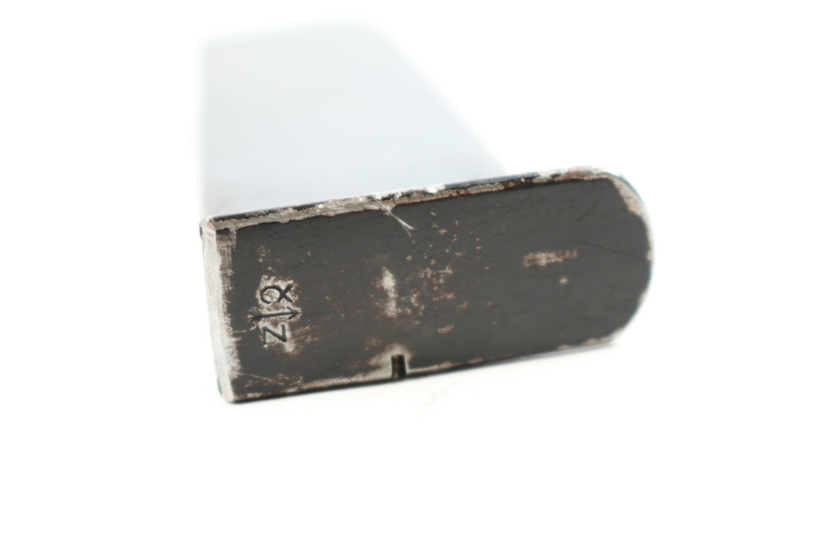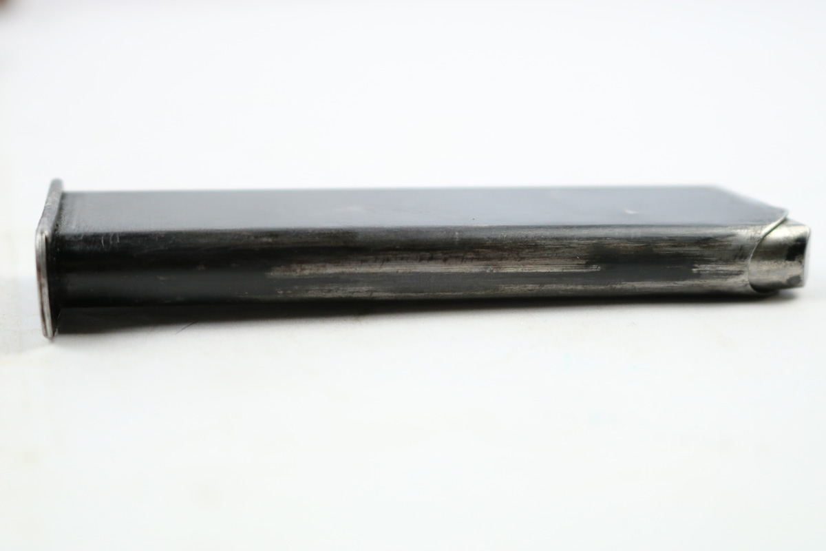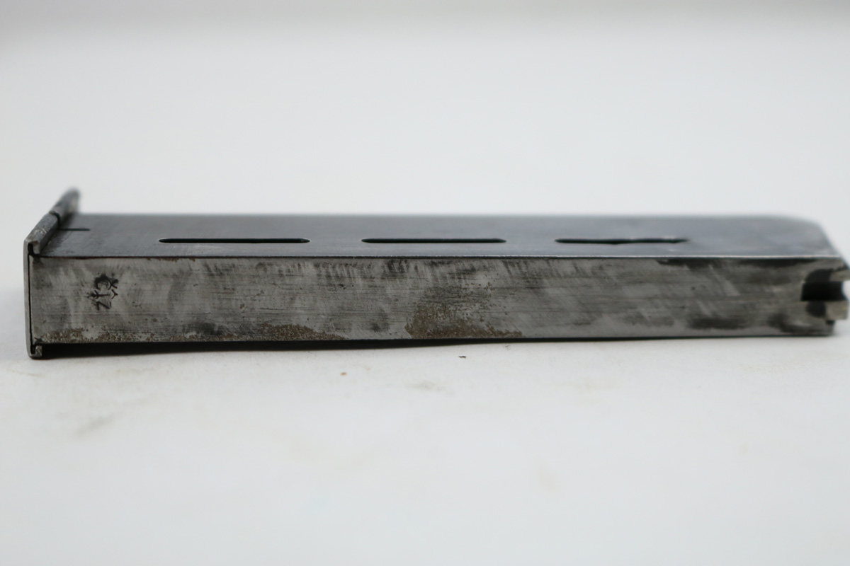 8/7/18 – This is an original CZ model 24 with an original shoulder holster. The pistol was made in 1937 and is in all original configuration except for the grips, which appear to have been custom made with a swastika logo on either side (they look WW2 era appropriate). The grips fit the gun perfectly and the wood has an aged look, which leads me to believe these were place on the gun in the early ’40s or late ’30s a few years after production. The gun has about 86-88% original finish in tact with thinning / bluing loss on both sides of the slide. The front strap similarly has normal bluing loss. No rust or pitting and a fairly clean bore. Nice lands and grooves. Comes with an unmarked but period correct shoulder holster. The holster has all original stitching and has a brass closure knob (seems fairly scarce). Guaranteed original.
