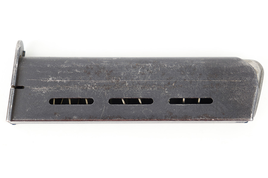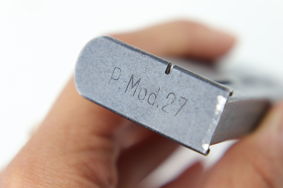 6/20/23 – This is an original WW2 production CZ model 27 magazine. The base of the magazine is blued with “P.Mod 27” stamped. No other markings. The tube is parkerized and has some light finish loss but no rust or pitting. Fully functional spring.