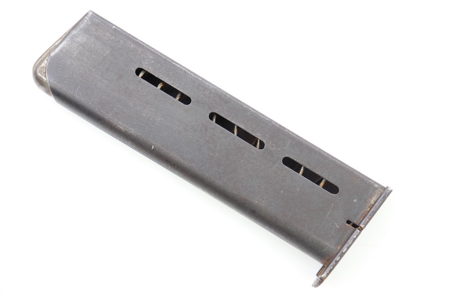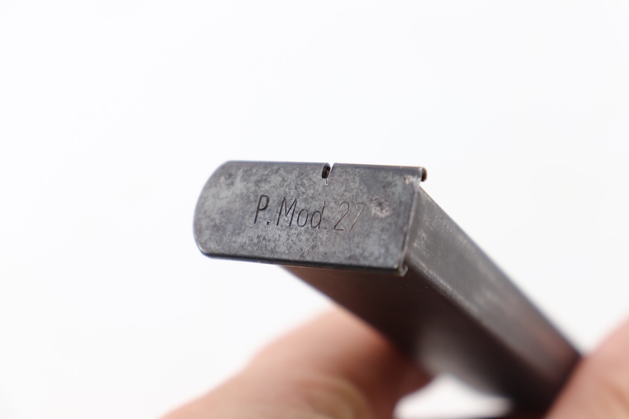 1/29/24 – This is a great and original condition CZ-27 Magazine. The outer body has a light patina and finish loss on the right side. Spring is strong and functional. Base plate is marked P.Mod.27.