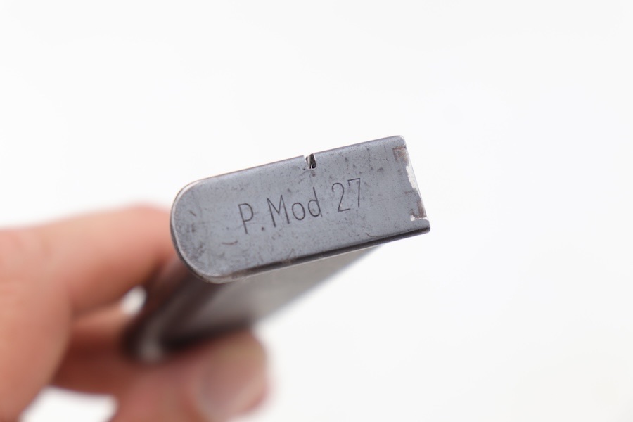 5/14/24 – This is an excellent and original condition Cz-27 Magazine. The body retains most of its original finish with light surface wear on the spine and the belly. Spring is strong and functional. Footplate is marked P.Mod 27.