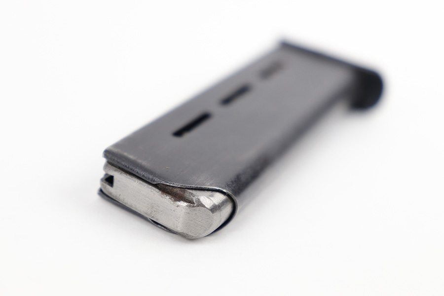 5/22/23 – This is an original WW2 production CZ-27 magazine. The magazine has a phosphate tube and blued base. The base is stamped “P.Mod 27”. There are no other markings. Minimal surface wear and no rust or pitting. Fully functional spring.