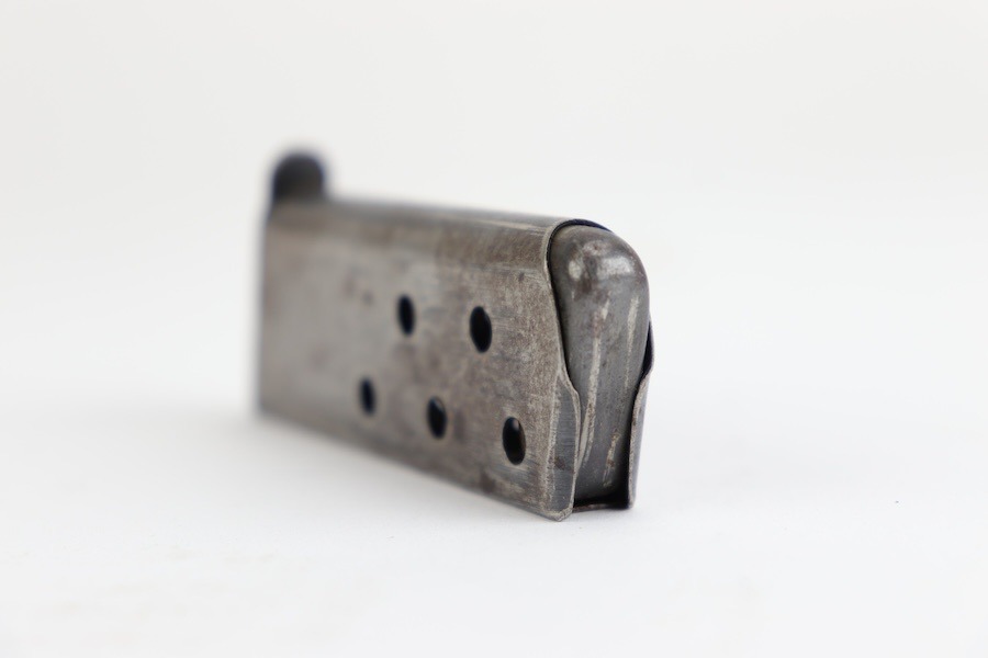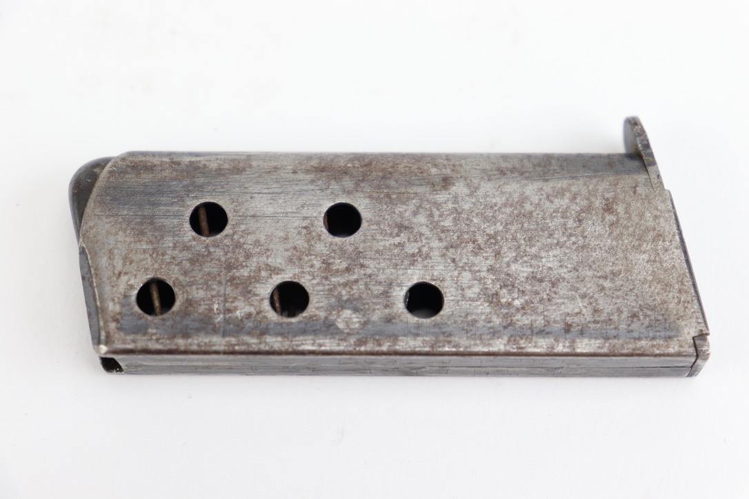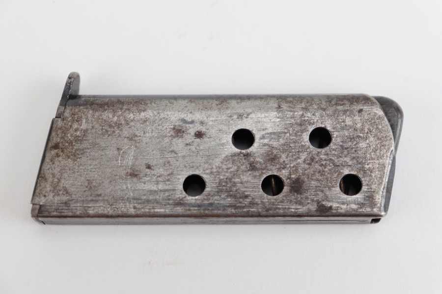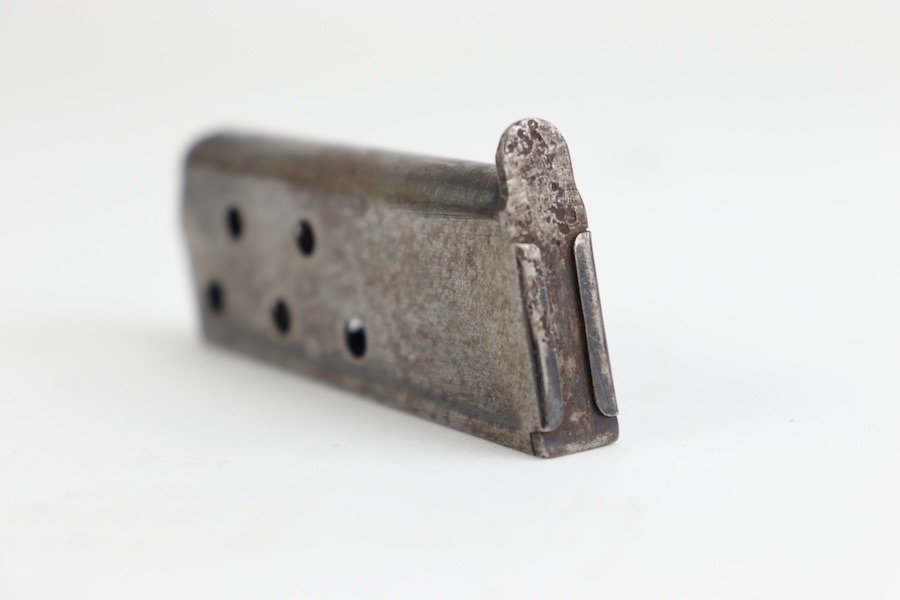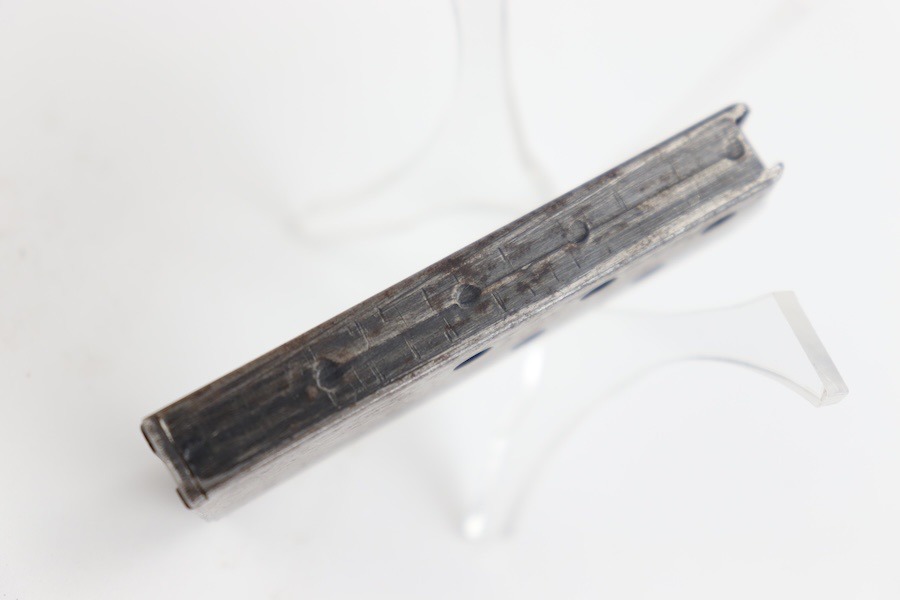 10/1/24 – For sale is an original production CZ Duo magazine. This magazine retains almost none of its original blued finish but has no deep pitting or heavy corrosion. Spring is strong and functional, and feed lips look to be in good order. Good overall condition.