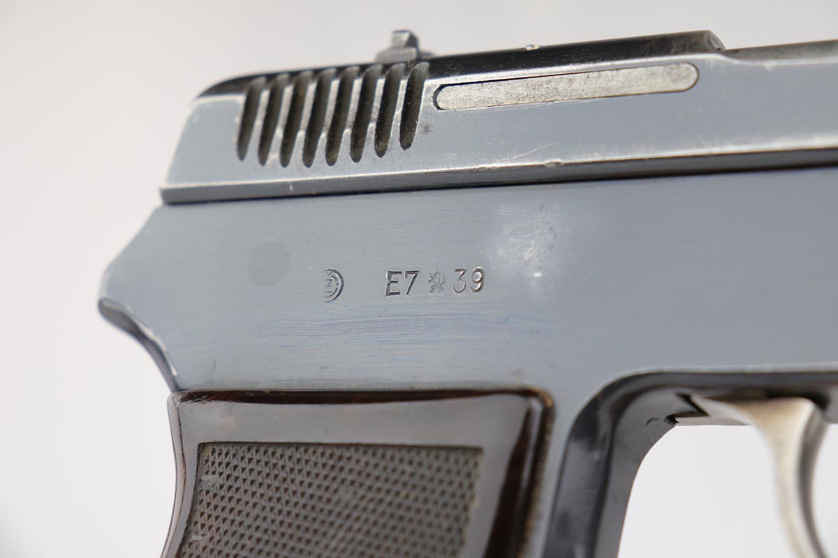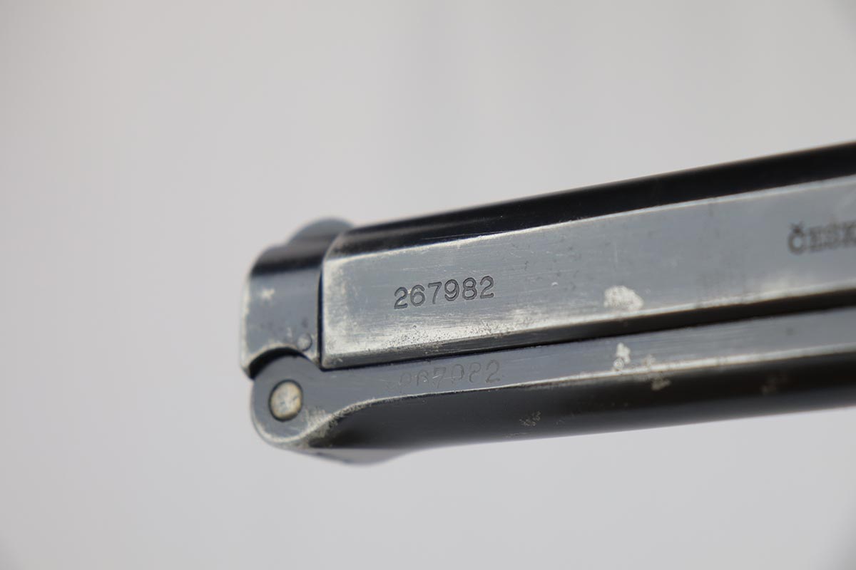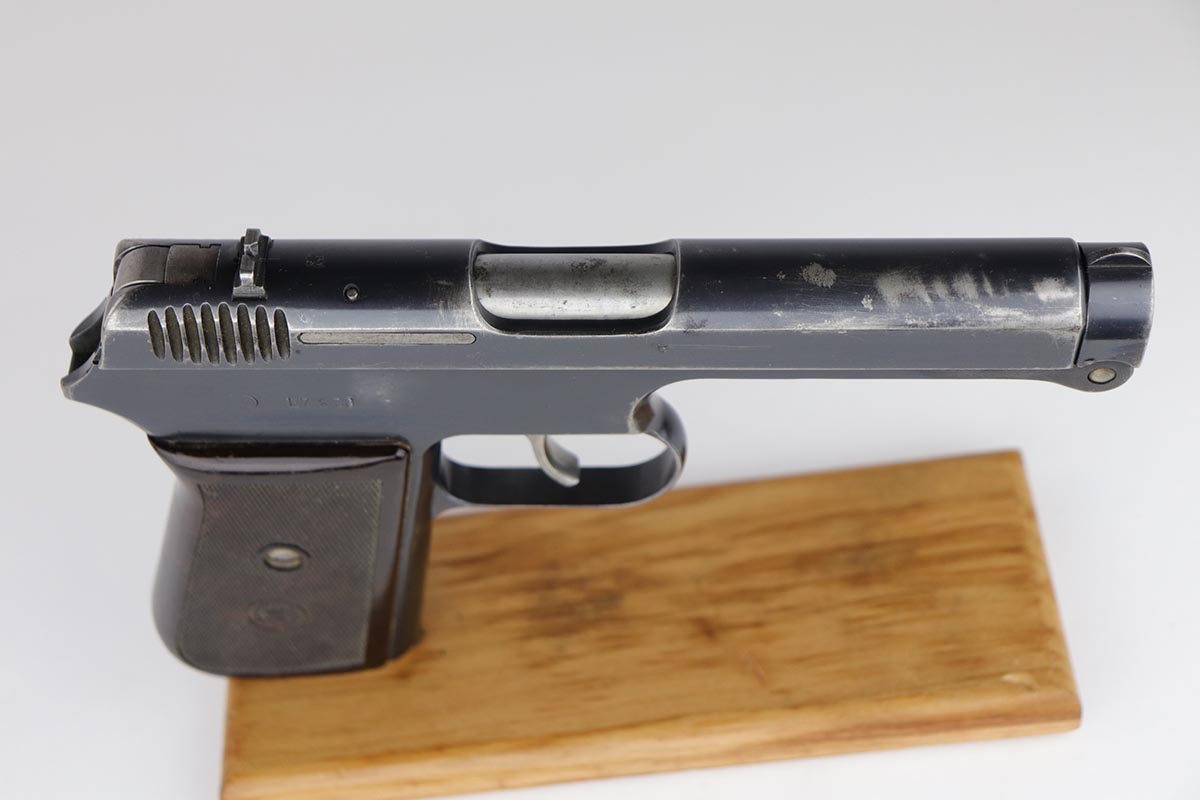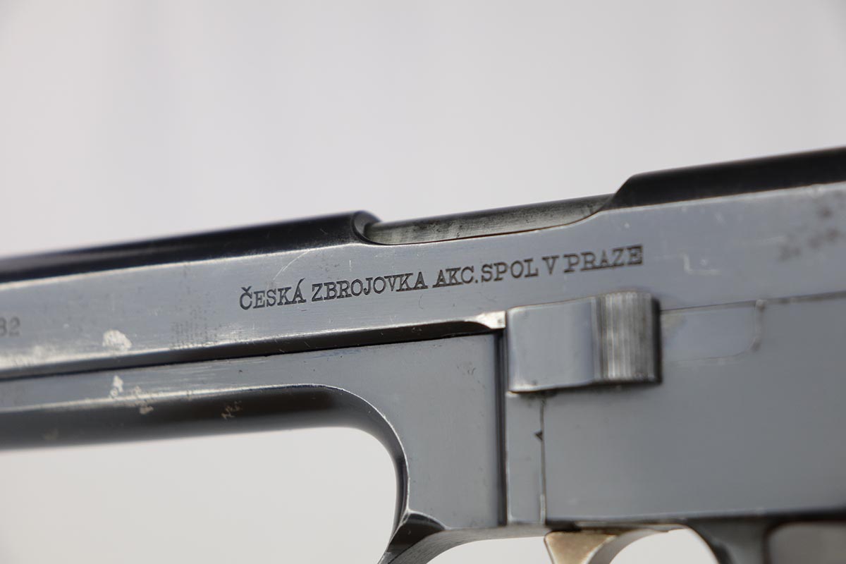 6/13/19 – This is a nice example of a CZ vz. 38 pistol that was manufactured in 1939. The original blue rates at about 90% with most of the finish loss along the top and left sides of the slide. Terrific bore and excellent grips. These pistols were produced at the request of the Czechoslovakian Air Force and Cavalry, but the German occupation occurred before the pistols were issued. They were then diverted to the German military and given the new designation of P.39(t). About 41,000 such pistols were produced with high-polish blue.