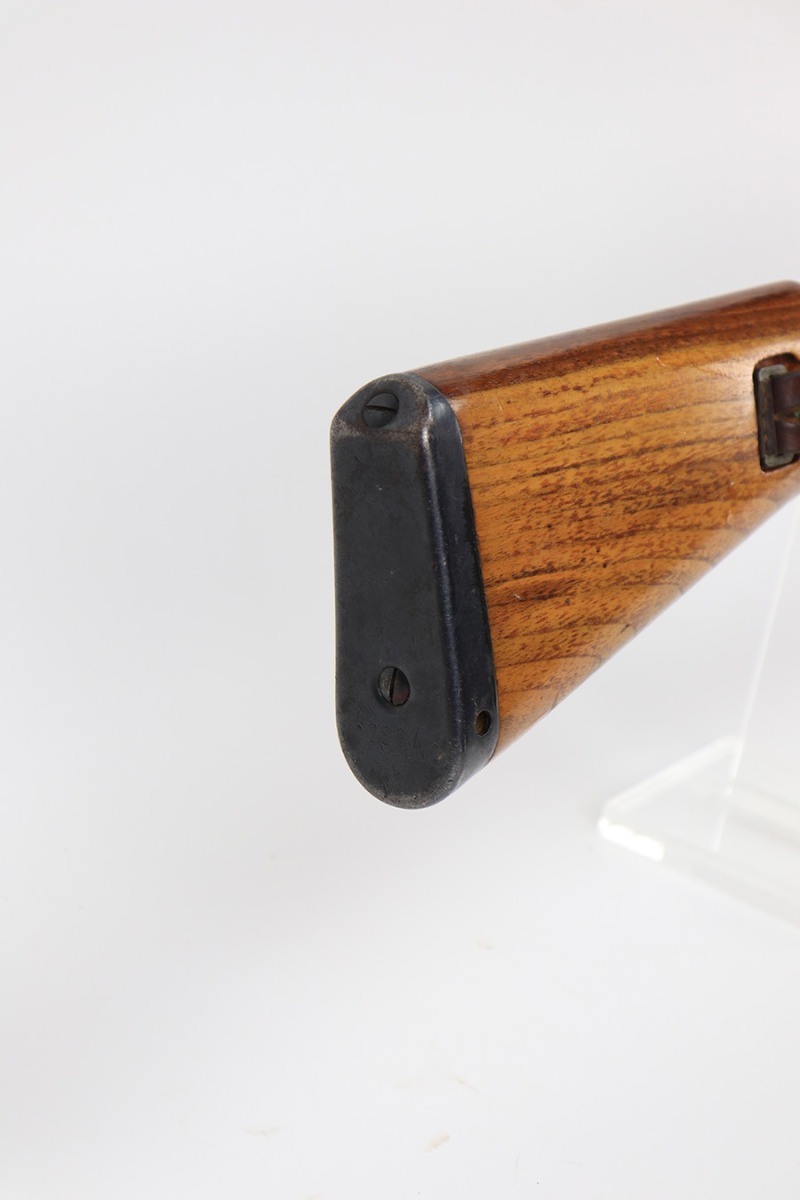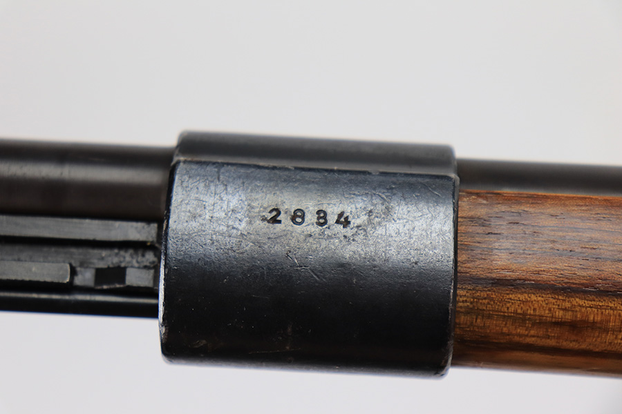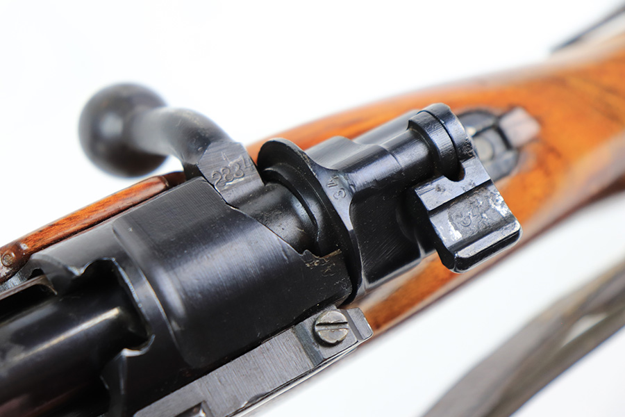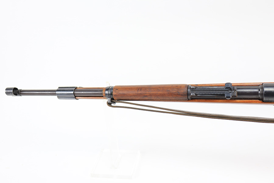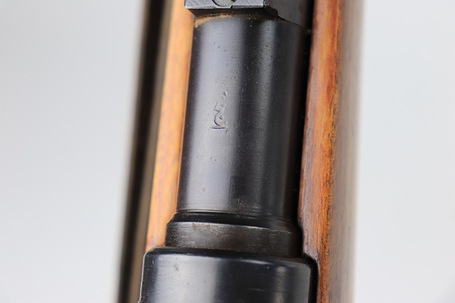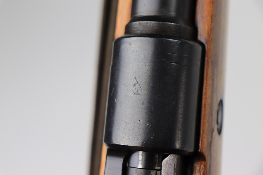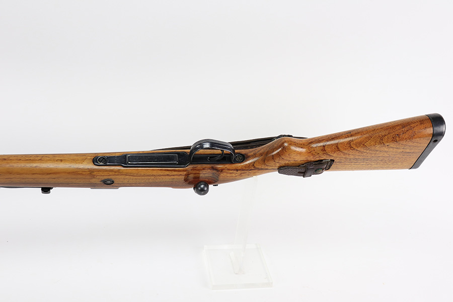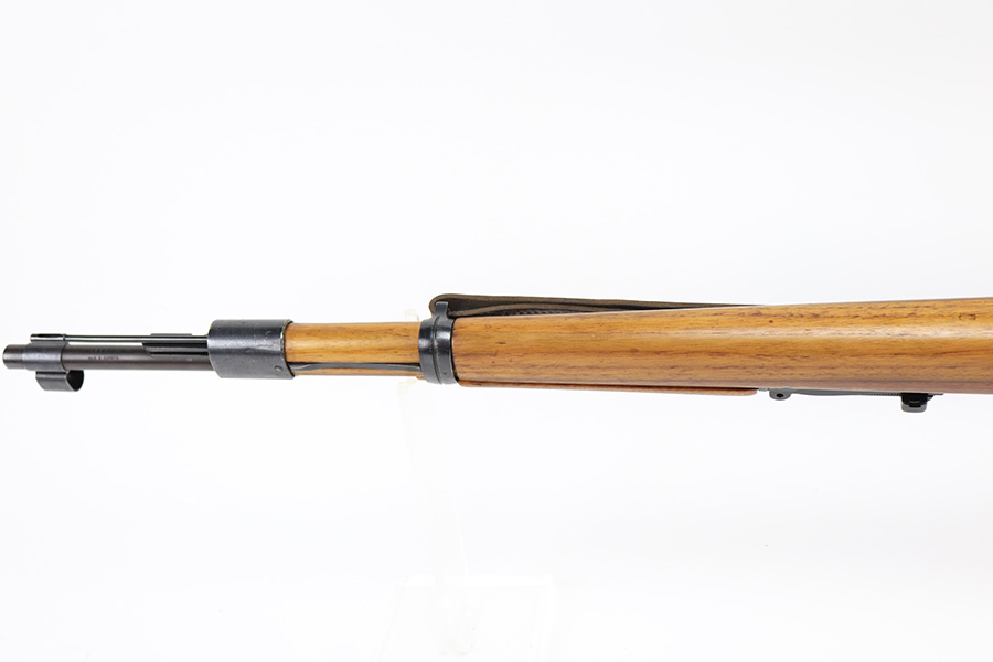 3/30/22 – This is an excellent example of a Czech K98 rifle put together at the BRNO factory after WW2 using leftover Nazi parts. All numbered parts on the gun are matching except for one part on the bolt assembly. The wood stock looks like it has a matching serial number on the underside of the butt stock, but the numbering is extremely faint. Import mark on the underside of the barrel. The gun has retained virtually all of its bluing, but there are some very light scratches on the front barrel band and floor plate. A few small dots of light surface rust around the rear sight. The stock was sanded and has a a thin layer of lacquer. Comes with a cleaning rod and leather. Very nice bore with good rifling and very minor pin-pricking.