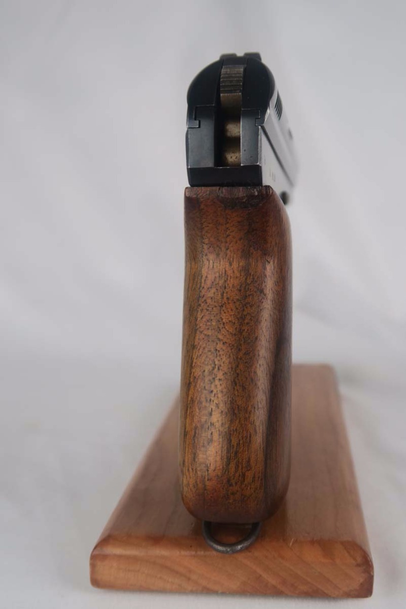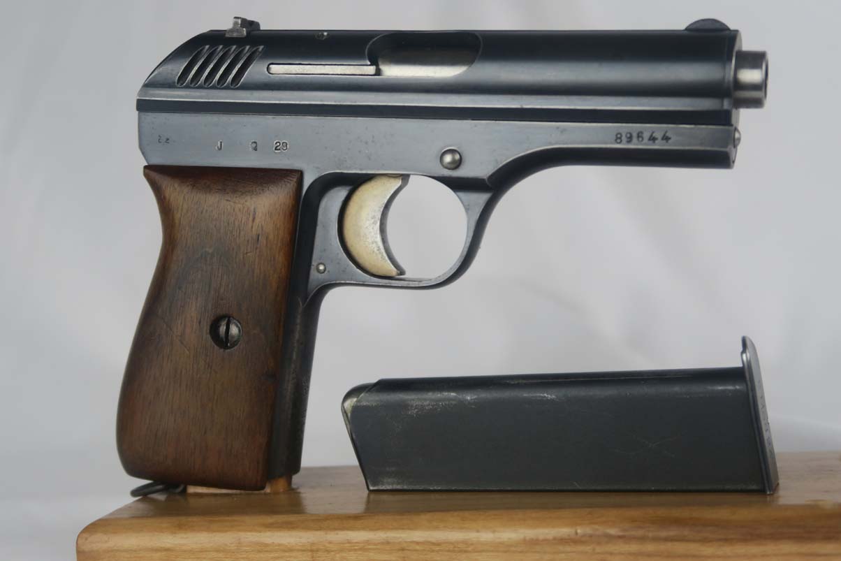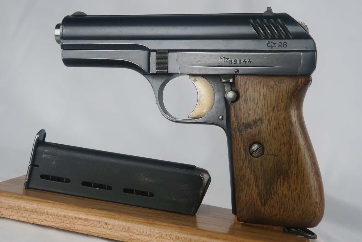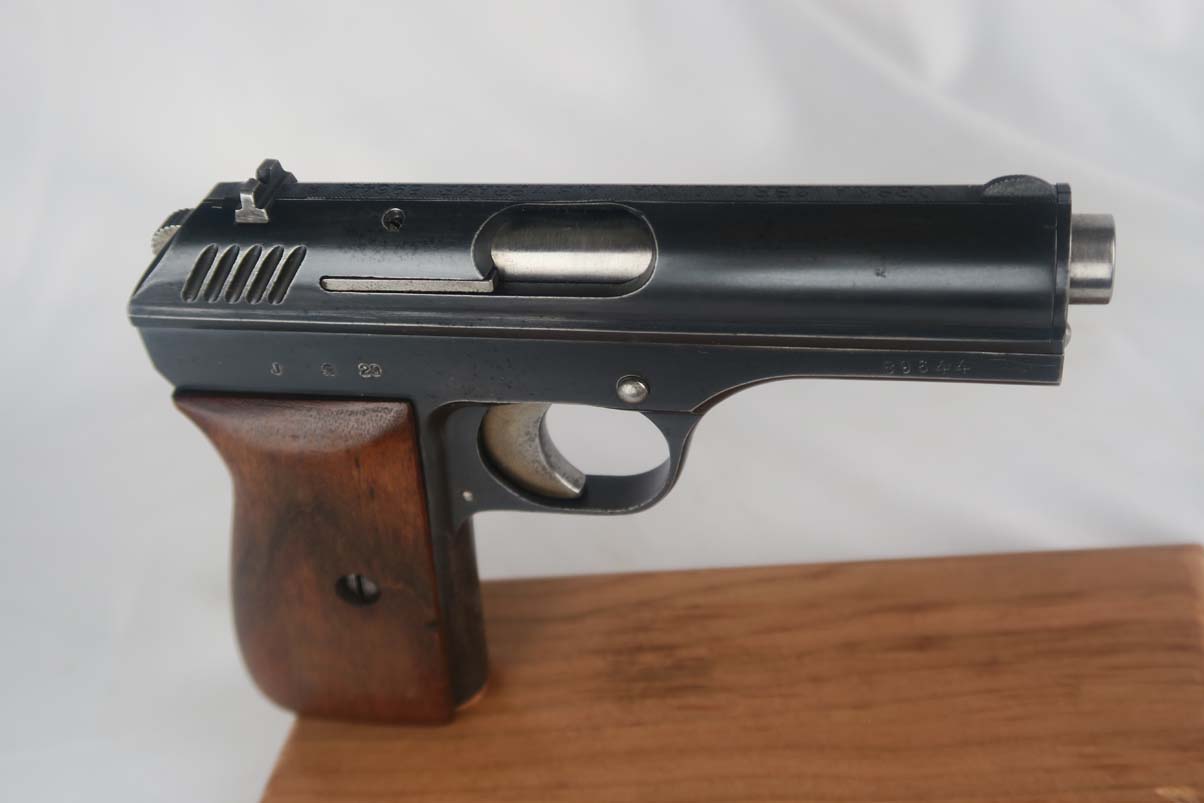 9/12/17 – This is CZ vz 24 in all original condition with military unit marking on the front strap.  The original finish rates at about 92-93%, with a beautiful slide but some notable finish loss on the front strap.  The front strap marking reads “98 NH9”.  98 would indicate 98th regiment and 9 would indicate it was the 9th gun issued in the batch.  Slide is dated to 1928.  Grip has no major cracks or chips.  ‘P. Mod 24’ marked magazine in good condtiion.  Mint bore.