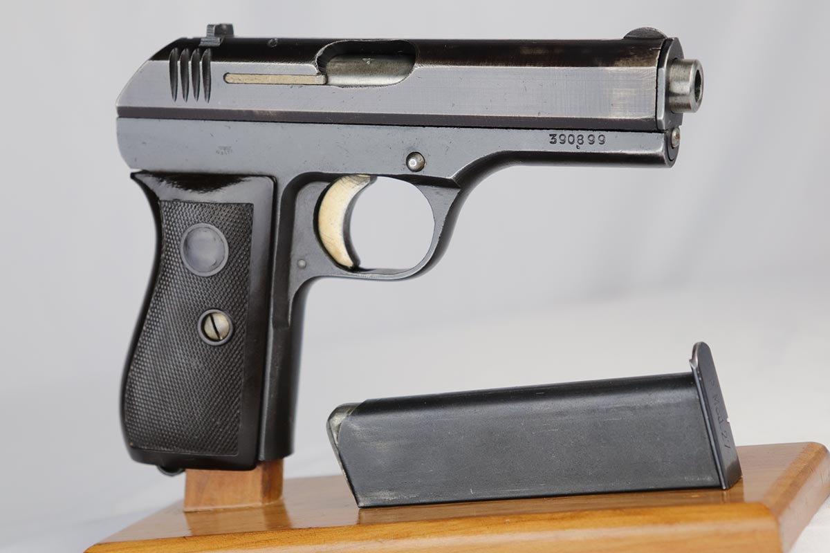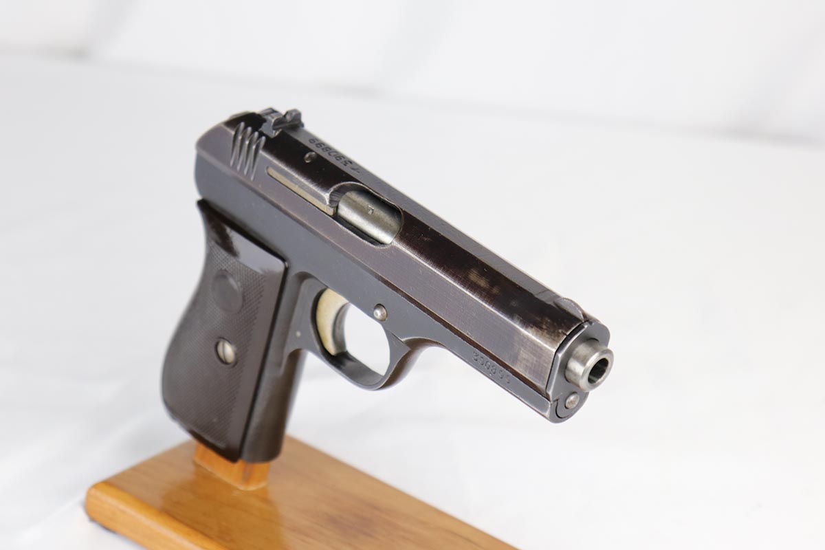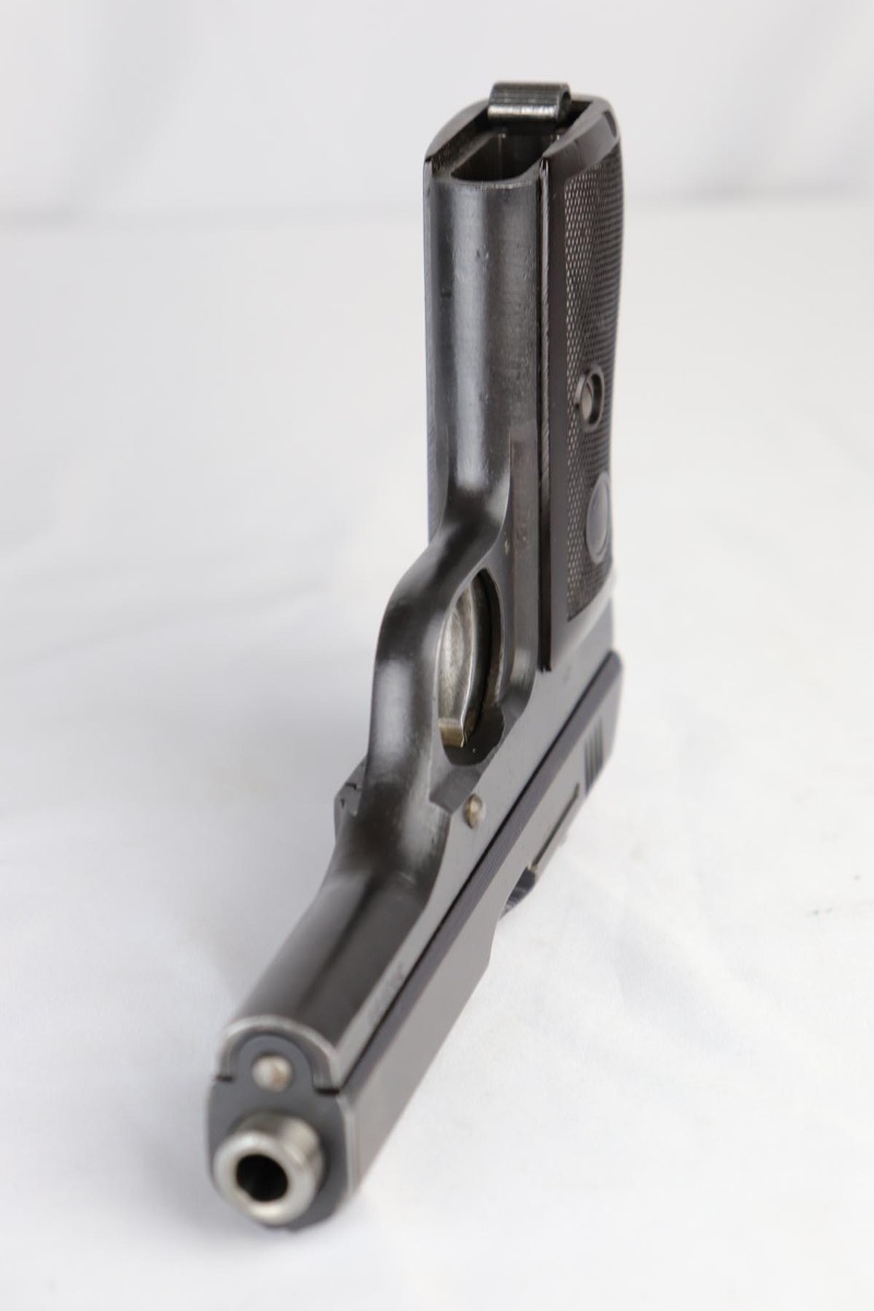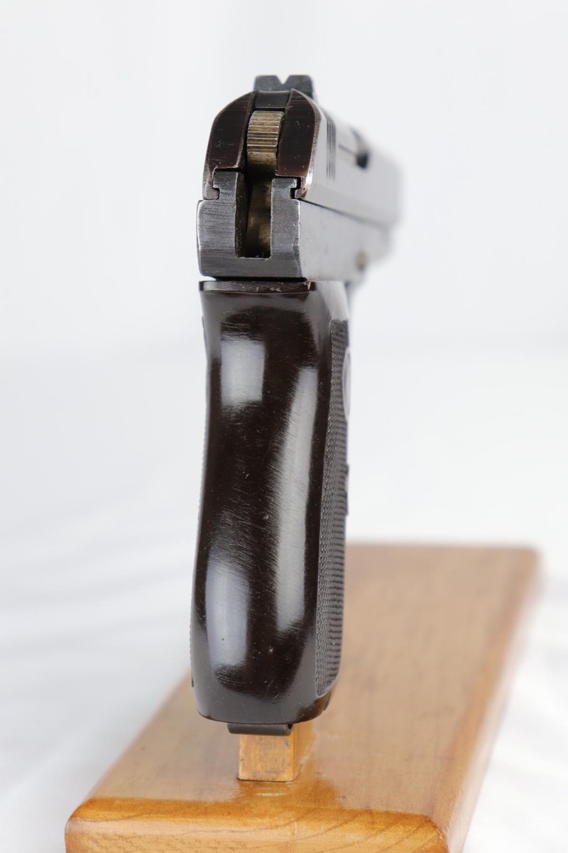 5/14/18 – This is an original and fairly late-war CZ 27 that was issued to the German Army, and has WaA76 proof on frame.  This pistol has an excellent front strap, and there is some thinning on the top edge of the slide, and an area of finish loss on the right side.  The grip is in very good condition but does have a minor chip on the right side.  Excellent bore.