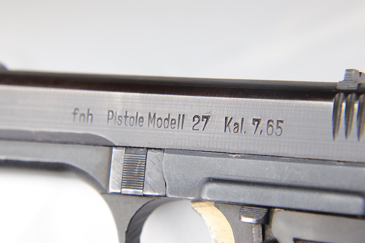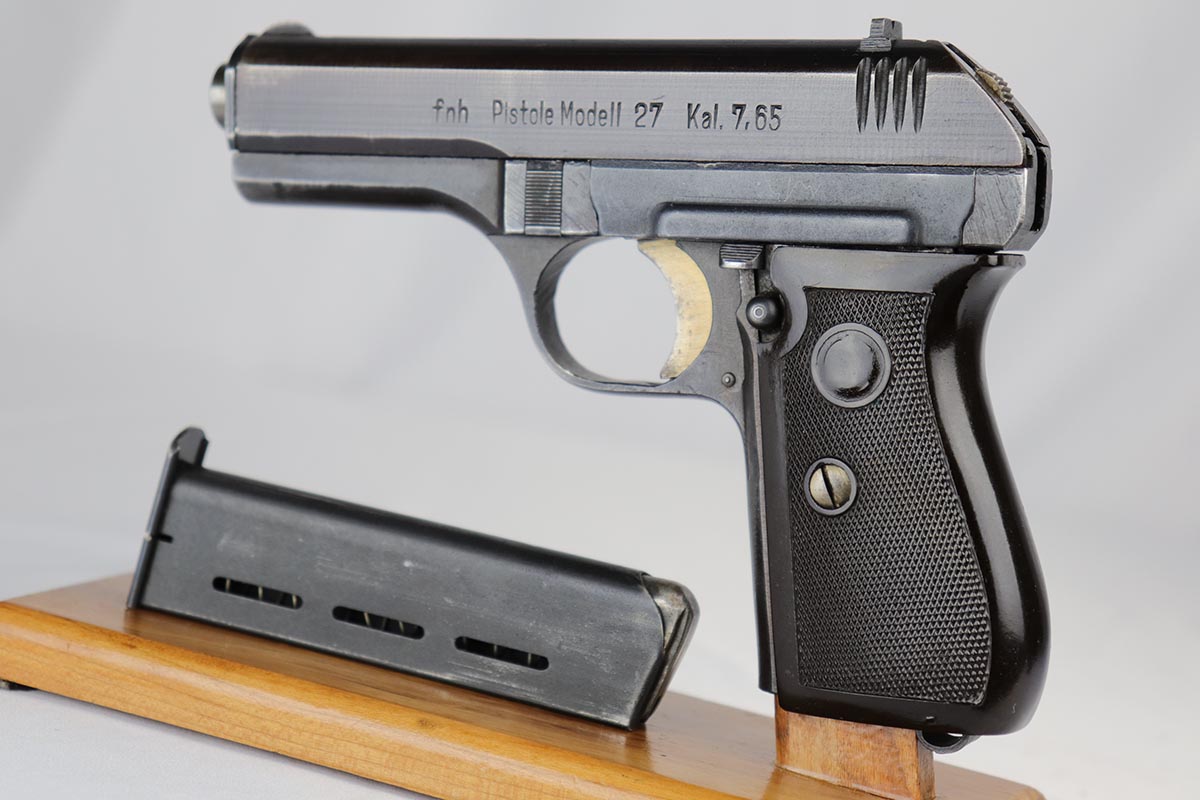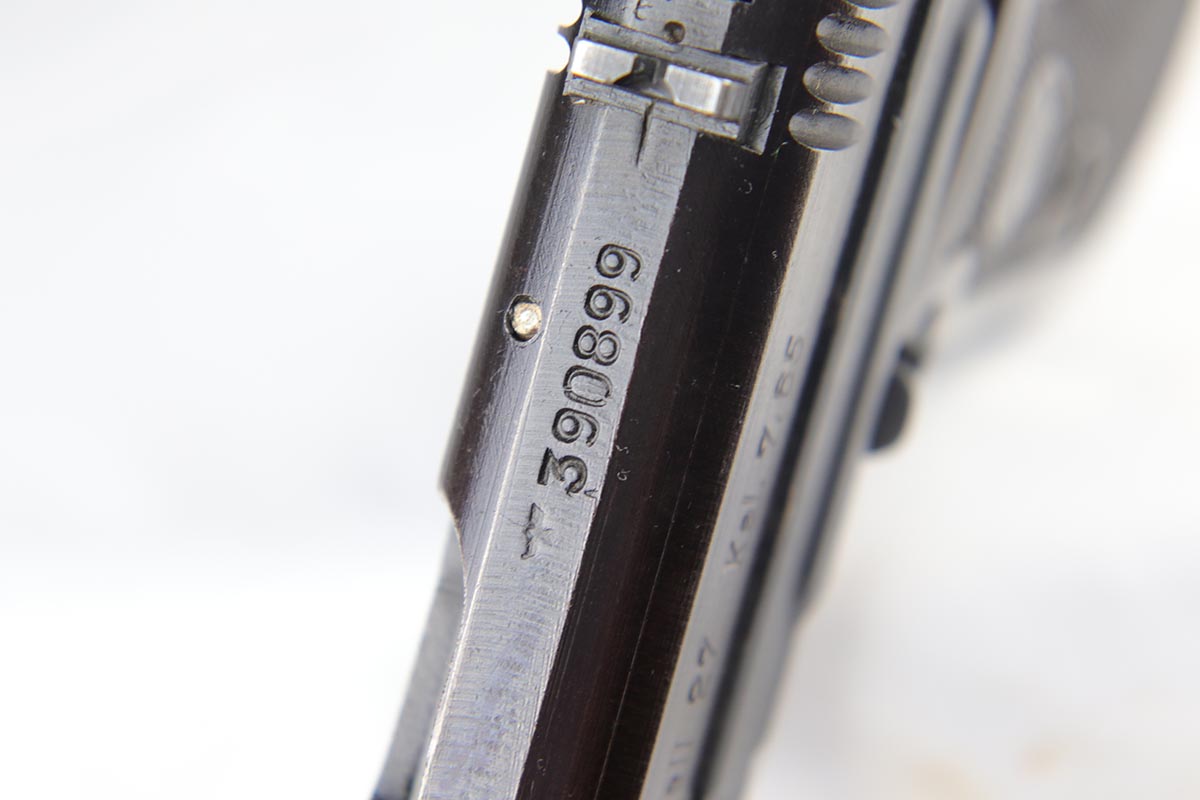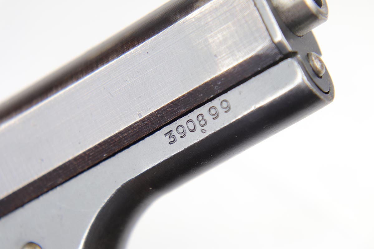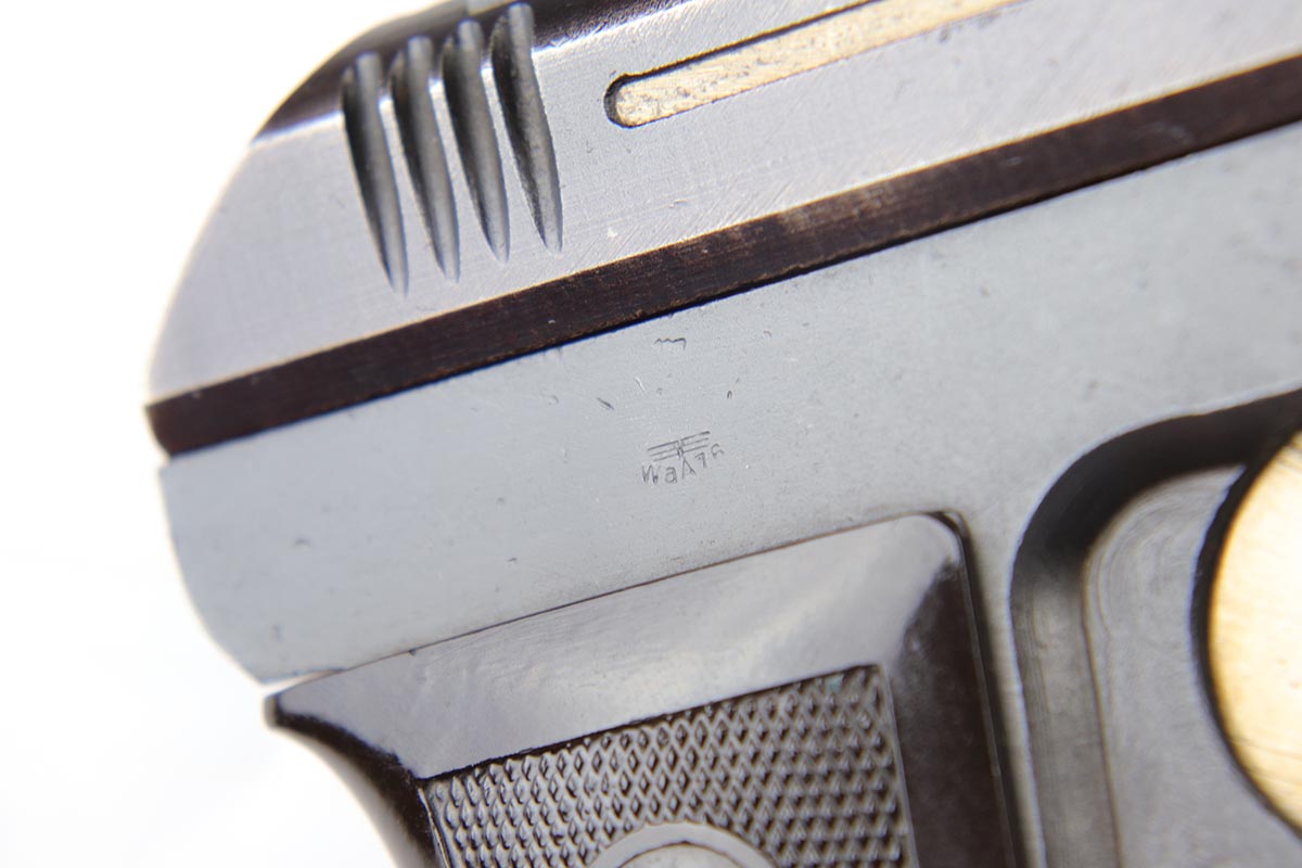 5/14/18 – This is an original and fairly late-war CZ 27 that was issued to the German Army, and has WaA76 proof on frame.  This pistol has an excellent front strap, and there is some thinning on the top edge of the slide, and an area of finish loss on the right side.  The grip is in very good condition but does have a minor chip on the right side.  Excellent bore.