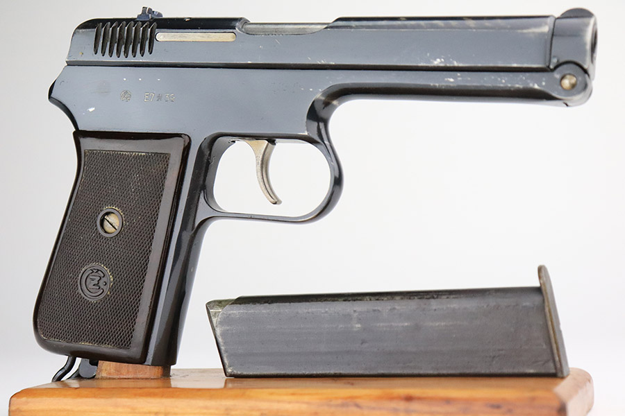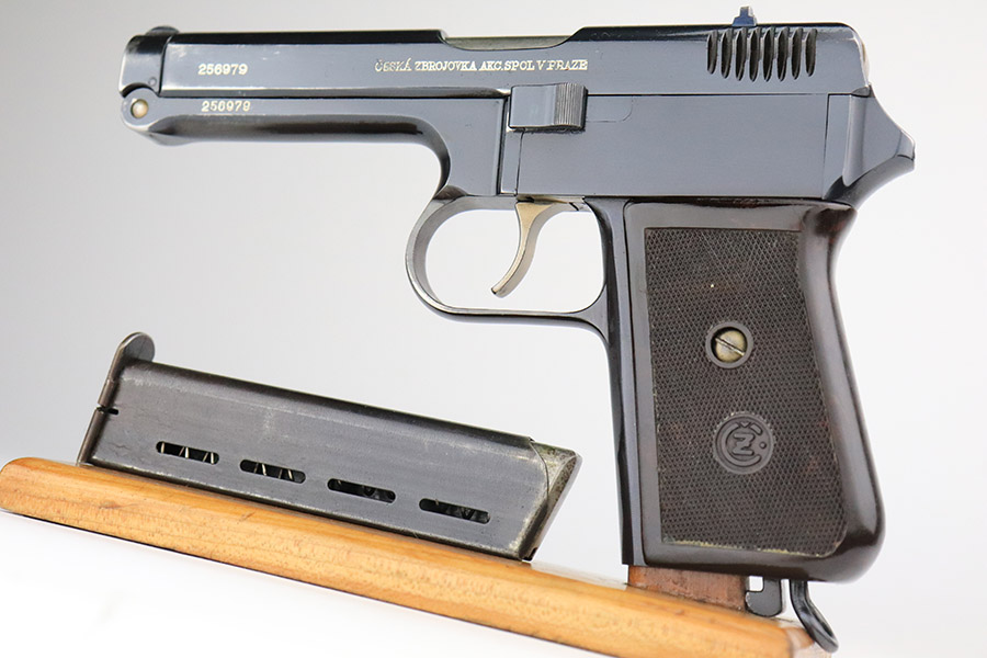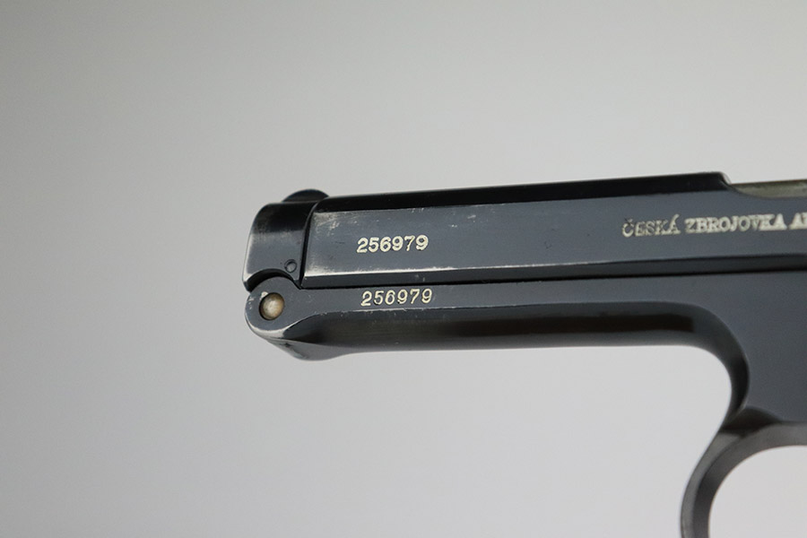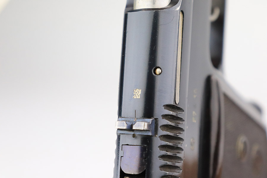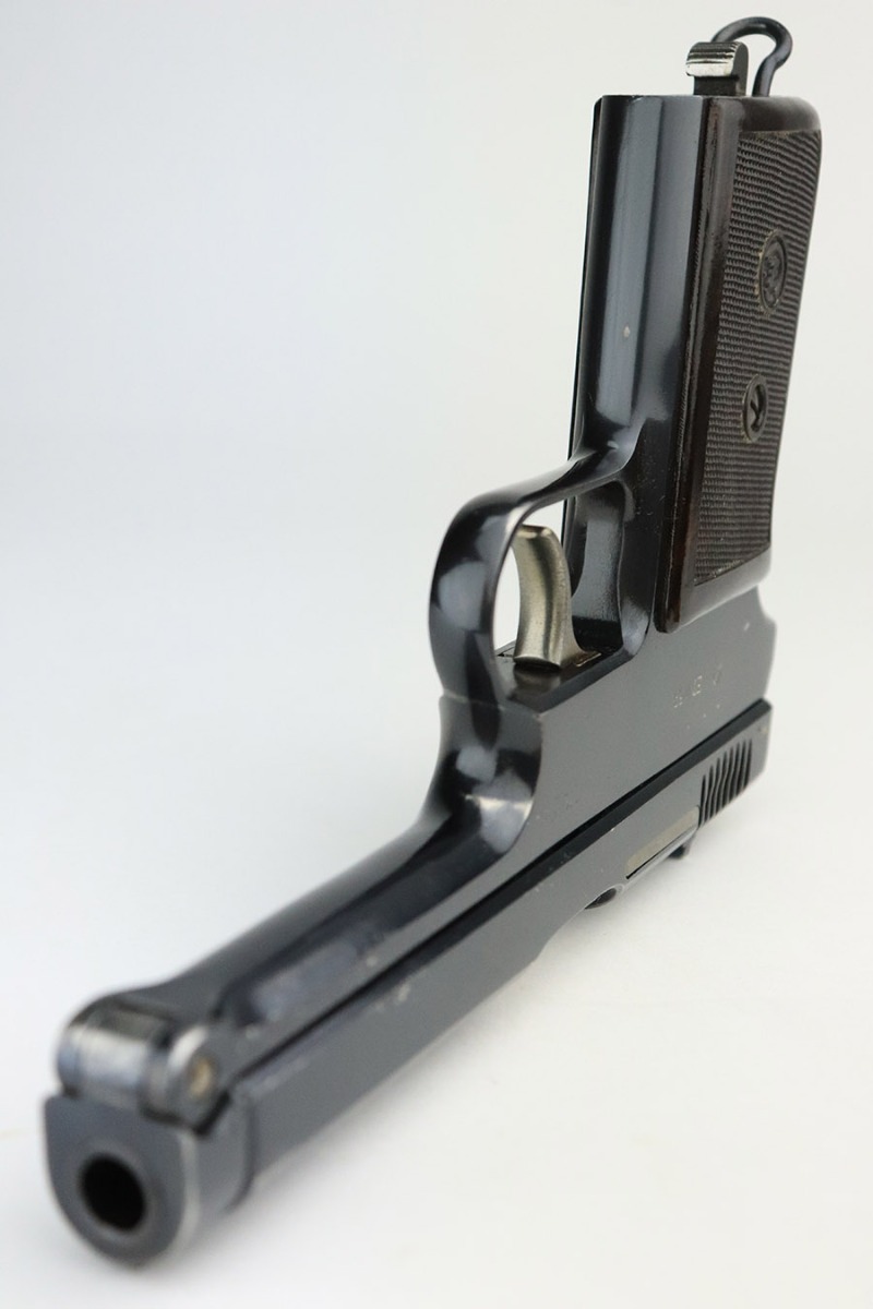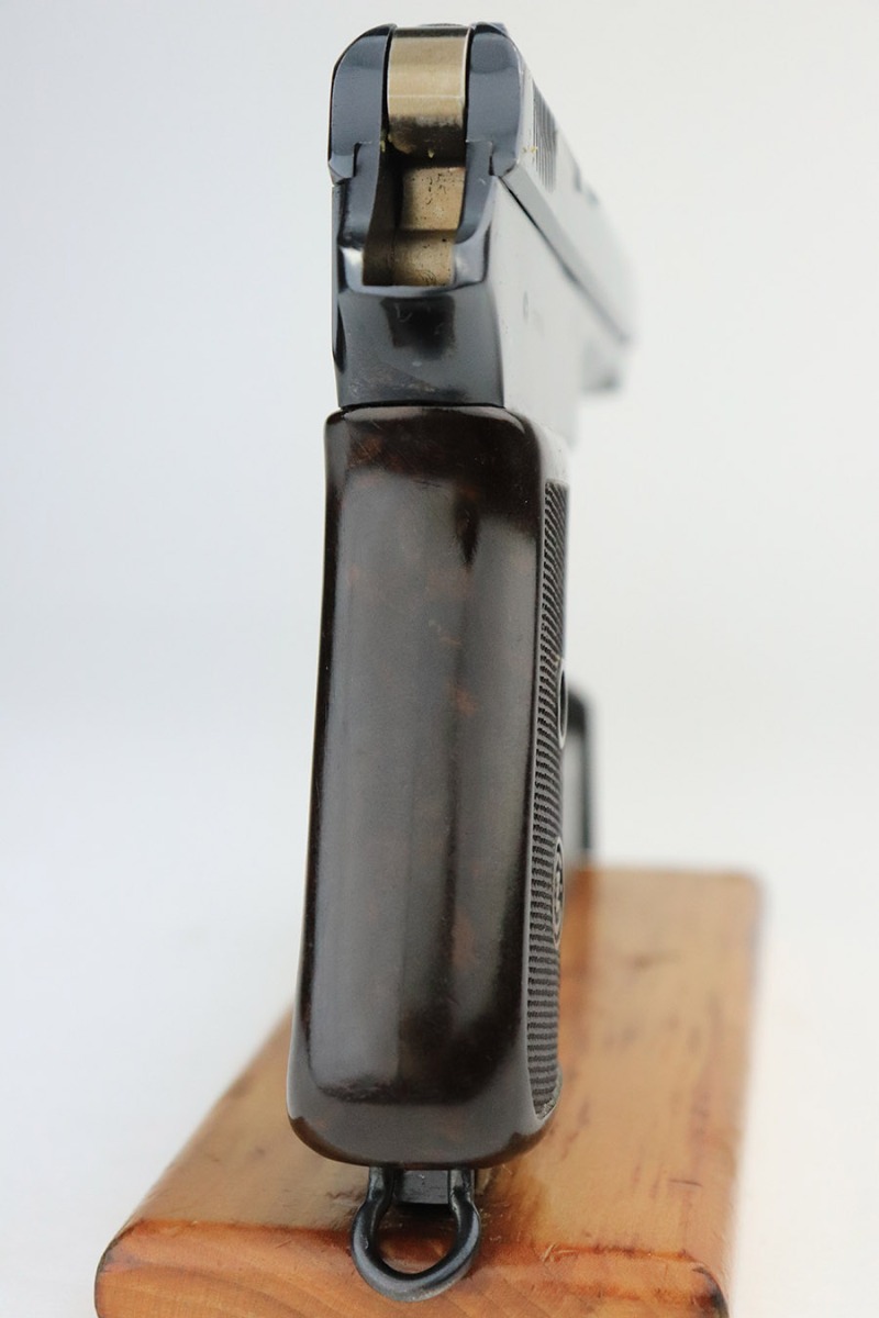10/31/22 – This is a WW2 Czech CZ Model 38. This is a rare gun, made in 1939 before the Nazi’s took over. It is all matching and has the proper Czech lion proofs. It has retained about 95% of its original high polish finish. There is very minor muzzle wear and light spotty wear along the right side of the slide and frame. Comes with a very nice period-correct bakelite grip and one proper magazine. Mint bore.