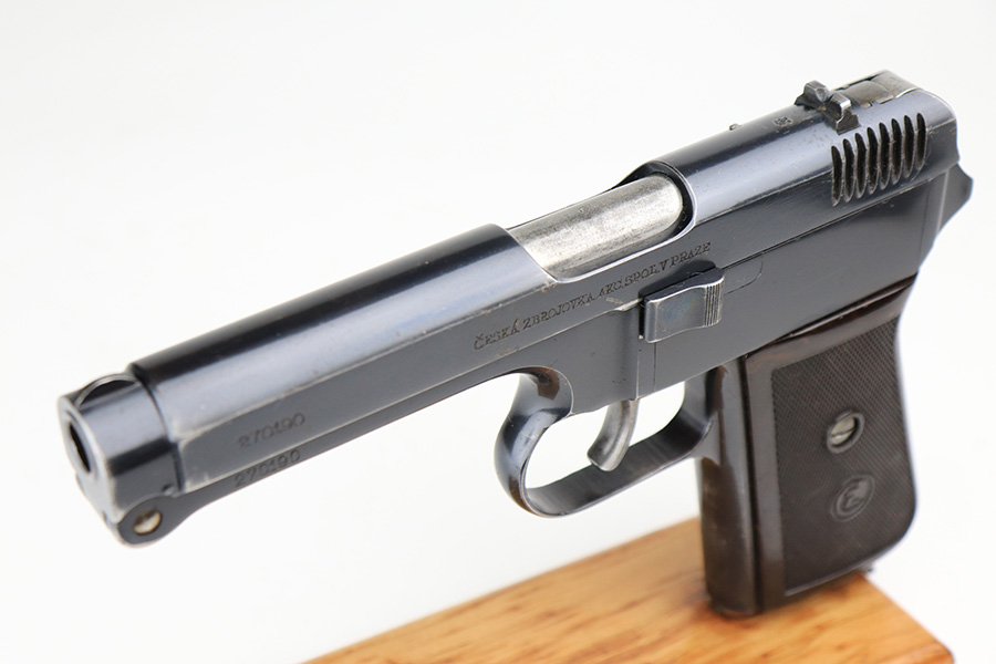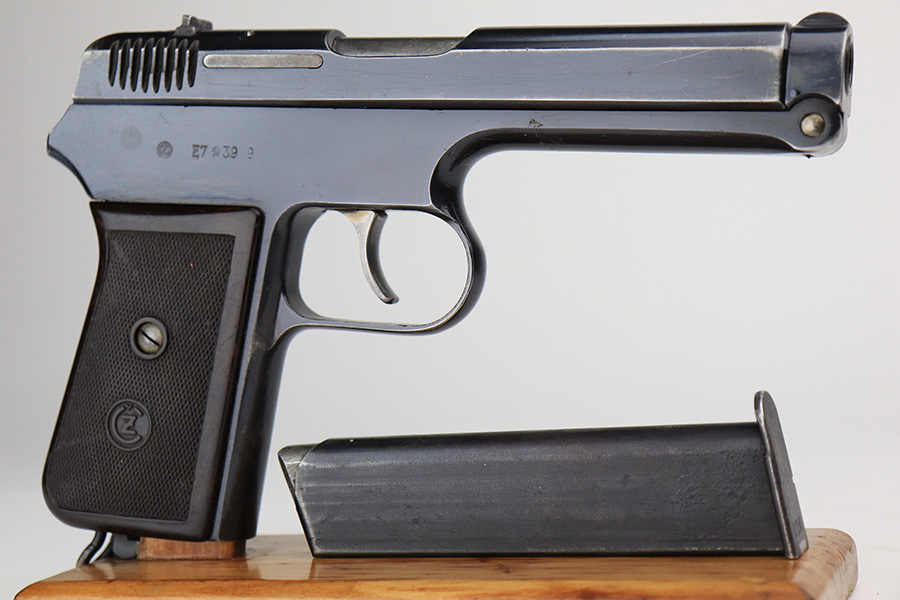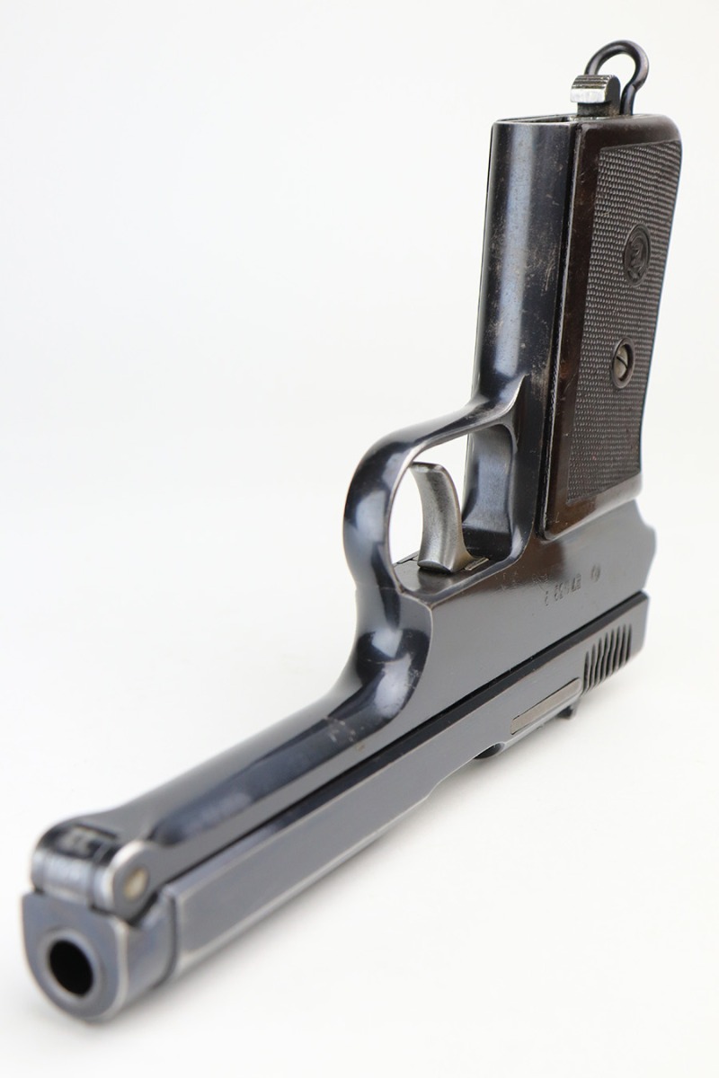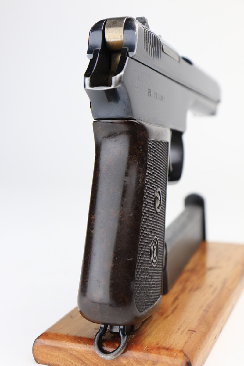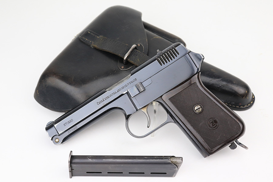 5/2/22 – This is an original and complete CZ vz. 38 pistol rig from 1939 with one of the matching numbered magazines. The pistol has about 93-94% of the original blue, with most of the finish loss on the front strap, and a few scratches on the left side of the pistol. The pistol was never used by the Czechoslovak military, as the vz. 38 orders were not yet delivered when Germany occupied Czechoslovakia in 1938 Most of the pistols saw service in Greater German police and security forces, and despite several issues the vz. 38 was still in production until 1945. This one has a matching numbered magazine, presumably done by the Czech police arsenal. The rig is completed by an original holster with sharp waffenamt and 1940 date.