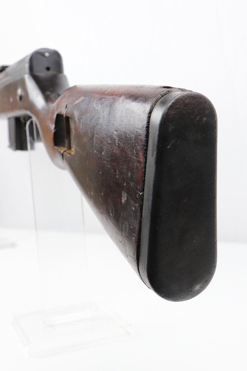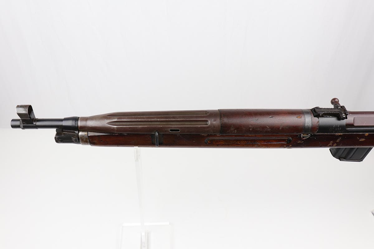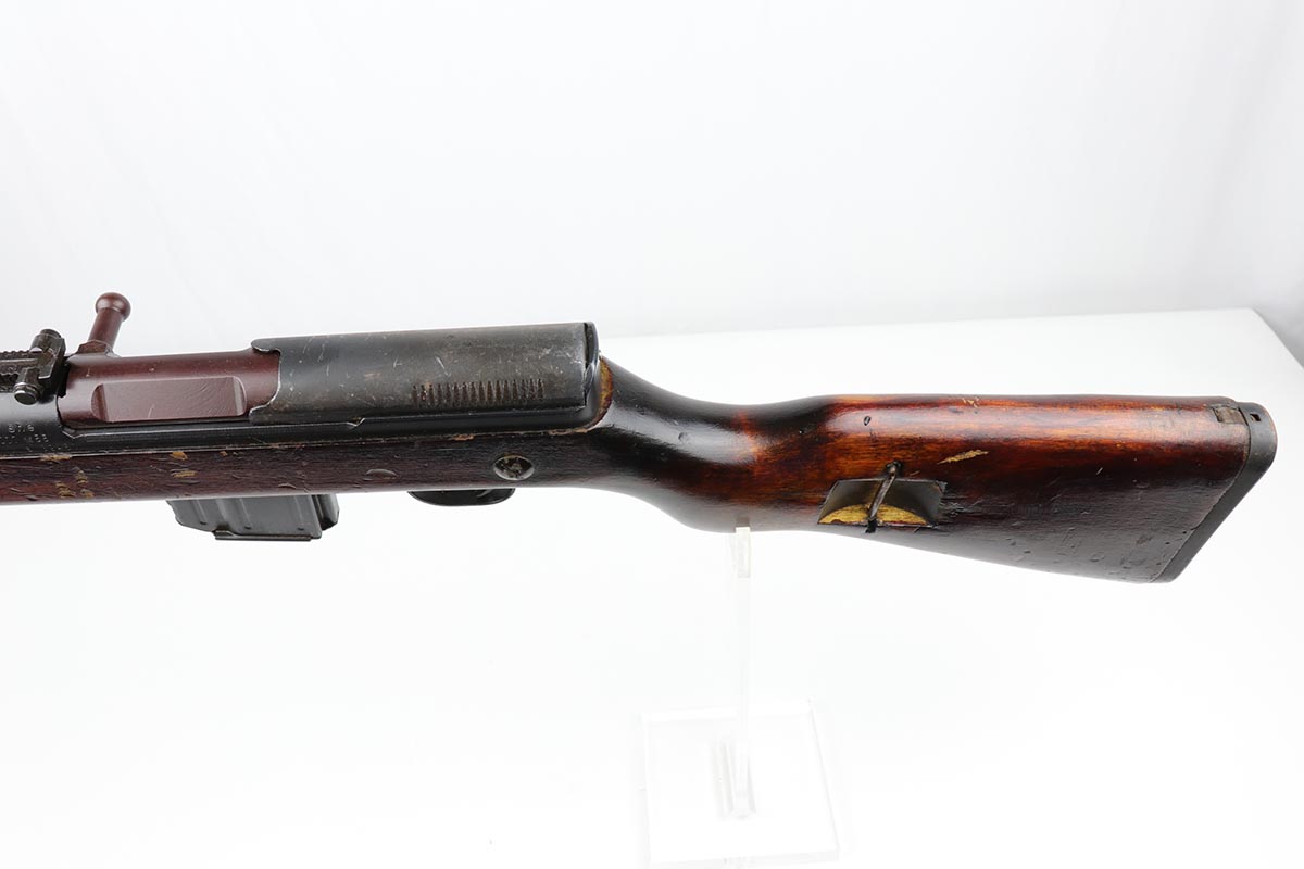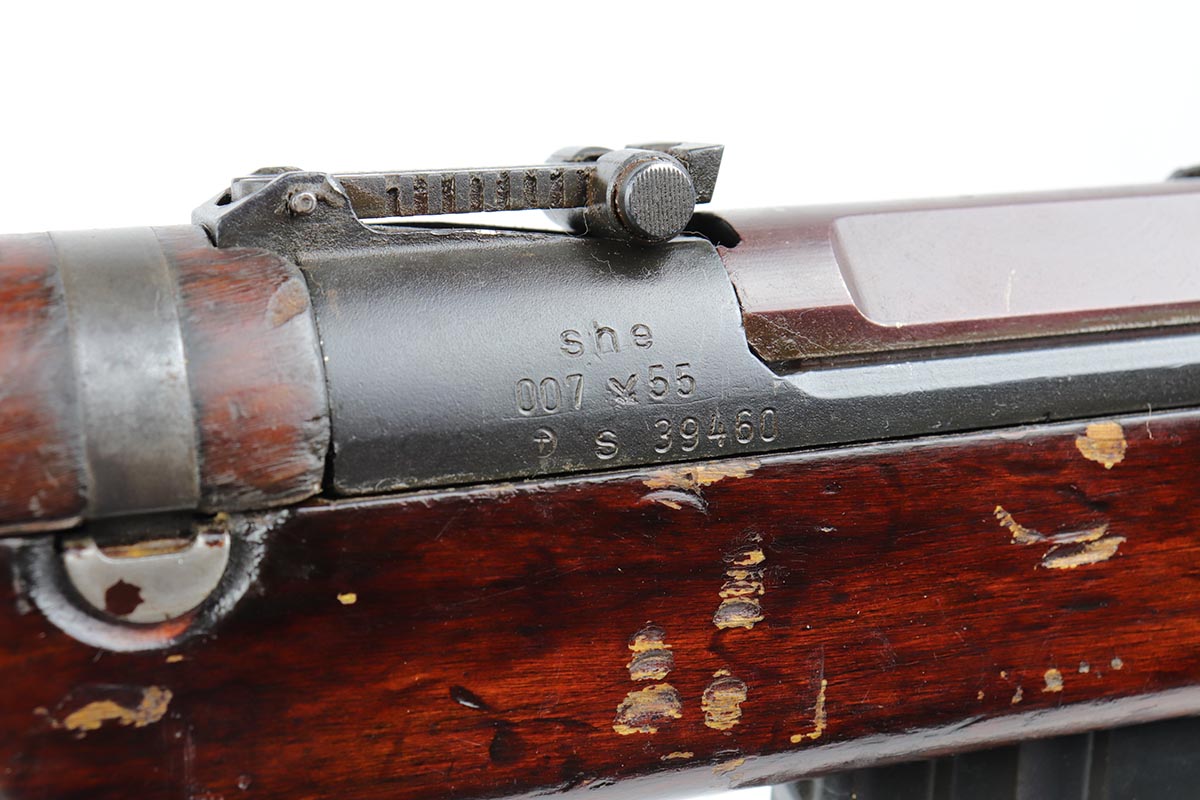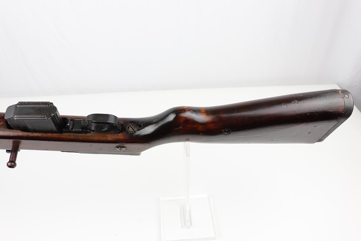 7/18/19 – This is an excellent example of a Czech vz. 52 rifle, manufactured in 1955 at the Povaska Bystrica (SHE) factory. The vz. 52 rifle is a self-loading rifle developed shortly after the Second World War in Czechoslovakia. Its full name is ‘7.62mm samonabíjecí puška vzor 52’. Vz. 52 is an abbreviation for vzor 52, meaning “model 52”. It fires the unique 7.62×45mm cartridge. It is considered both reliable and accurate. The first 5,000 vz. 52 rifles were made by Považské strojárne in Považská Bystrica, but due to production difficulties, its manufacture was taken over by Česká zbrojovka Uherský Brod. The vz. 52 feeds from a detachable box magazine with a 10-round cartridge capacity but could also be rapidly recharged from stripper clips with the bolt retracted. For this purpose, a stripper clip guide is milled into the front face of the bolt carrier, aligning with the magazine when the bolt is locked in the open position. This is the primary method of reloading the rifle as infantrymen were only issued 2 magazines per rifle. It ejects cartridge cases vigorously forward and to the left. This particular rifle has excellent bluing on the finished metal parts, with minimal wear and matching numbers on receiver and bayonet band. The bayonet is also in excellent condition, though the metal handguard shows some patination throughout. Smooth mechanics and bore has strong rifling but some frost and freckling throughout. Stock has various dings and small chips but no cracks or structural issues. This example has NO import mark on it. Receiver is dated to 1955.