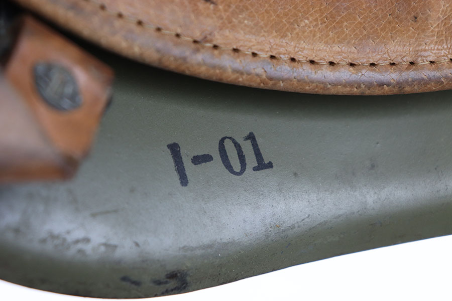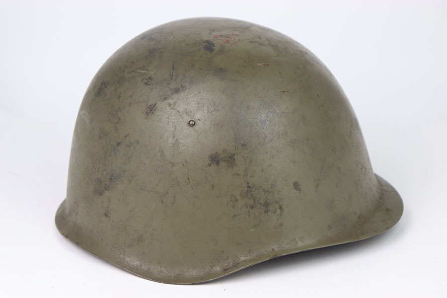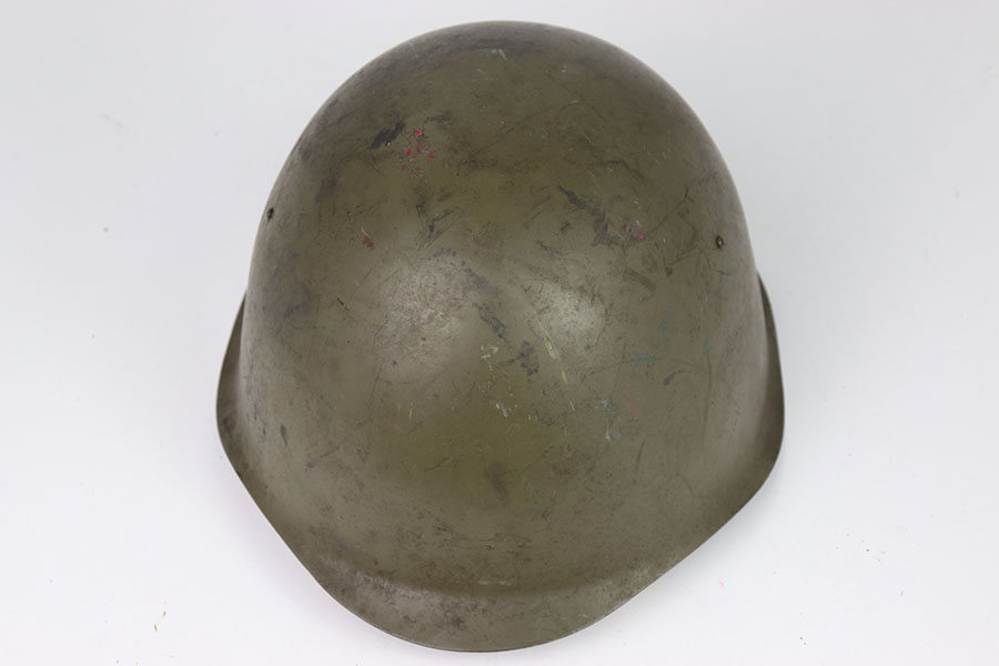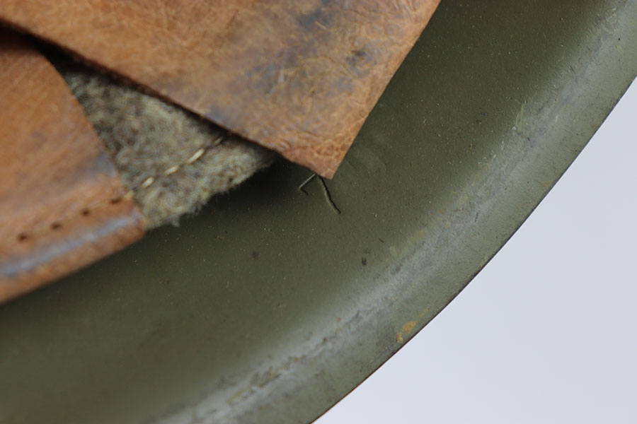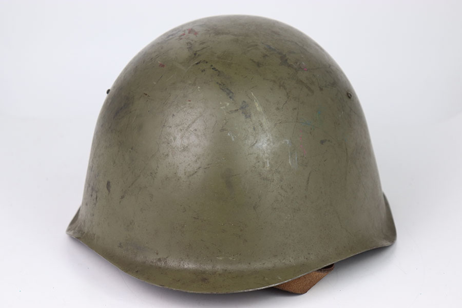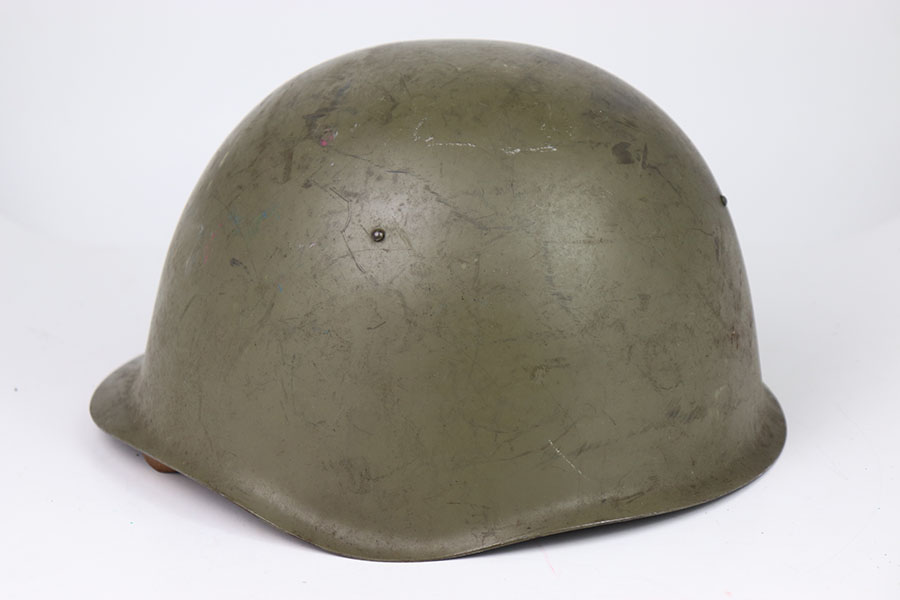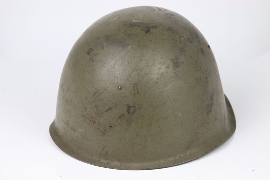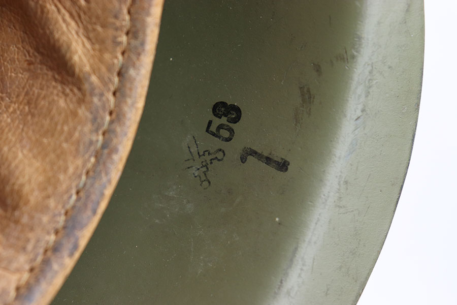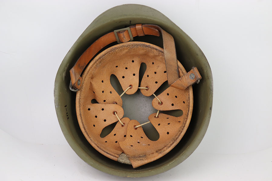 5/15/24 – This is a post WW2 Czechoslovakian M53 helmet. The exterior shell of the helmet is in great condition with typical scratches and abrasions throughout but still has the majority of its original finish. The inside is ink stamped with the crossed swords and 53 indicating its a M53 helmet. There is also an ink stamp on the other side of I-01. The liner appears to be original but is not marked as well as the neck strap. Great piece.