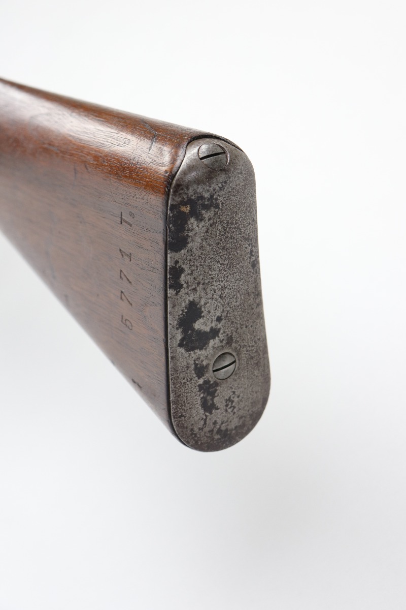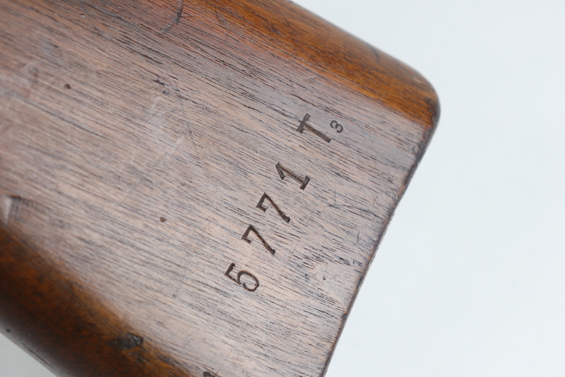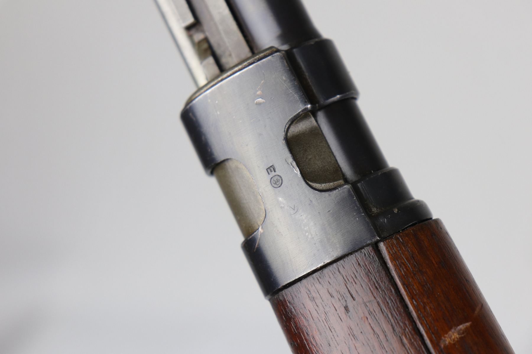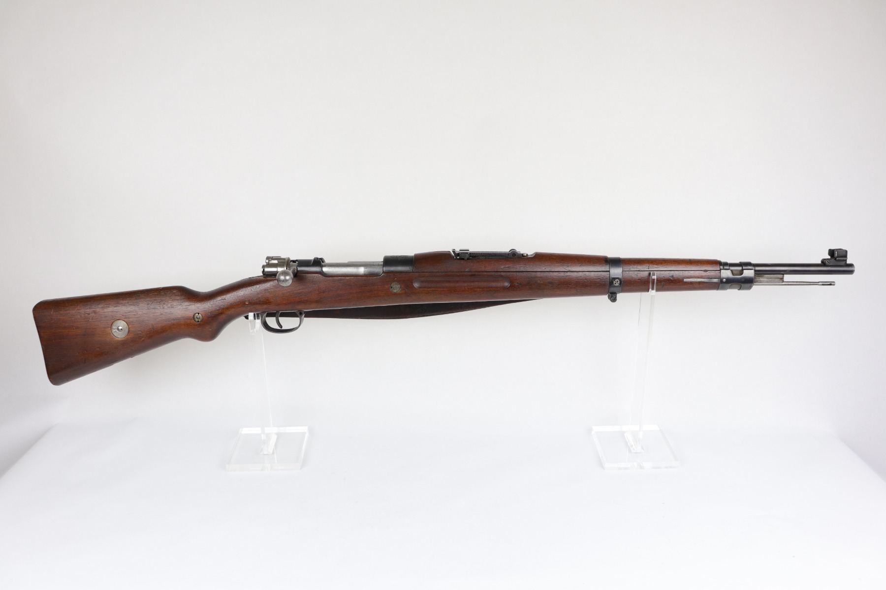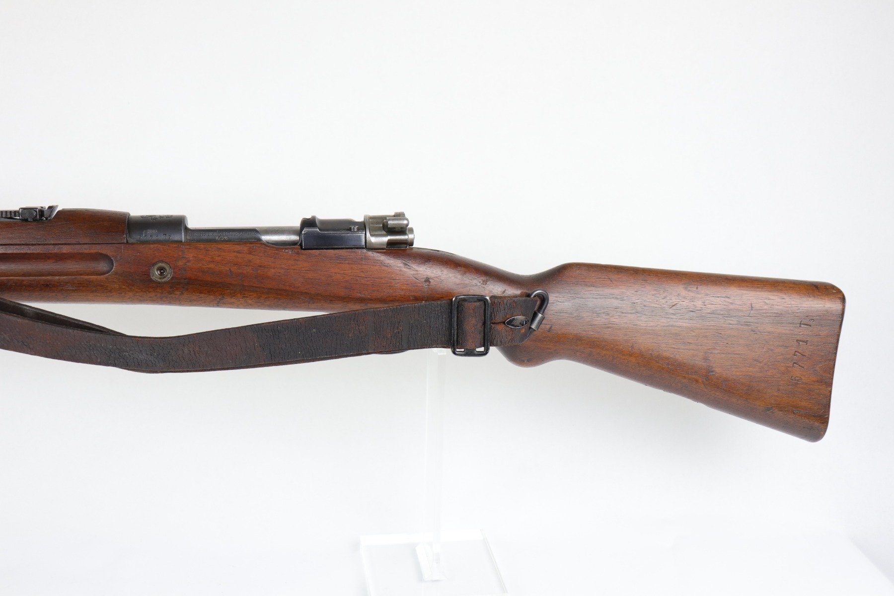 7/28/21 – Original 8mm Czechoslovak VZ24 rifle with Lion crest on the receiver and 1937 acceptance marks. This rifle is in its original configuration with all original finish. Most of the Czech rifles were reworked and reused by the Germans, but this remains unmodified as originally issued just prior to the German occupation of the Sudetenland. The original rust blue finish on the receiver is exceptional, with the internal bolt rails and chamber in the correct “white” finish. There is very little actual finish loss. There are a few handling marks, especially on the barrel and front barrel band and a noticeable scratch on the floor plate. The wood stock is excellent. There is one dark area of discoloration on the left side of the stock. The bore is minty. The late Mauser rifle collector/expert John Wall stated that this rifle was on the only unmodified VZ24 he had ever seen. It comes with an original leather sling that is lion-crested and 1937 dated. Original front sight guard.