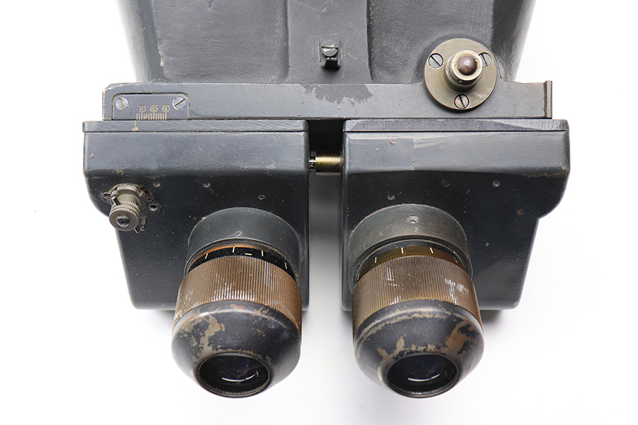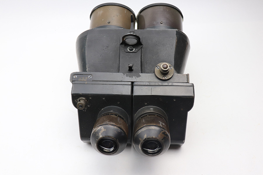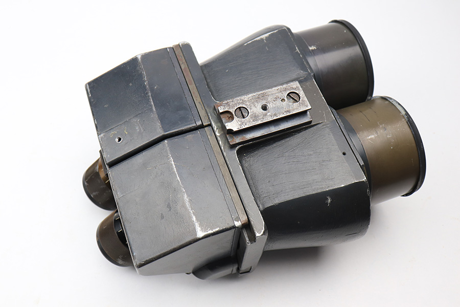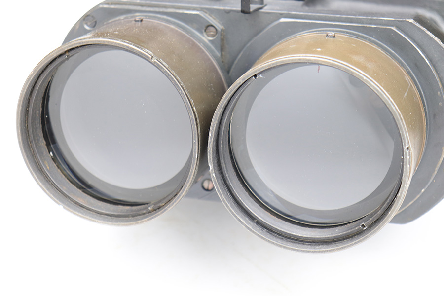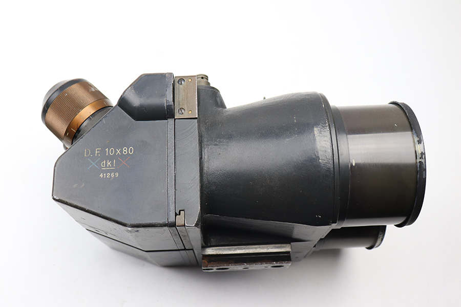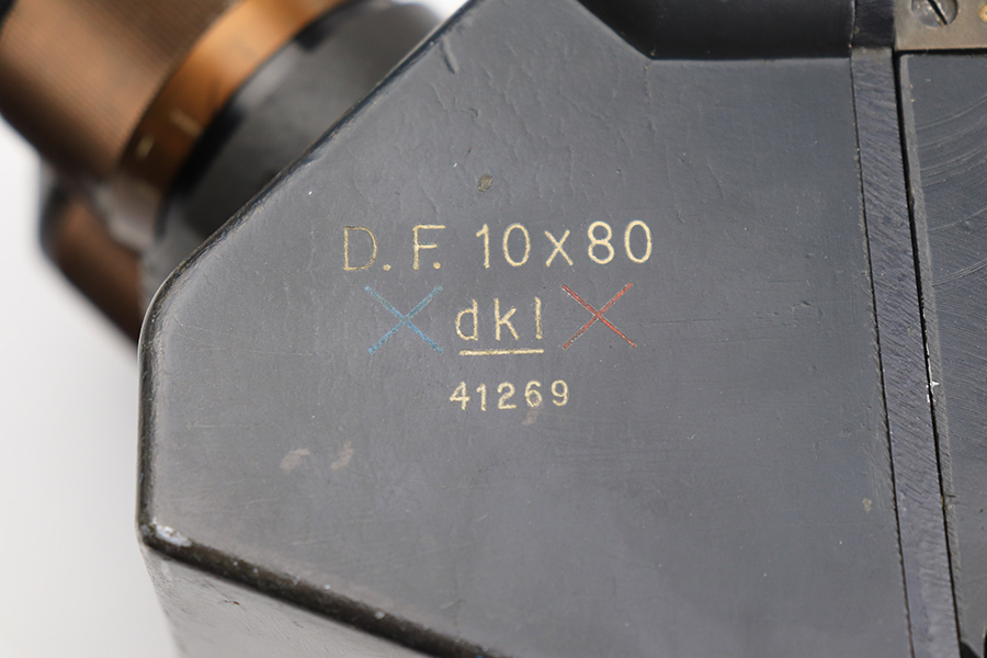 3/14/22 – This is an original pair of WW2 Luftwaffe Flak Gunner Binoculars. The binoculars are in great overall condition with excellent optics and fully functional adjustment knobs. The optics have a thin, original reticle that’s still visible and crisp. Beautiful optics with no clouding that were professionally cleaned by Zeiss. The exterior has some edge wear and mild patina / surface discoloration but no major issues. Stamped “D.F. 10×80 dkl 41269” with a blue “X” and a red “X”.