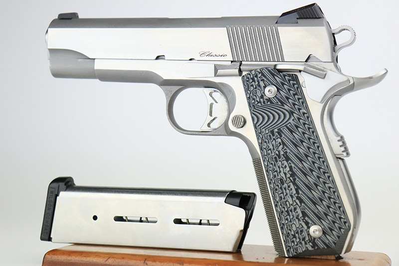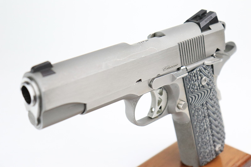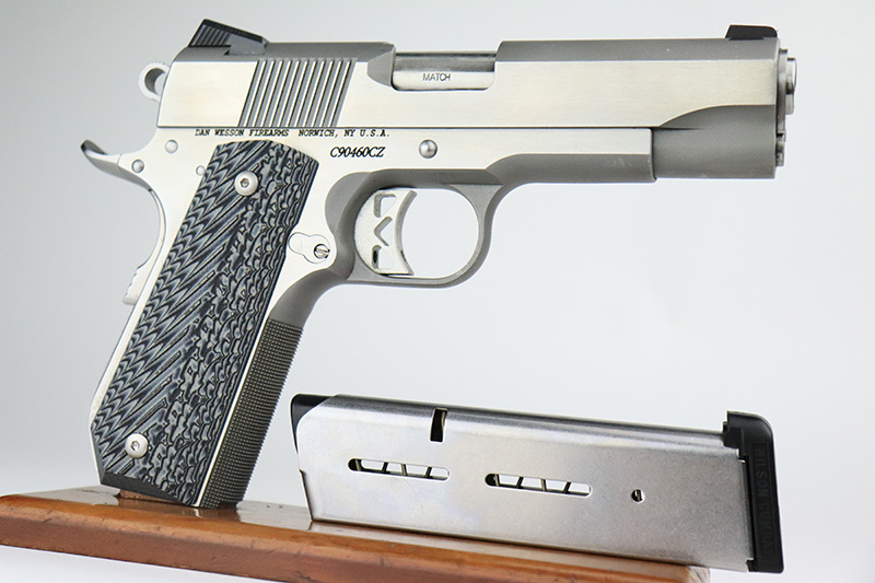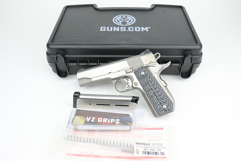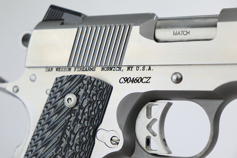 9/6/22 – This is an excellent Dan Wesson Commander Classic with stainless steel frame and slide. It has a few minor surface scratches but is in very lightly used condition overall with an excellent bore. The original wood grips are included, but a set of VZ grips are installed and shown in the photos. It has snag-free Tritium sights and a smooth, bobbed mainspring housing. Also functions great as a concealed carry handgun.