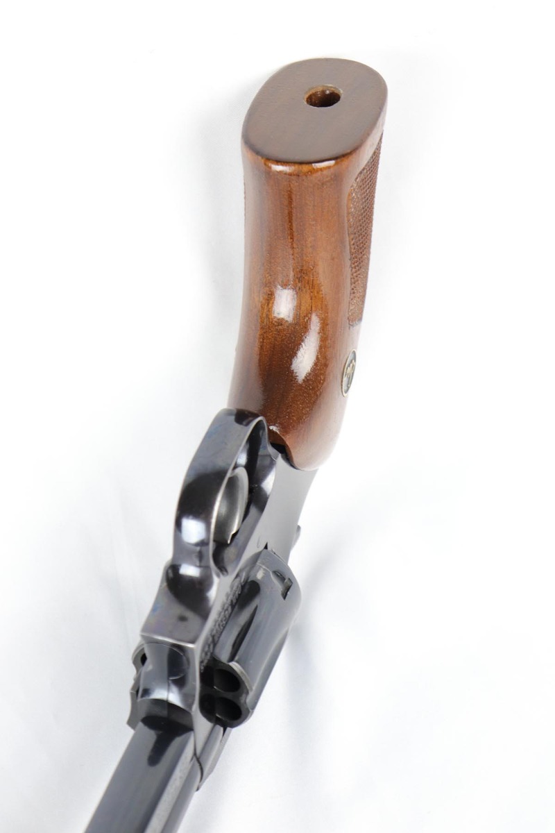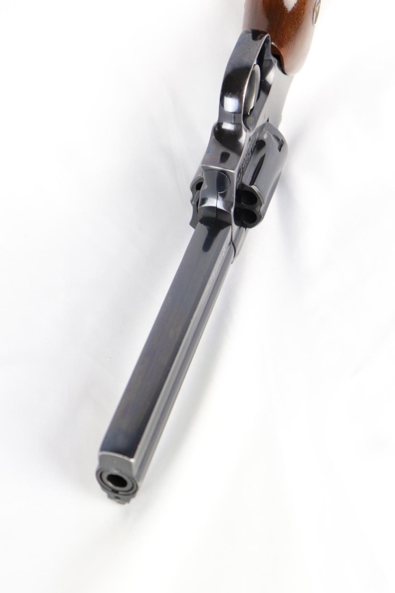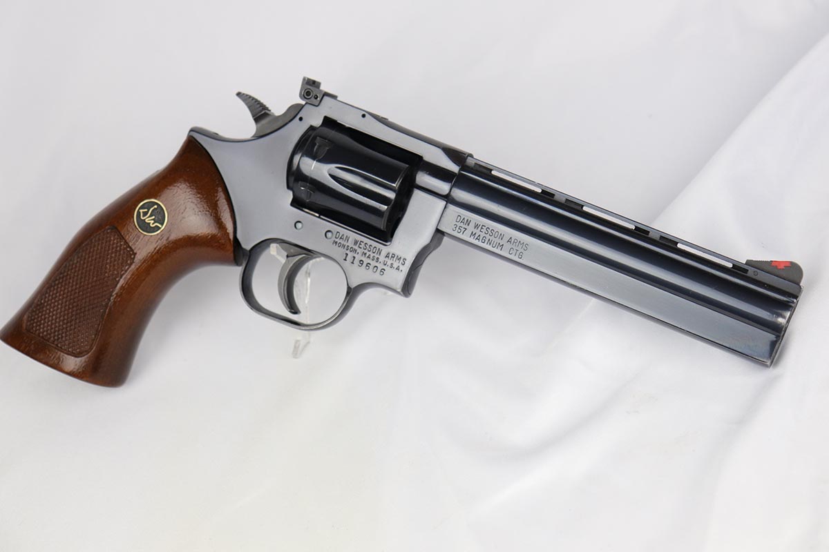 5/24/18 – This is a near-mint Dan Wesson model 15-2 revolver. chambered in .357 magnum. The high polish bluing rates at 98-99% with a basic roll mark on the cylinder and a little thinning on the trigger guard. The bore and grips are minty. Excellent timing and action.