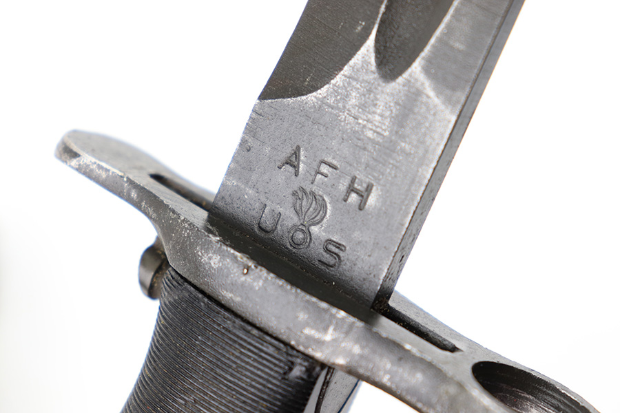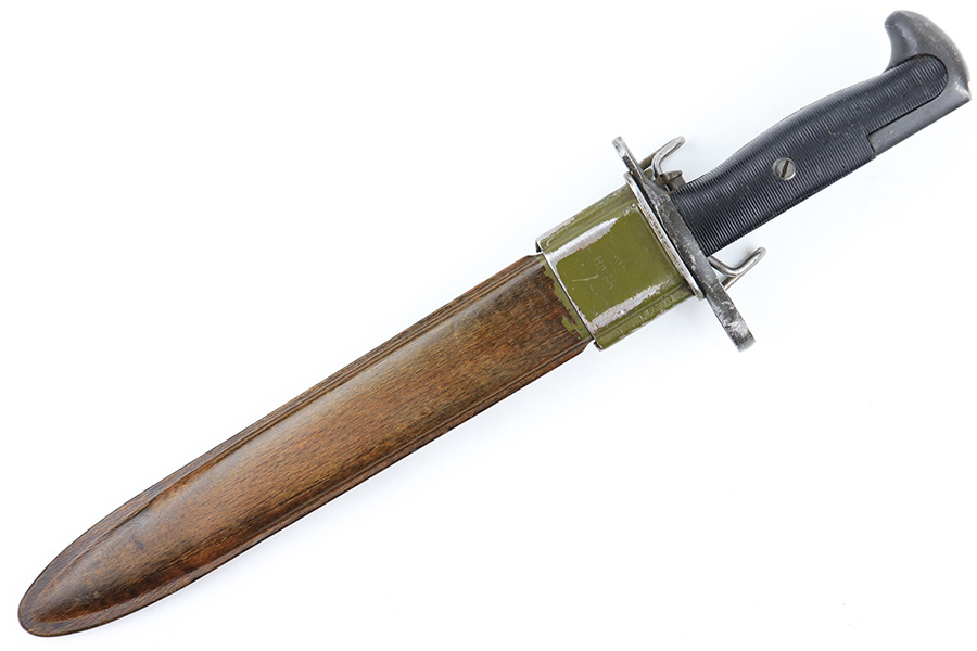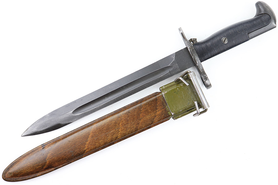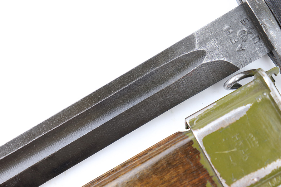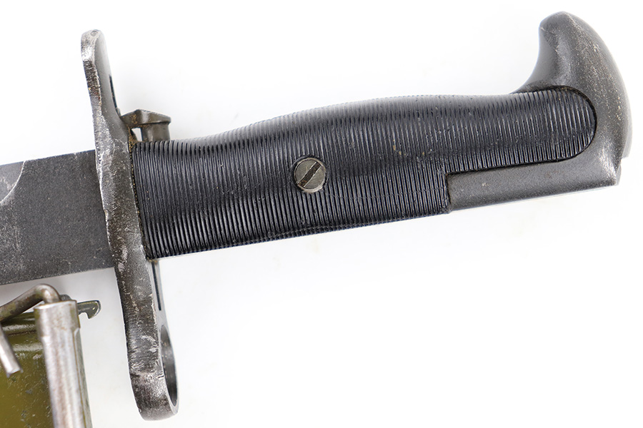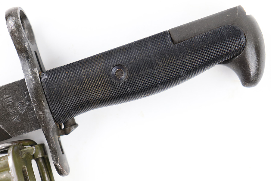 7/26/23 – This is an original WW2 production M1 Garand bayonet that was later sent for use by the Danish military. The bayonet therefore comes with a Danish style scabbard. Overall, the bayonet is in great condition with a very nice blued blade that’s AFH maker stamped and ordnance proof stamped on the ricasso. There’s light finish loss throughout the blade but no major issues and no signs of excessive sharpening. Overall length is about 14.5 inches. Blade length is 9.75 inches with a 9in edge.