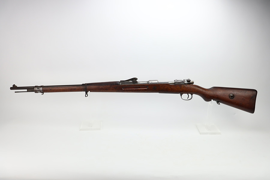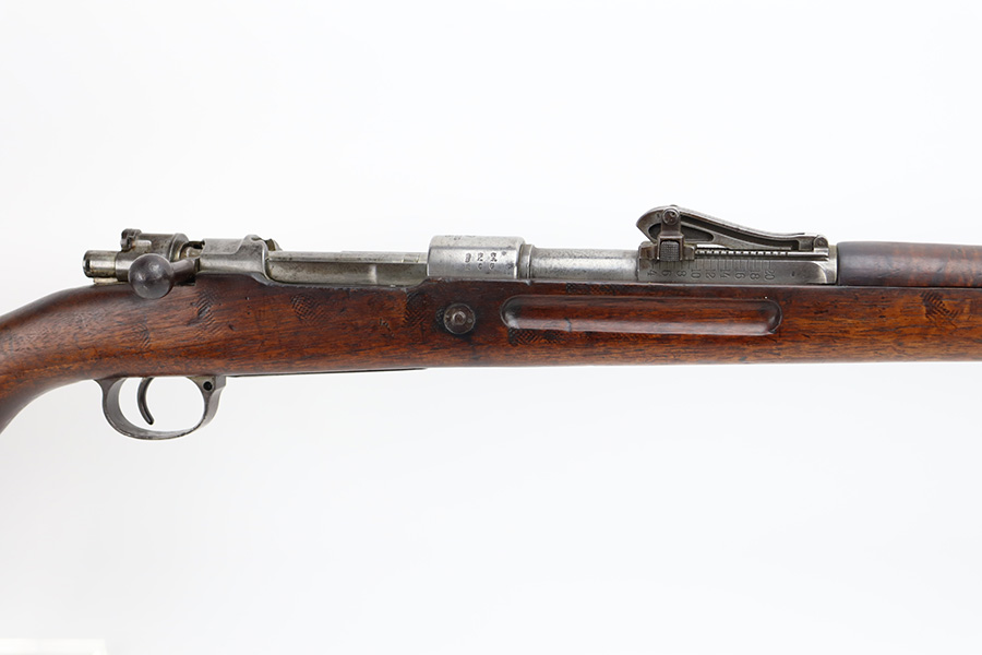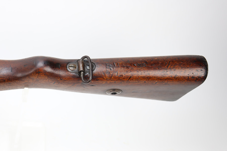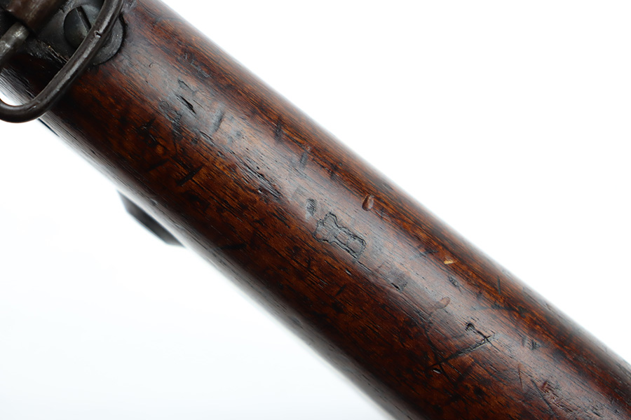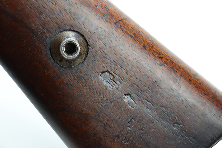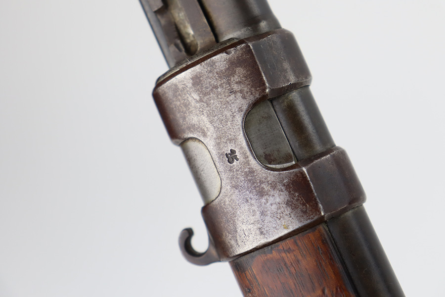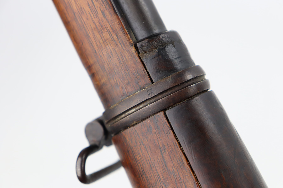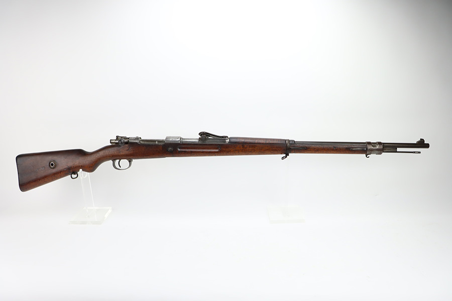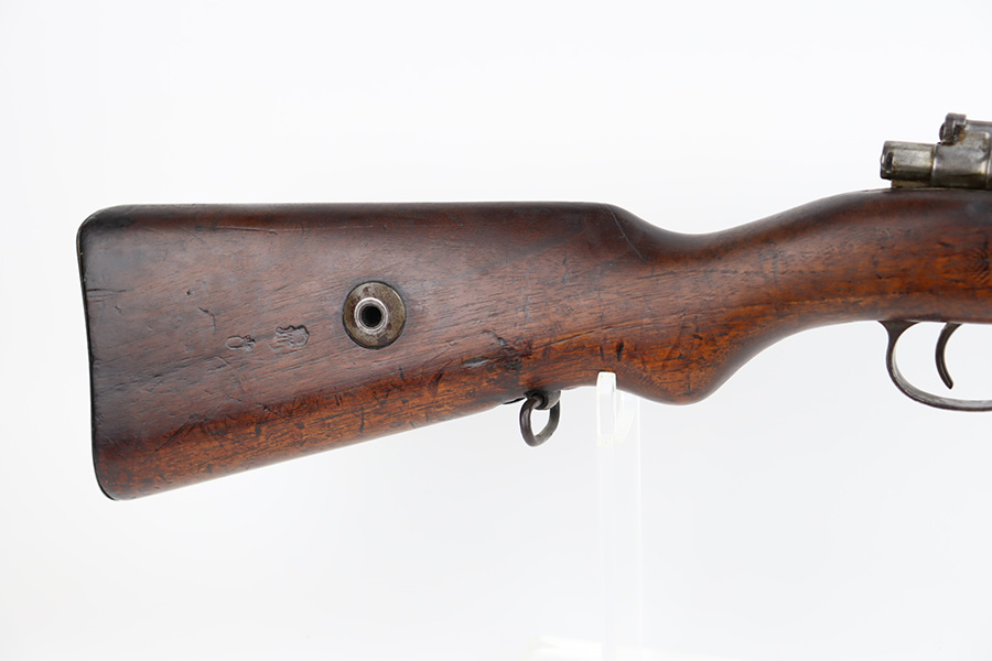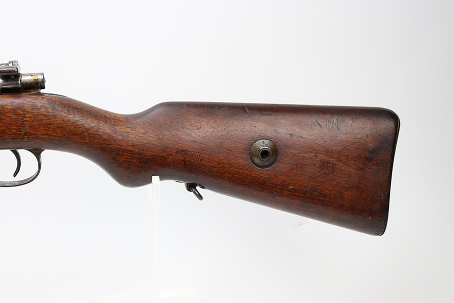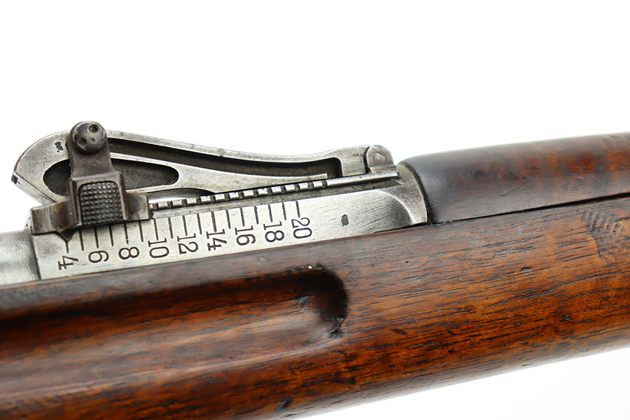 12/4/23 – This is a great example of a Gewehr 98 made by the Danzig Arsenal in 1917. The rifle retains the majority of its original finish. The receiver is in the white but has some prickling of corrosion throughout. Many of the parts still retain some of its original bluing but the majority of the rifle has patina on it. The stock is in good shape without any damage to note. There are some handling marks throughout the stock which can be seen in the photos. The stock has been lightly sanded but the cartouches are still sharp. The rifle has matching serials throughout except for the magazine follower and the rear trigger guard screw. The bore is fairly dark with a hint of brightness when shining a line and the rifling is sharp.