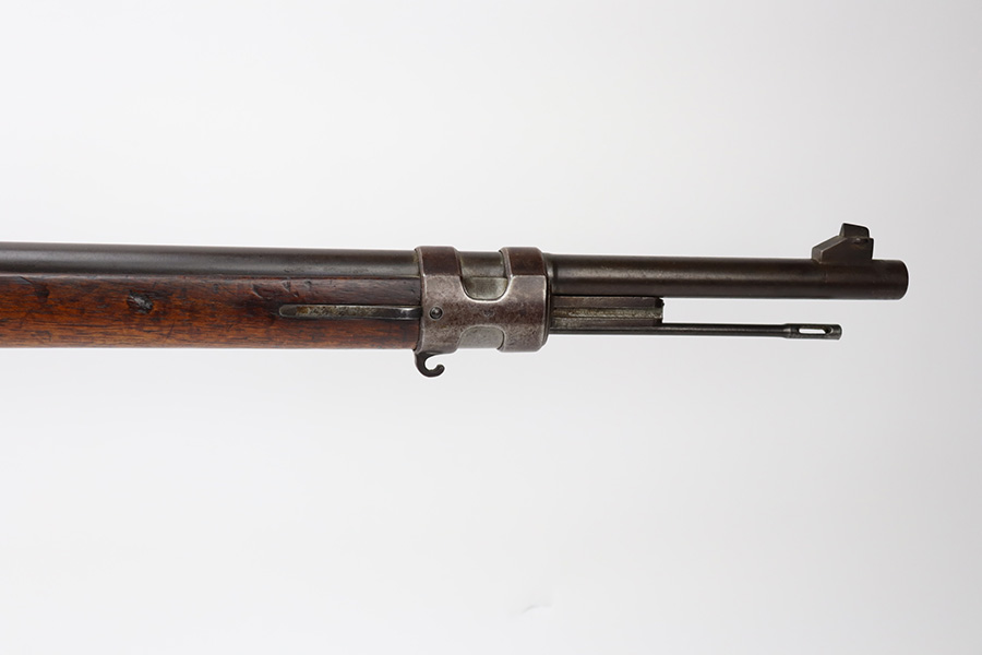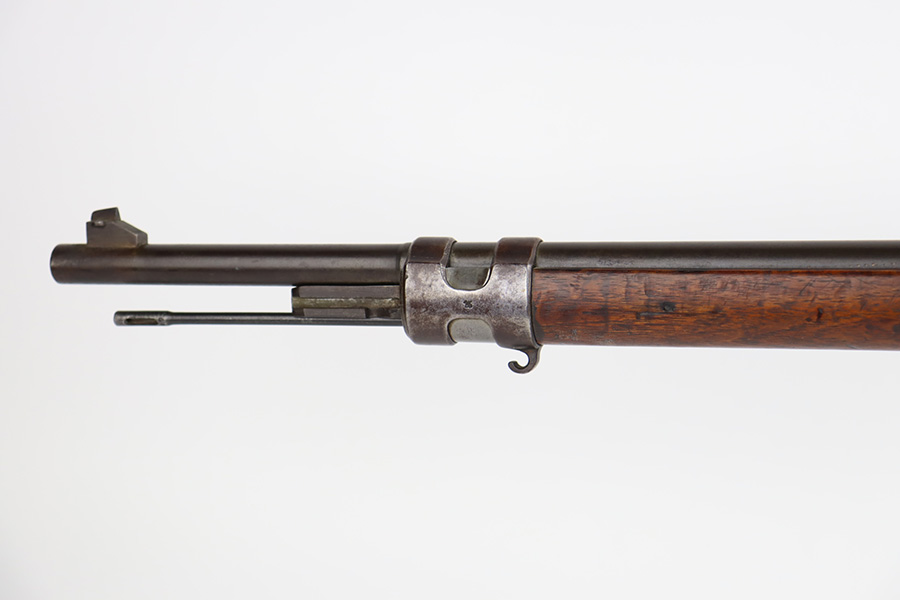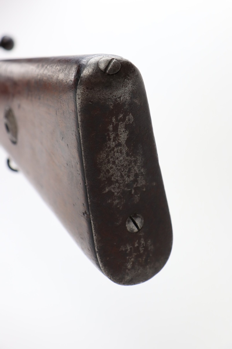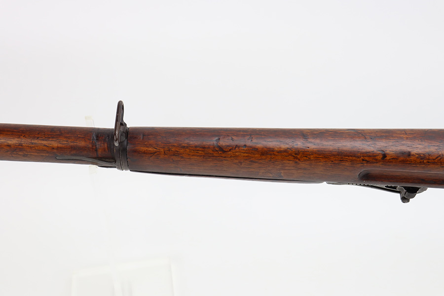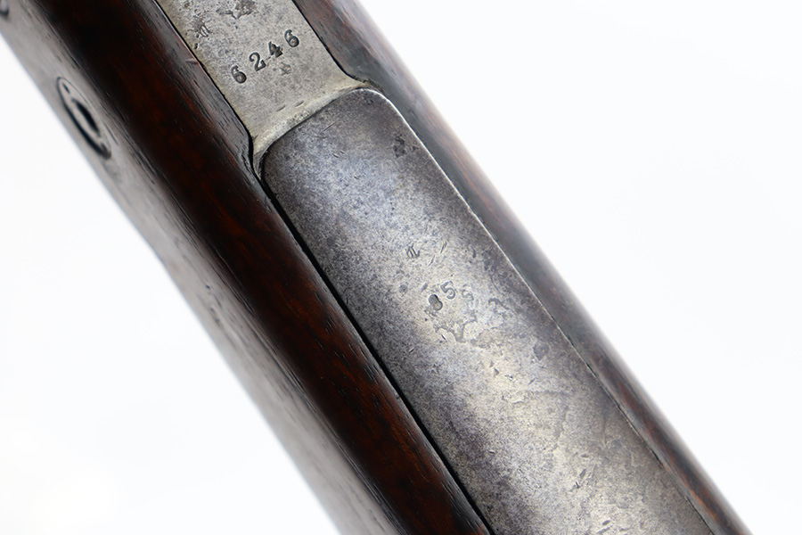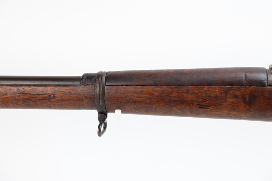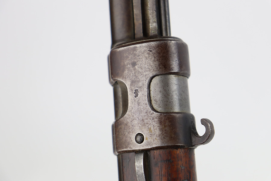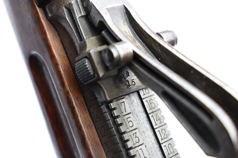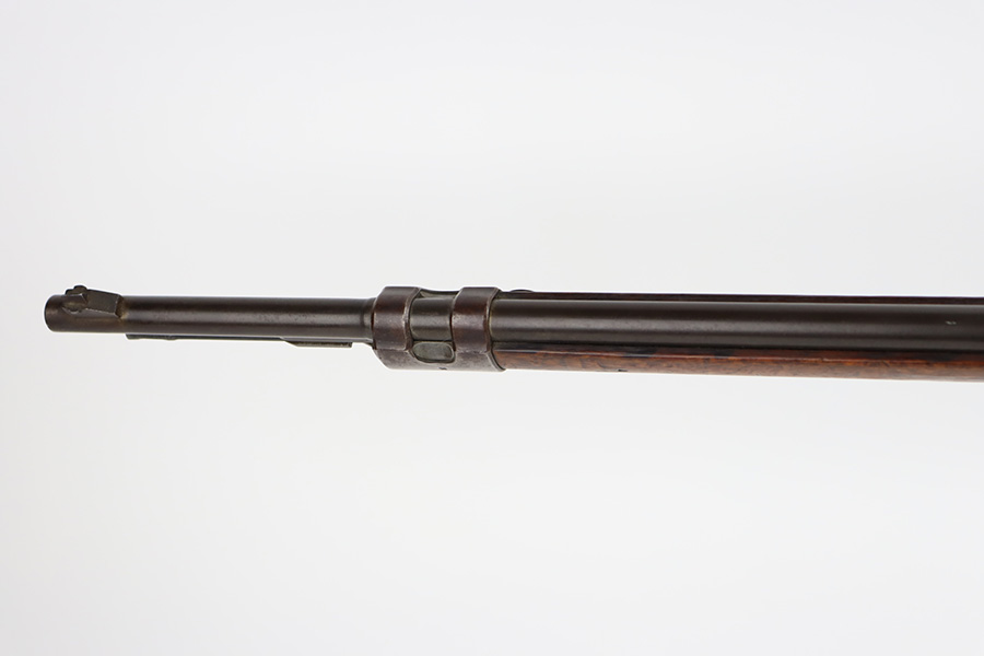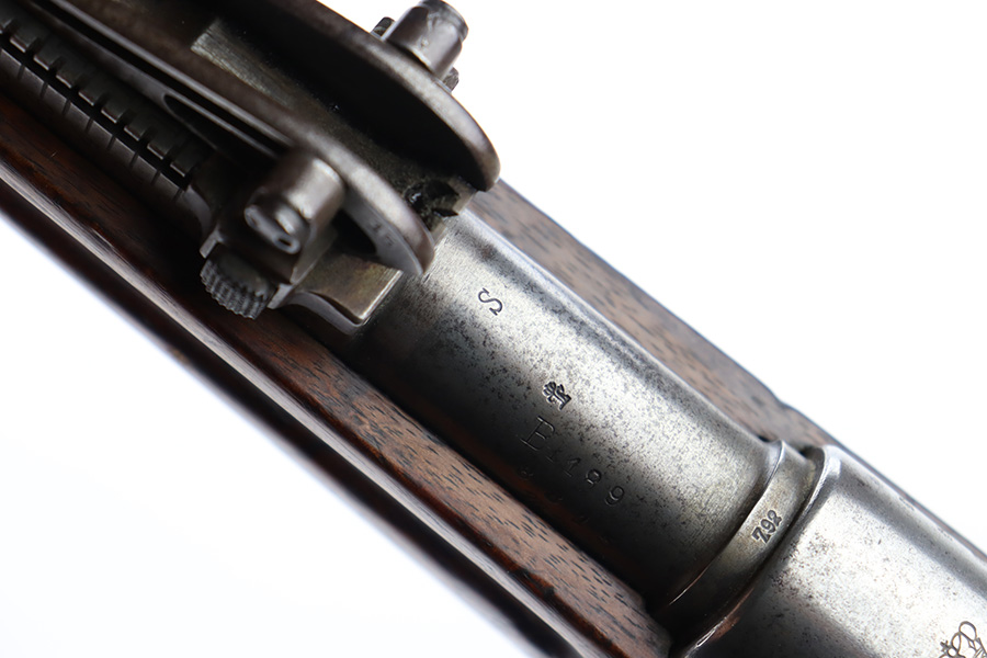 12/4/23 – This is a great example of a Gewehr 98 made by the Danzig Arsenal in 1917. The rifle retains the majority of its original finish. The receiver is in the white but has some prickling of corrosion throughout. Many of the parts still retain some of its original bluing but the majority of the rifle has patina on it. The stock is in good shape without any damage to note. There are some handling marks throughout the stock which can be seen in the photos. The stock has been lightly sanded but the cartouches are still sharp. The rifle has matching serials throughout except for the magazine follower and the rear trigger guard screw. The bore is fairly dark with a hint of brightness when shining a line and the rifling is sharp.