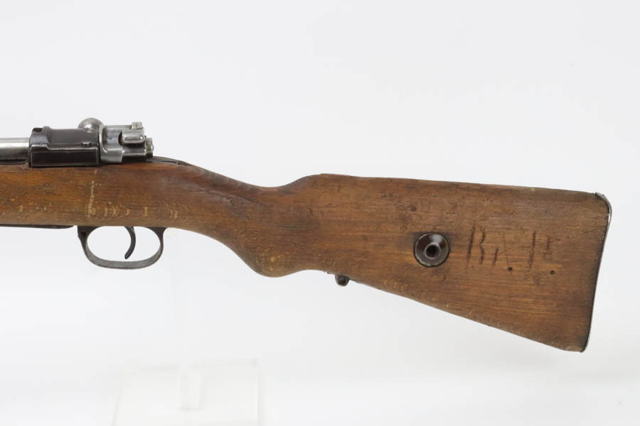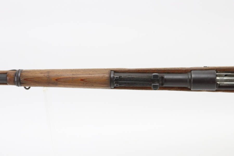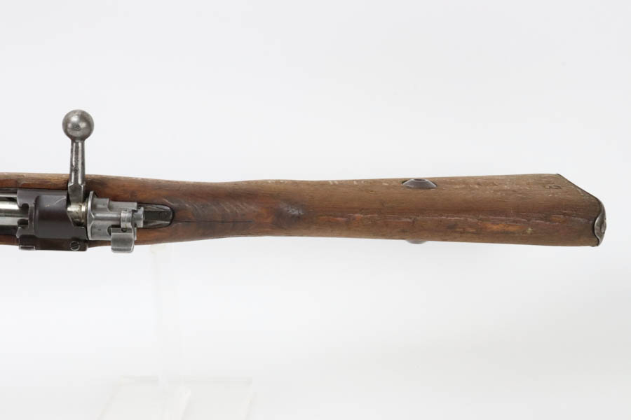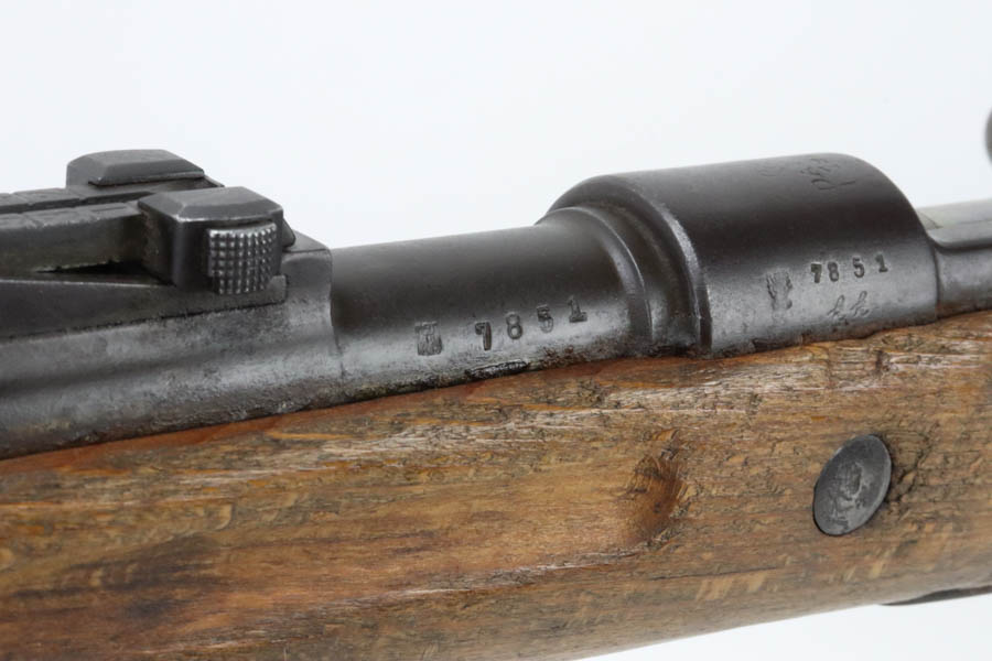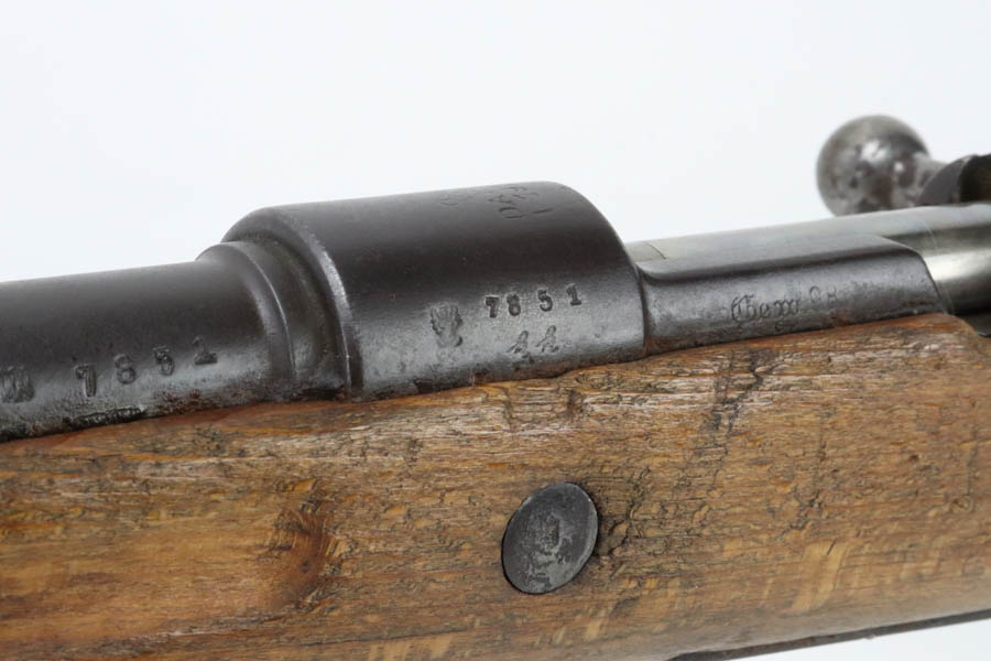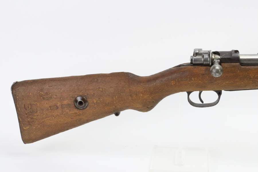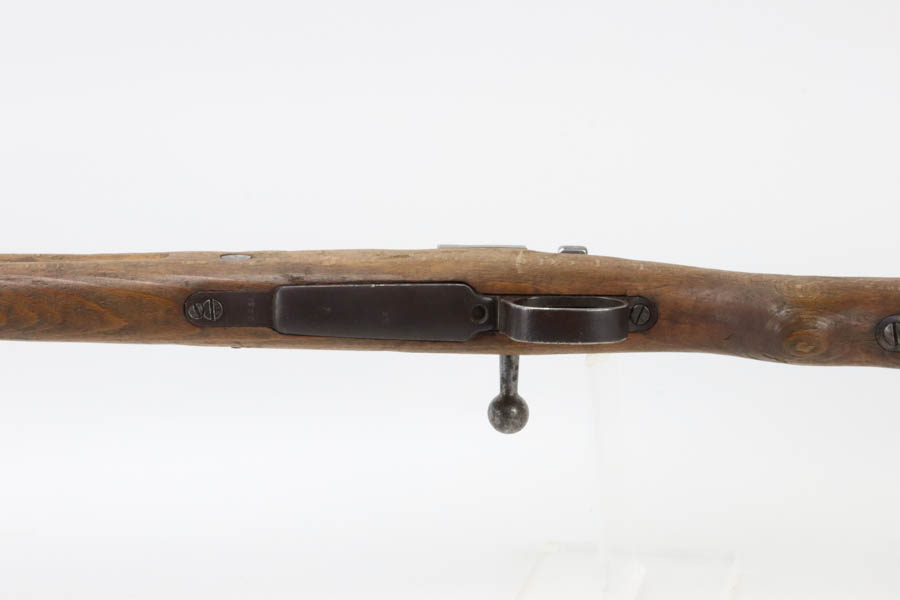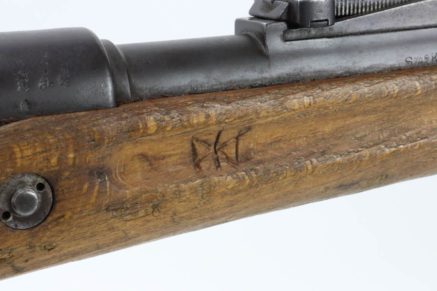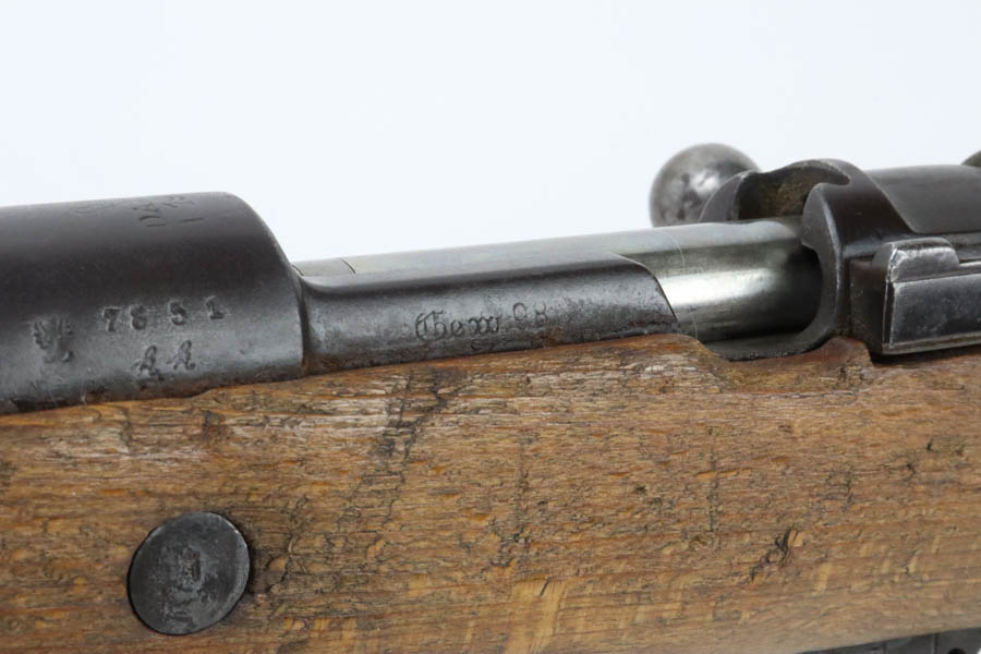 06/26/2024 – For sale is a Danzig Gewehr 98M made in 1917. This rifle started as a standard G98 infantry rifle but was converted to a G98m with a tangent rear sight during the Weimar Era. This rifle is in good condition overall but the bluing has dulled with age. There are no signs of active pitting or rust. The rifle is mismatched throughout. The stock does have a crack behind the tang and one at the rear sling swivel. The stock is dry and so there are tiny splits visible. The bore is dark but the worn rifling is visible with light. The rifle does not come with a cleaning rod and is import marked on the right side of the barrel.