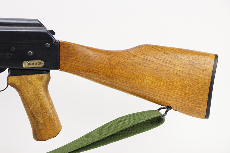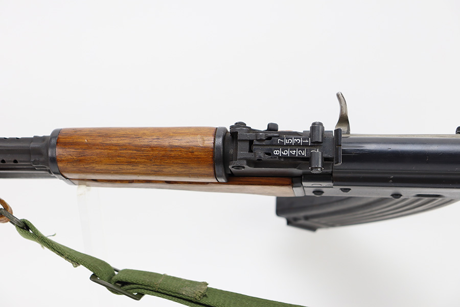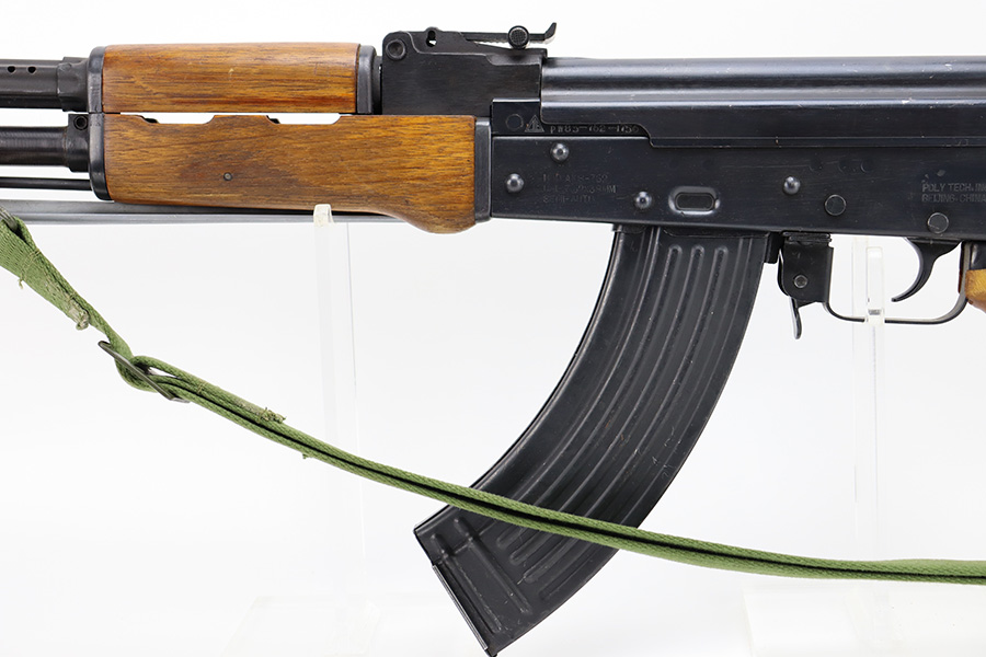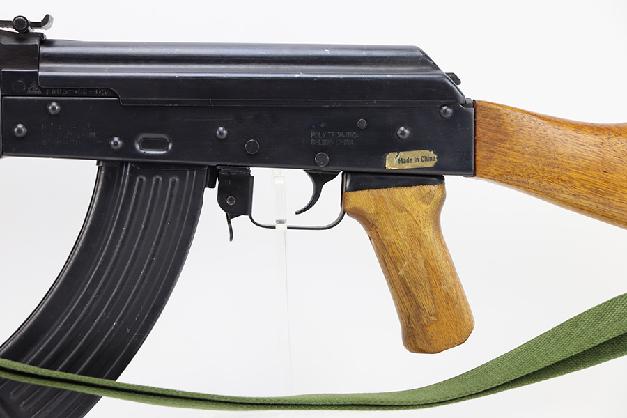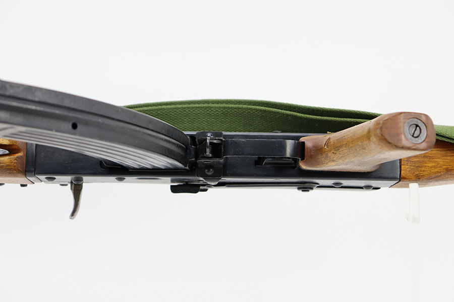 12/5/23 – This is a fantastic example of a rare, desirable pre-ban Chinese Type 56 Spiker made by Polytech in China. These rifles were banned from import in 1989. This example is in excellent shape and well taken care of. The bluing on the rifle is excellent with some finish loss on the top cover. The wood furniture is free of any damage other than some surface damage to the sides where the bayonet tip is recessed. The bayonet folds out and locks properly. The bore is very bright but is slightly foggy towards the muzzle. The rifle comes with a Chinese green canvas sling and one unmarked 30 round magazine.