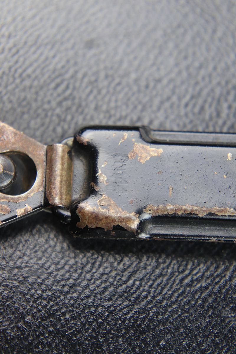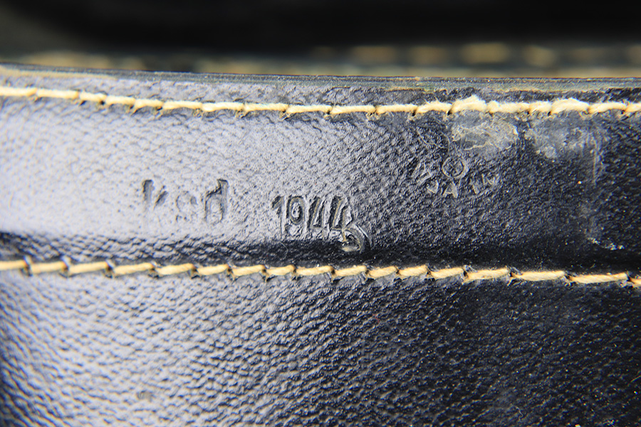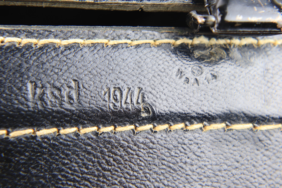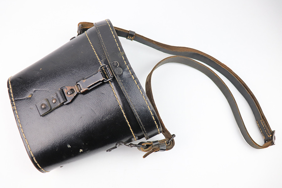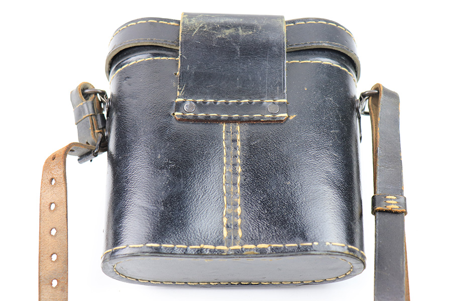 1/6/23 – This is an original pair of WW2 German binoculars or “Dienstglas” 10×50 magnification maker stamped “cxn”. The binoculars come with an excellent condition leather case that still has the original shoulder / carry strap attached. The front of the leather case is stamped “ksd 1944” and waffen proof stamped. The binoculars have some mild edge wear and surface patina, but most of the original finish and textured handles are in great overall condition. The adjustment knobs are fully functional, although the size adjustment knob is tight. The optics are excellent; very crisp and clean. Comes with an original leather carry lanyard as well. All original and authentic.