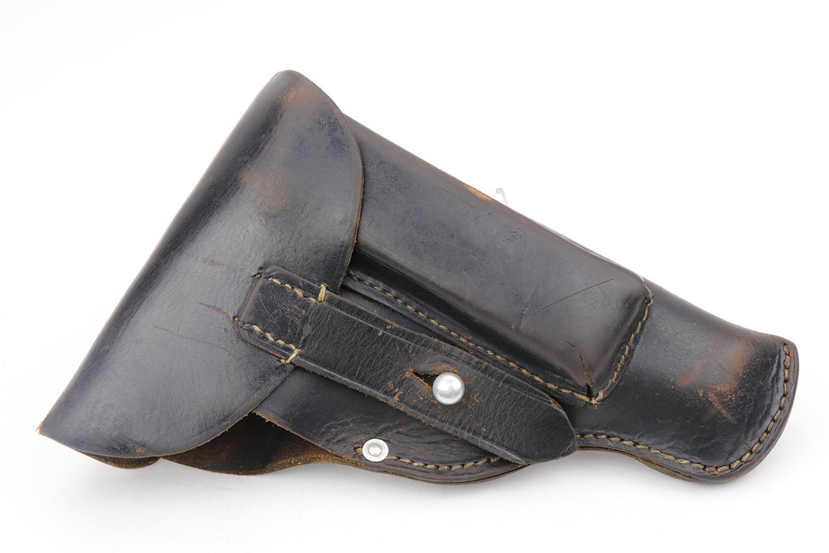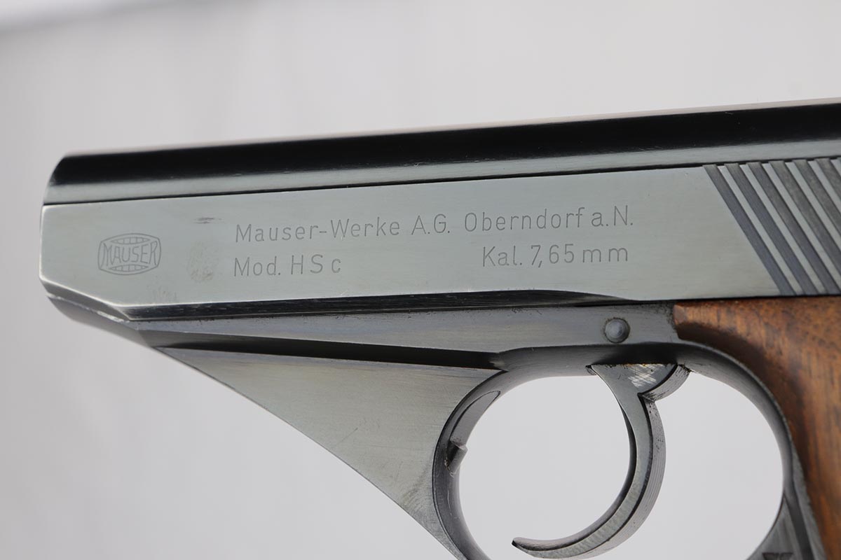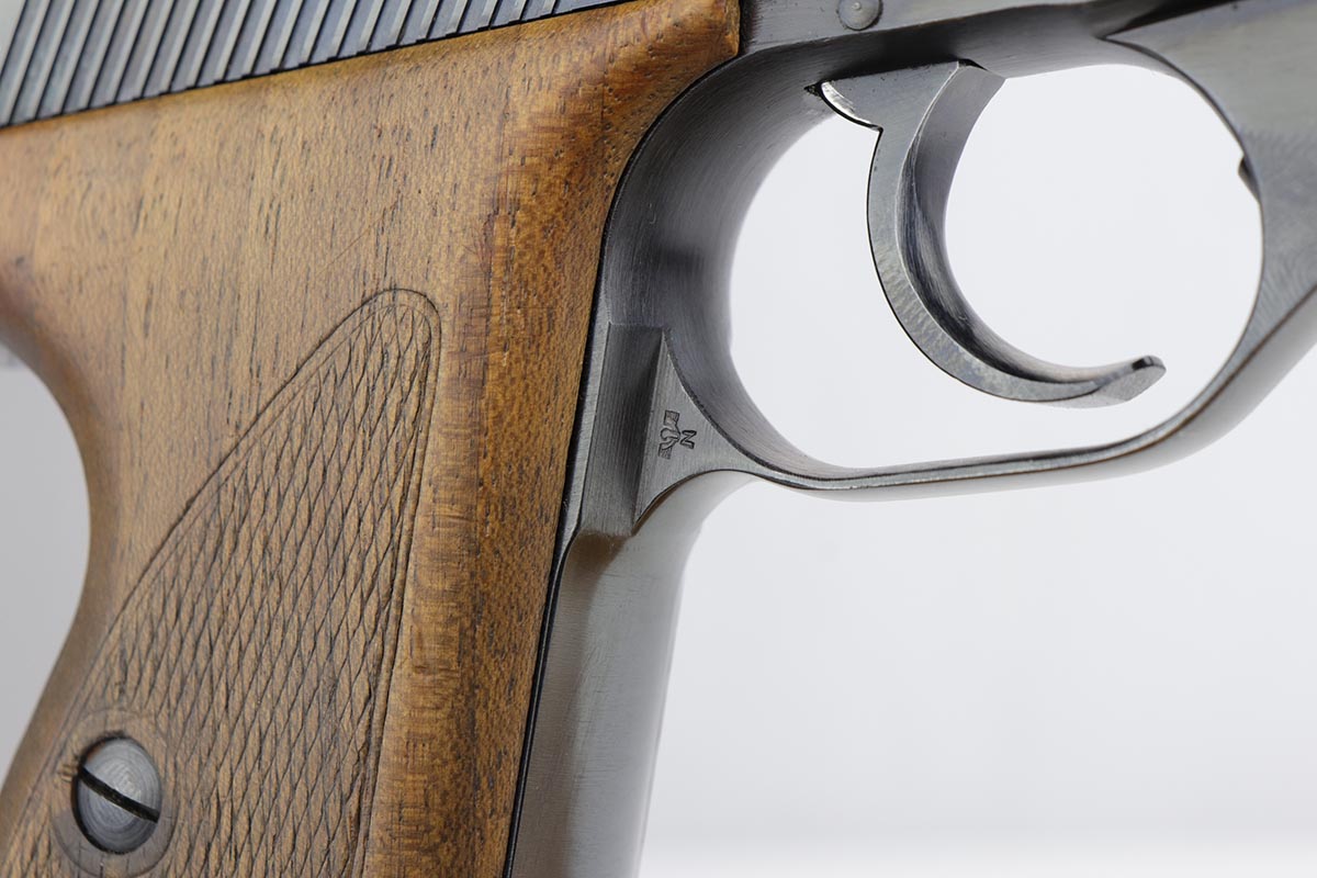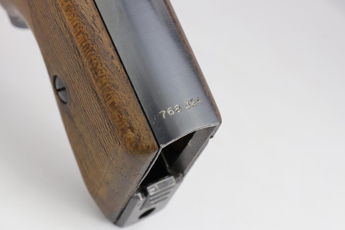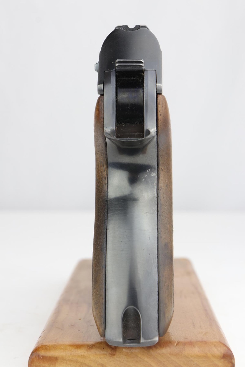 2/21/20 – This is a beautiful Police issued Mauser HSc rig that was manufactured in 1942, then captured and brought back to the states by S/Sgt Harold Yeager in October of 1945. This listing comes with the original capture document, holster, spare magazine, and a binder of photos of Yeager that help to detail his time in the Air Corps during the war, as well as some of his personal life back in the states. The gun itself has about 98% of the original, high-polish blue, with most of the finish loss on the back strap. Mint bore and excellent grips. Rig includes a banner magazine and a half-moon magazine. The holster is 1942 dated and Berlin marked. It’s in very good condition with minor signs of age and handling wear. We recently posted a Youtube video on this particular gun, which can be found in the last image file for this listing.