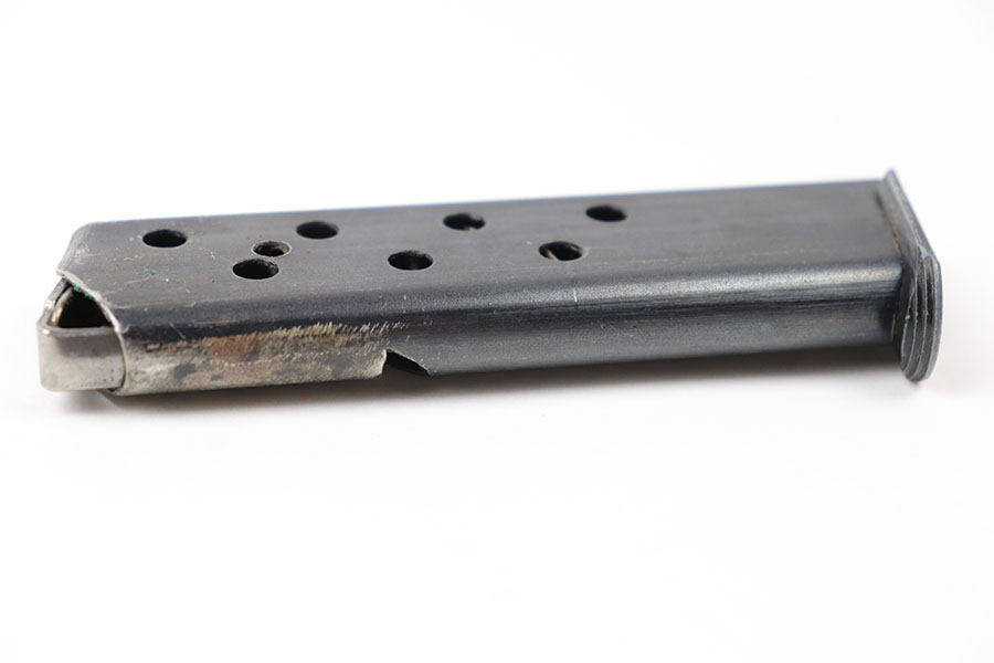 10/4/21 – This is an original Sauer 38h magazine from WW2. The magazine base is stamped with the double S Sauer logo. No other markings or stamps. There is some minor finish loss on the tube but no rust or pitting and a functional spring.
