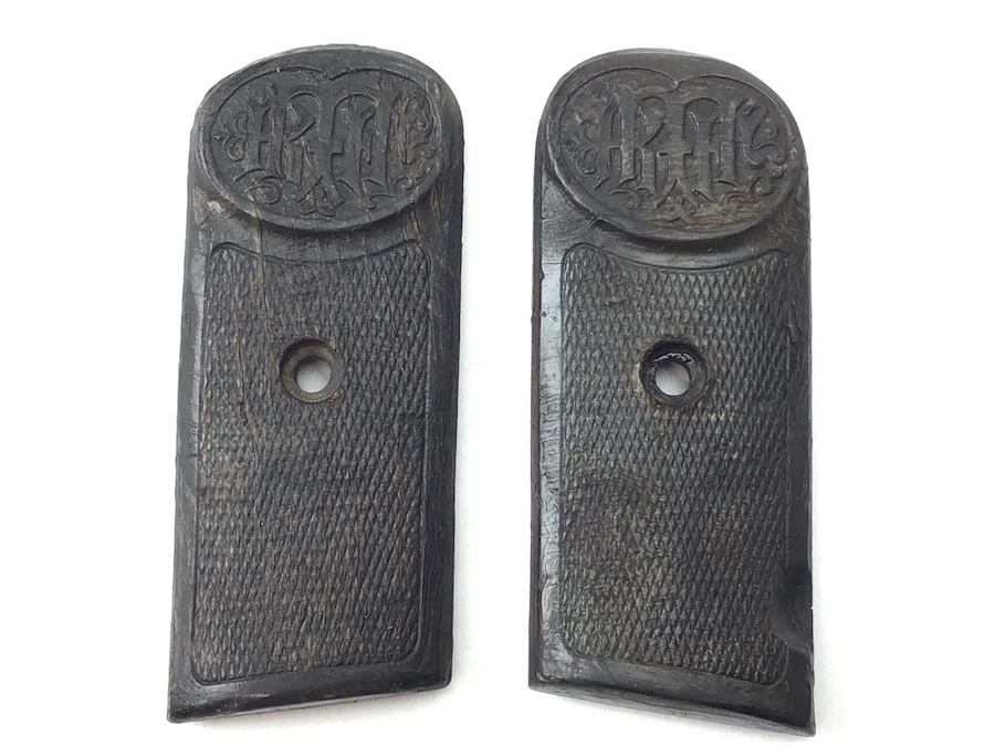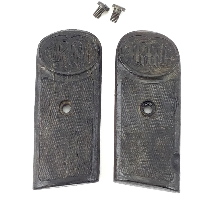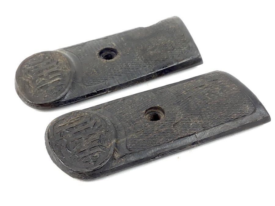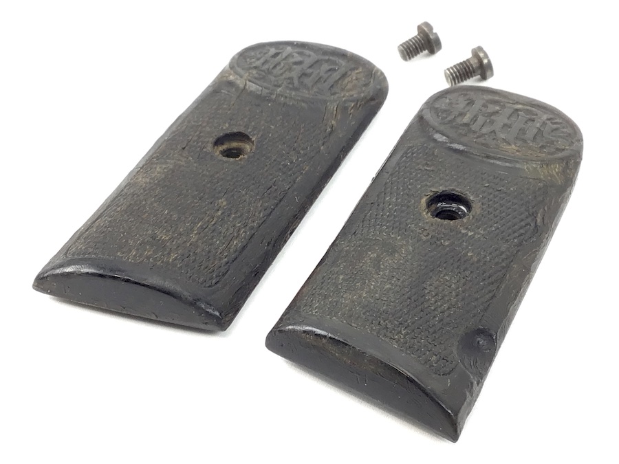 12/3/21 – Original and good condition. Dreyse Model 1907 Grip Panels. Includes original screws. Shows signs of age and honest wear, but still useable. There’s surface wear throughout as shown.