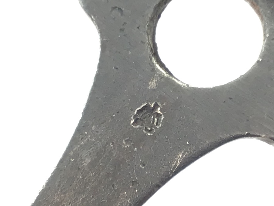 5/11/21 – This is an original Mauser eagle 63 Luger tool. The droop winged eagle stamp was used from 1935-1938 on Mauser Lugers. The front of the tool has a strong stamp. The tool is in very good condition with no rust or pitting. Guaranteed original and authentic.