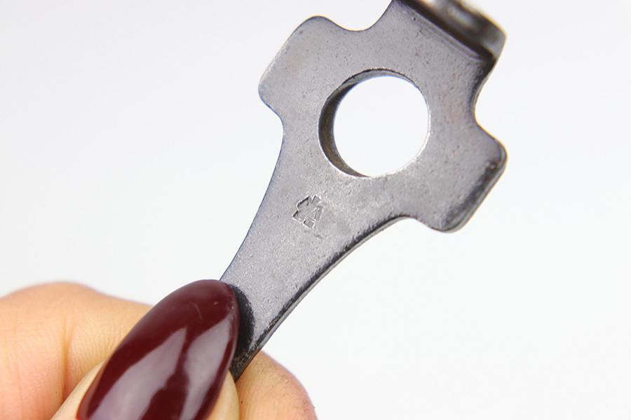 1/10/23 – This is an original Mauser Luger tool from WW2. The tool is stamped on the front with a droop winged eagle 63. These were military proof stamps used on Mauser Lugers up until 1937. The tool is in great condition with most of the original finish intact and some mild surface patina as shown.