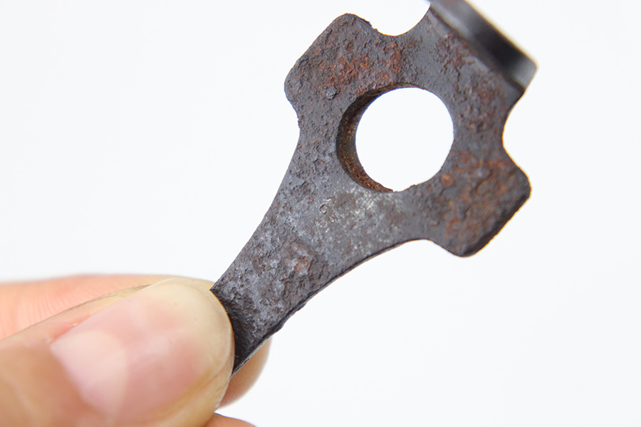 4/10/23 – This is an original Mauser Luger tool from WW2. The tool is rusted throughout and has pitting mixed within the original blued finish. Despite this obvious wear, the front of the tool still shows a droop winged eagle 63 proof stamp. Great for early WW2 production Lugers up until 1937.