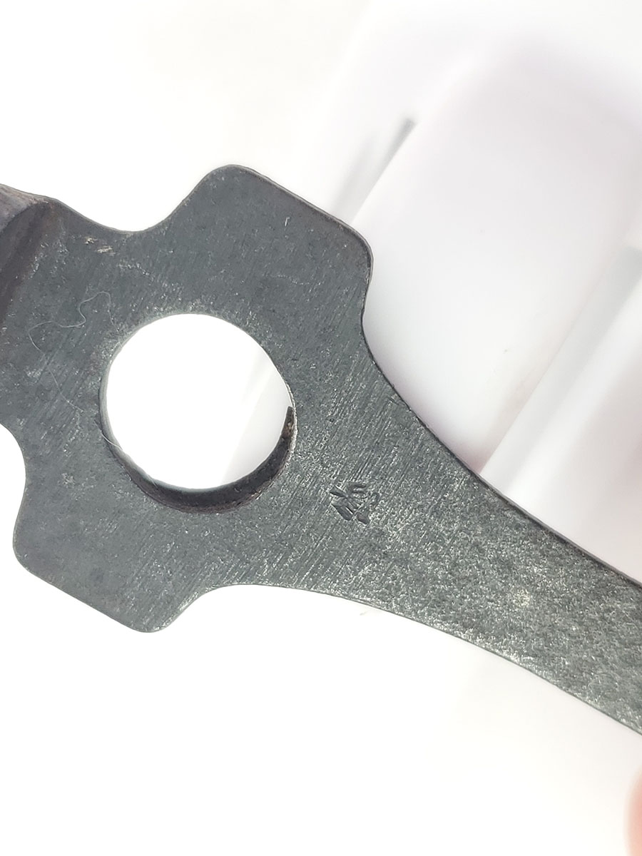 7/8/20 – This is an original, early WW2 production droop eagle 63 luger tool. These were used with Lugers up until 1937 when they switched to the stick winged eagle 63 proof stamp. The stamp on this tool is crisp, and the tool has minimal wear.