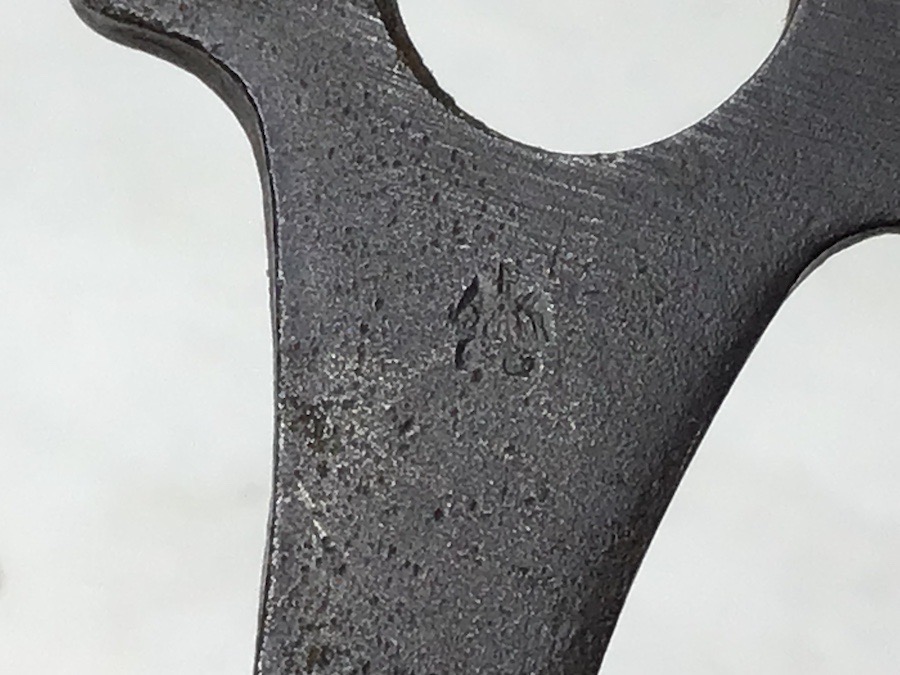 6/11/24 – This is an original Mauser eagle 63 Luger tool. The droop winged eagle stamp was used from 1935-1938 on Mauser Lugers. The front of the tool has a distinct stamp, but shows minor wear. The tool is in very good condition with no rust or pitting.