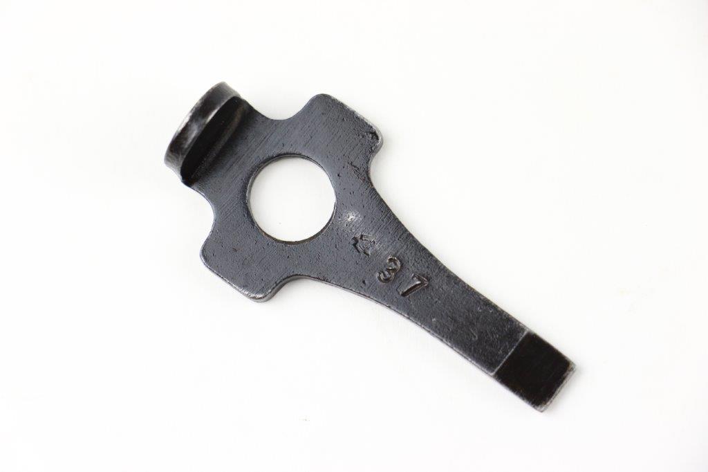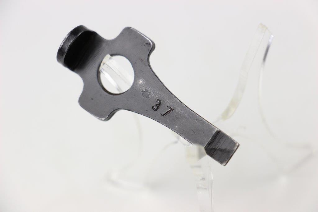 7/5/24 – This is an original WW2 production Mauser Luger tool. The tool is stamped on the front metal with a droop winged eagle 63 military proof stamp from the Mauser factory. Below this proof is a number “37” stamp, which is likely added by a military arsenal either for Police re-issue or for field replacement. The tool has all original finish and mild surface patina throughout with natural age but no major issues.