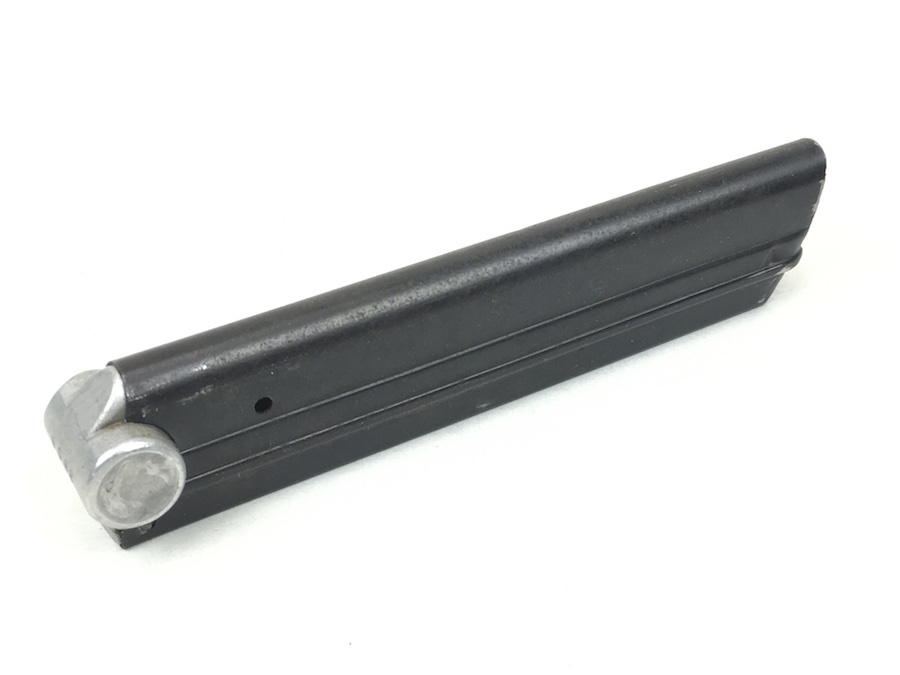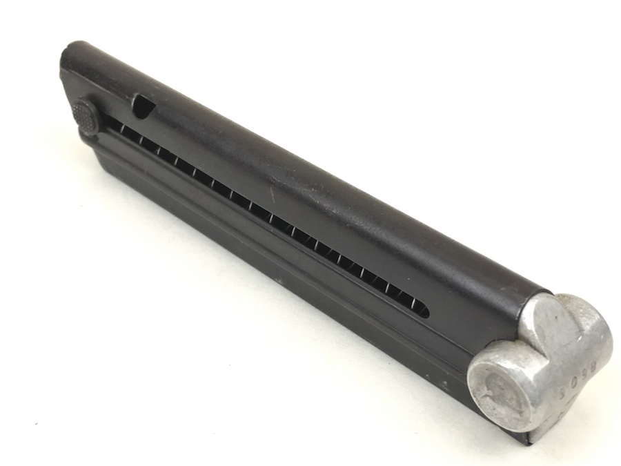 4/24/19 – This is an original pre WW2 production Mauser Luger magazine. The base is serial numbered 9098 q with a “+” sign and droop winged eagle 63 proof. The magazine frame has no rust or pitting and only light use wear and some age patina. The spring is strong and fully functional. Guaranteed original.