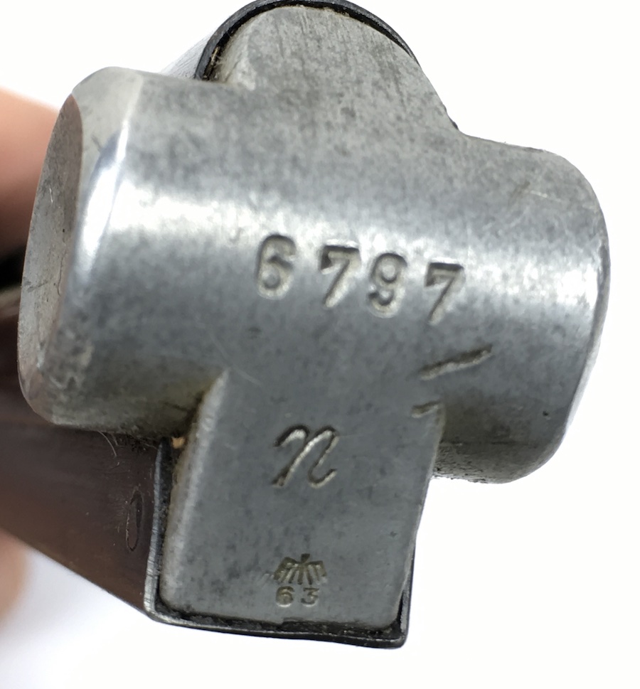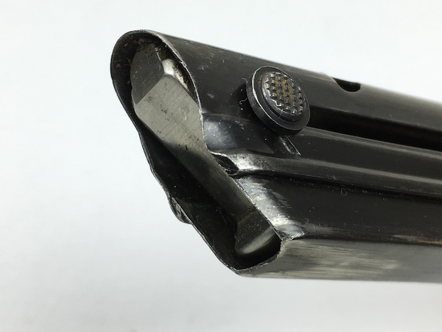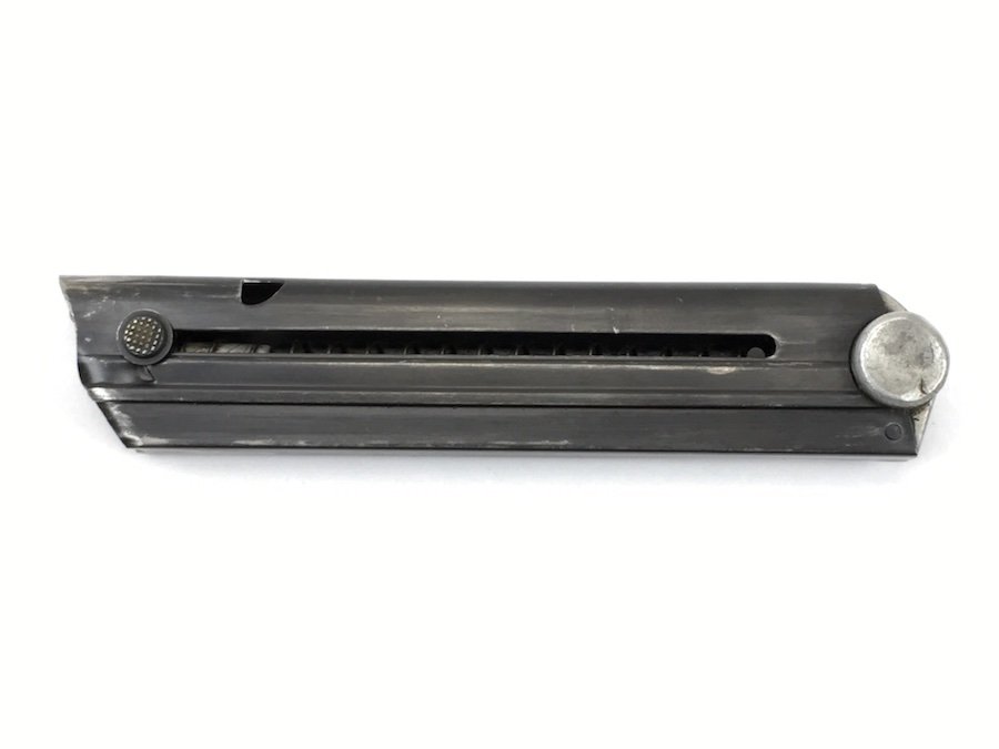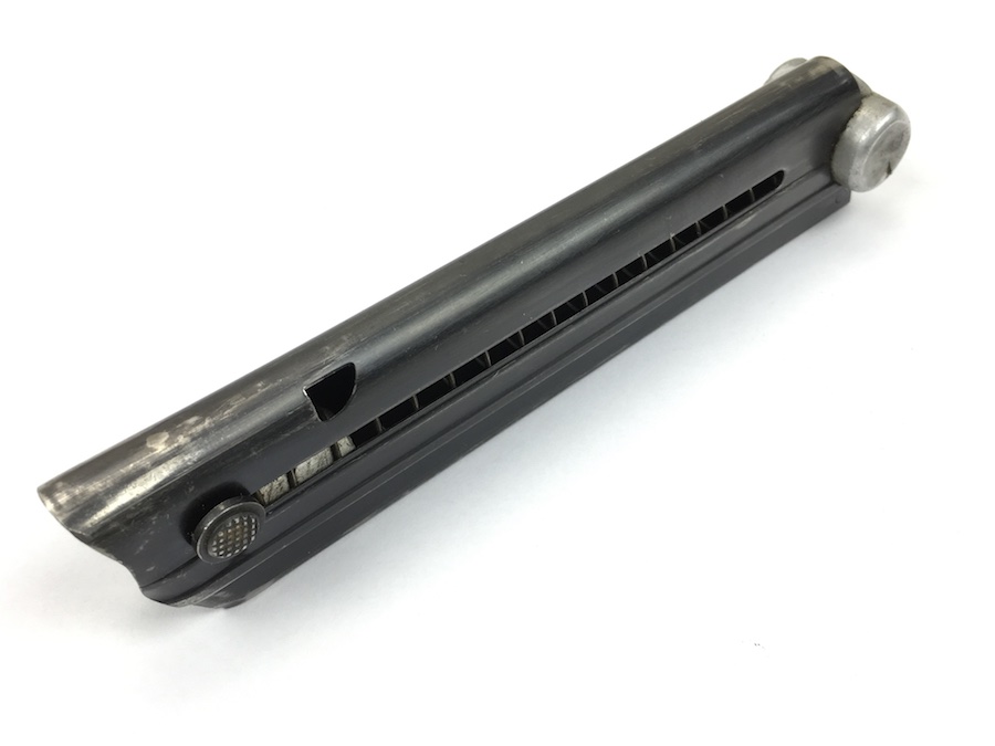 7/29/19 – This is an original pre WW2 production Mauser Luger magazine. The base is serial numbered 6797 n with a droop winged eagle 63 proof. The magazine frame has no rust or pitting and only light use wear and some typical age patina. The spring is strong and fully functional. Guaranteed original.