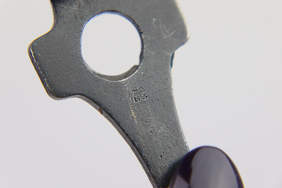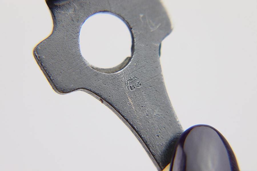 11/1/22 – This is a great example of an original Mauser Luger tool from WW2. The metal has retained most of its blued finish showing minor finish loss/thinning along the edges of the screw head tool. There are minor signs of handling wear throughout the tool and a few small patches of minor pinpricking. The front of the tool features a droop wing eagle 63 proof mark.
