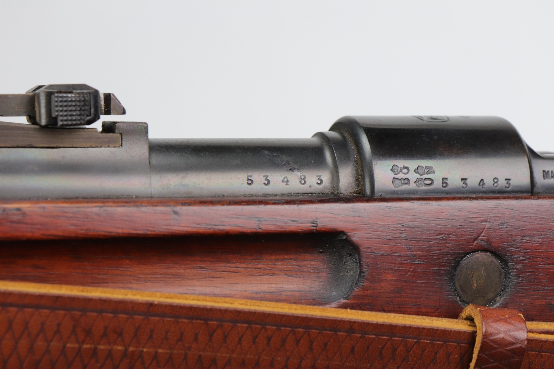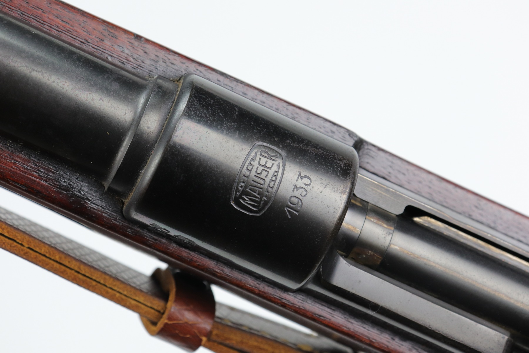 1/6/21 – This is an excellent example of a DRP-marked Mauser K98, manufactured in 1933. This gun was ordered for and issued to the “Deutches Reich Post” or German Postal Service during the Weimar period of German history. This one was made the year Hitler came to power in Germany. This one is all matching and has a very clear “DRP” stamp on the stock. It is excellent retaining virtually all of its finish – just some minor pin-pricking throughout. The stock is excellent – minor dings and bruises. It comes with a rare sight cover and cleaning rod. It also comes with a very nice reproduction sling. The bore is excellent – shiny with strong rifling.