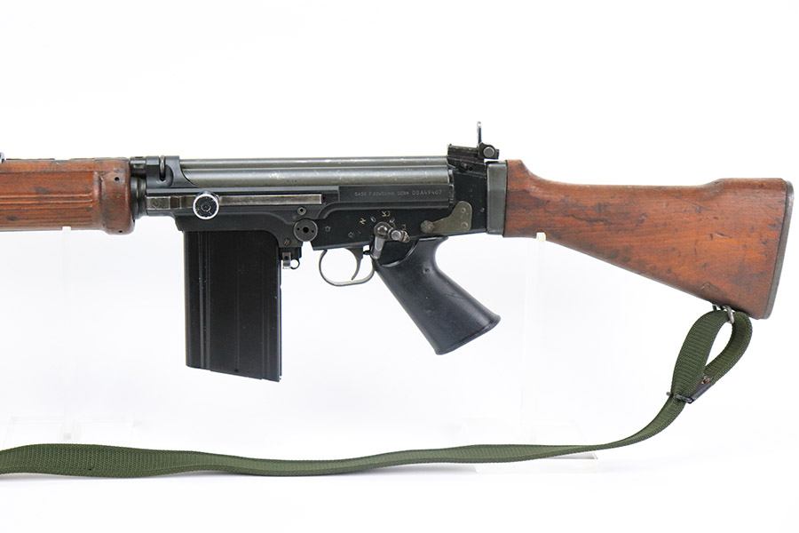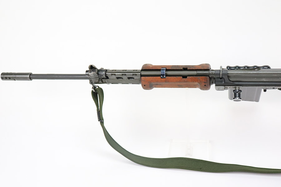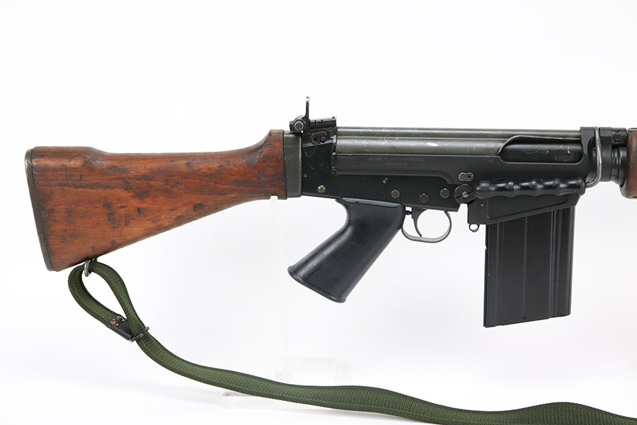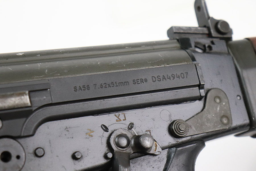 11/1/22 – This is a semi-auto FAL in .308 with a DS Arms receiver and chrome-lined barrel. The remaining parts come from an Israeli parts kit, and many of the small parts have Israeli proof stamps, as shown. The receiver is new (modern production built in the last few months) and has only been fired a few times. The bore also shows minimal use wear with strong rifling throughout (10/10 overall). The previous owner only fired ~20 rounds as a test for functionality. The wood is in great condition as well with no cracks, but there are a few minor scuffs and typical handling indents / imperfections. Comes with a 20 round magazine and canvas sling as shown. Mechanically excellent.