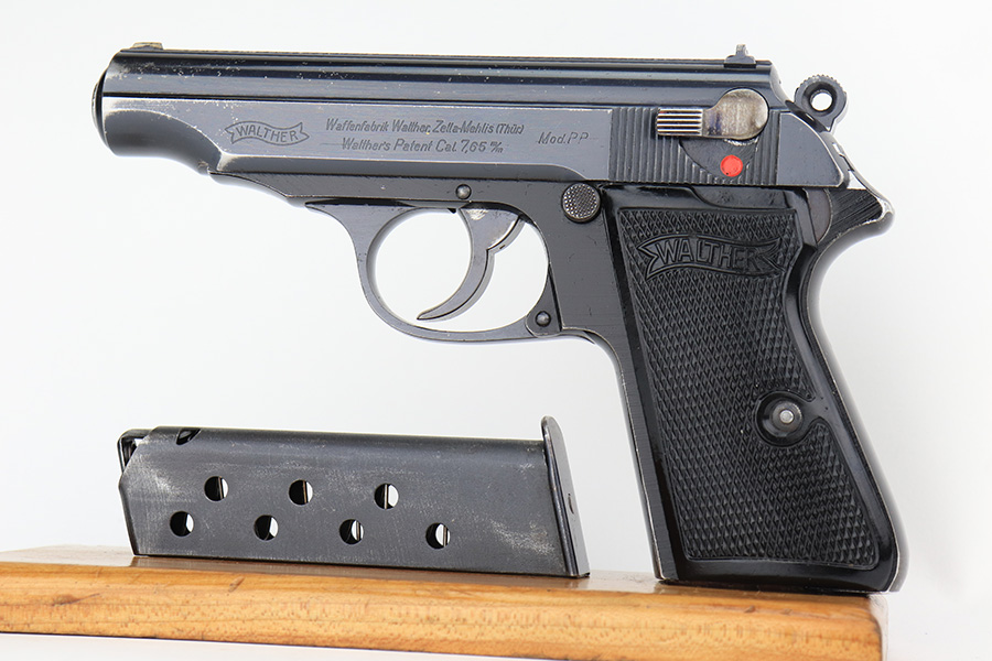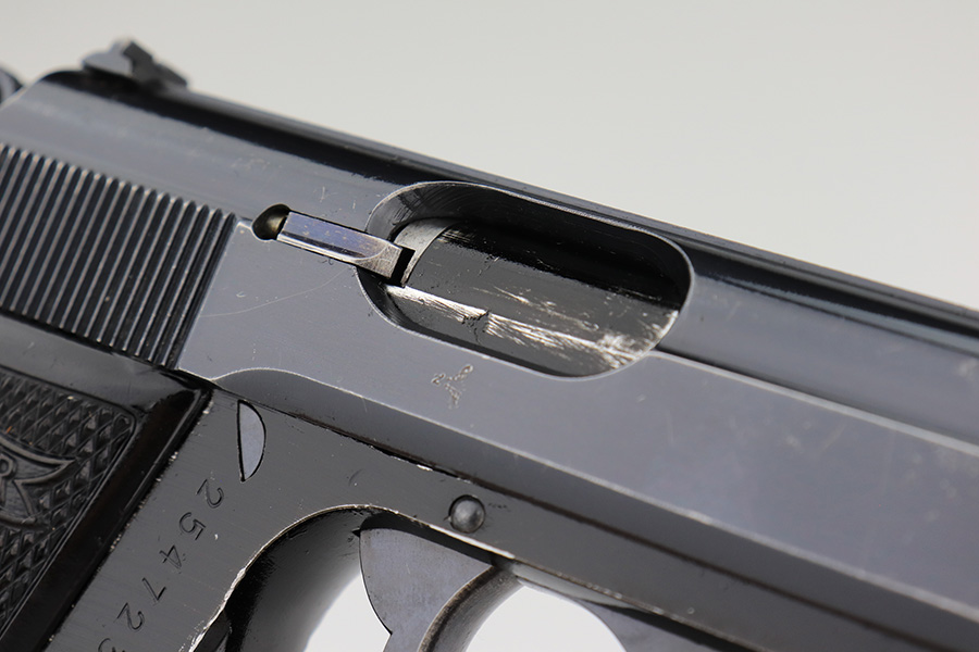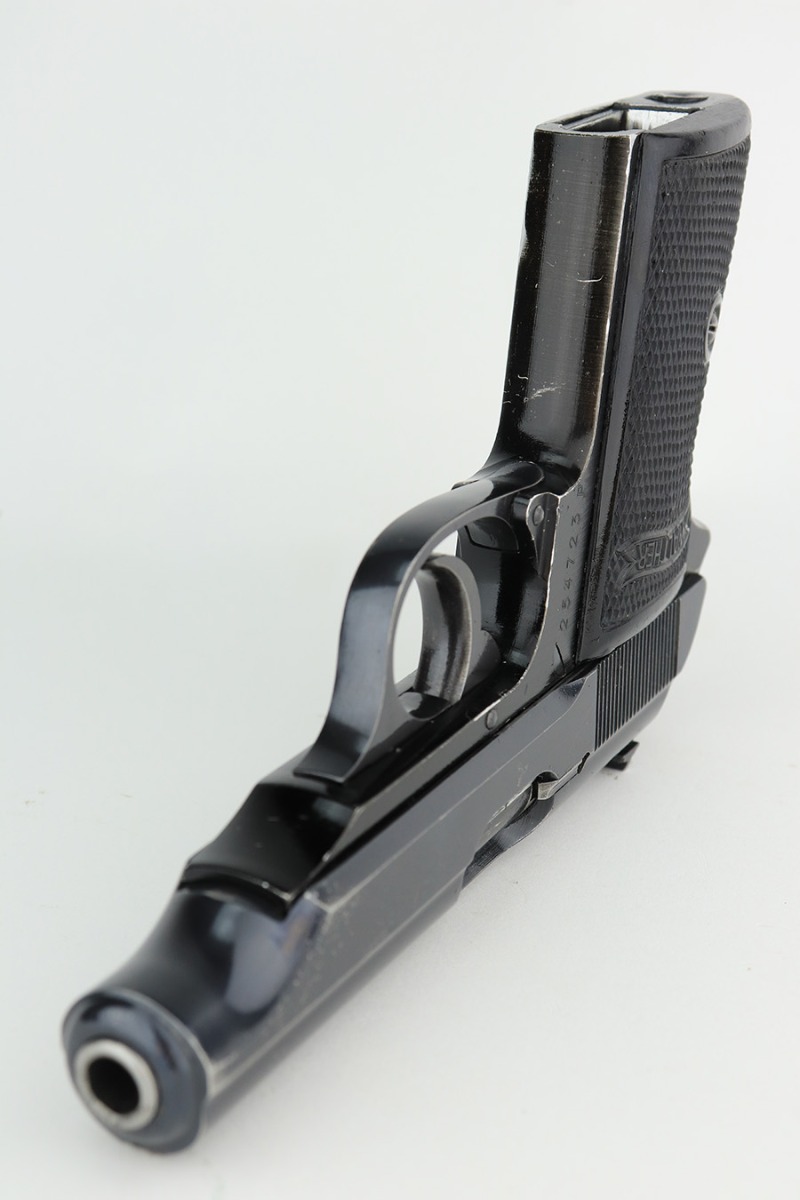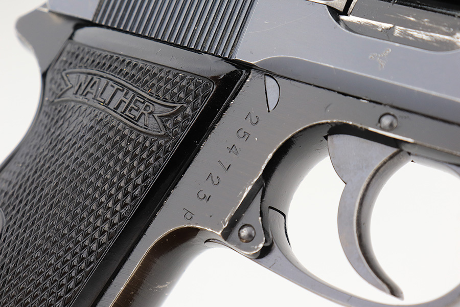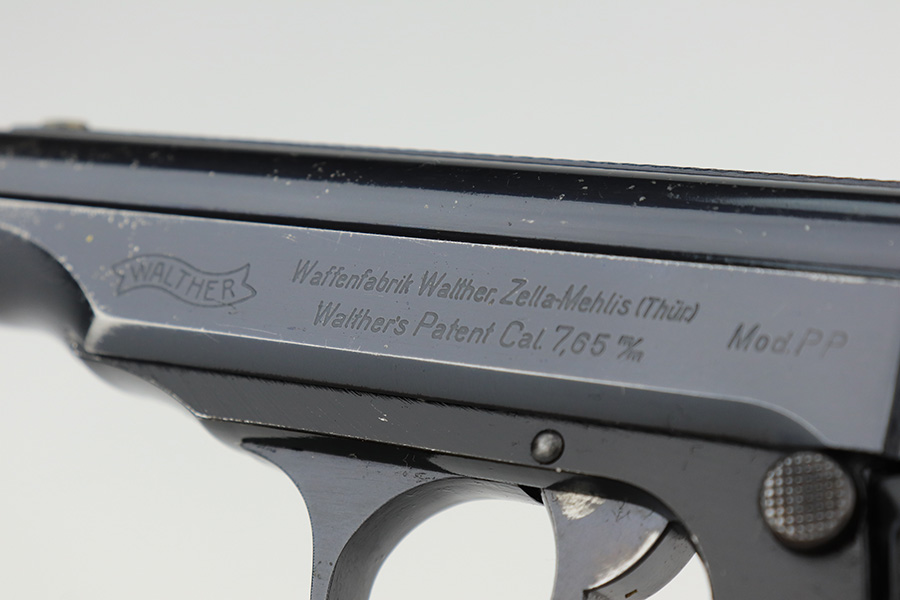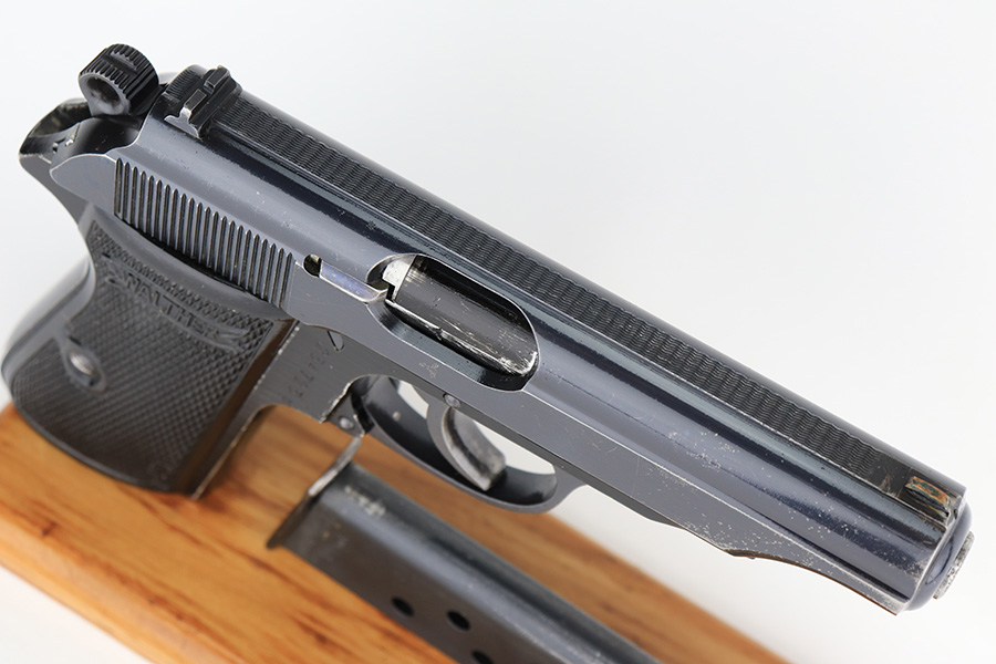 1/23/23 – This is a very nice example of a Walther PP sold in the commercial market in 1941. This one has a lightweight duraluminum frame. It is all matching and has the proper “Eagle N” proofs. It has retained about 94% of its original finish. There is light spotty wear on the front half of the slide, mostly around the muzzle, and some light scratches and handling marks on the grip strap, mostly on the front. Fitted with excellent period-correct black bakelite grips and comes with one proper wartime magazine. The bore is shiny with strong rifling with some very light freckling here and there.