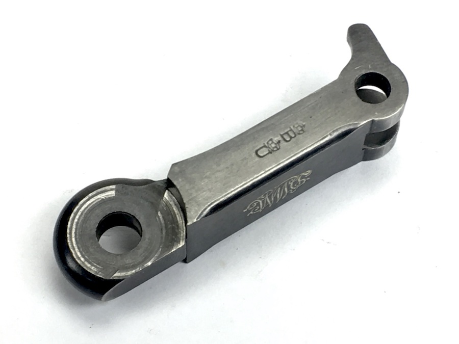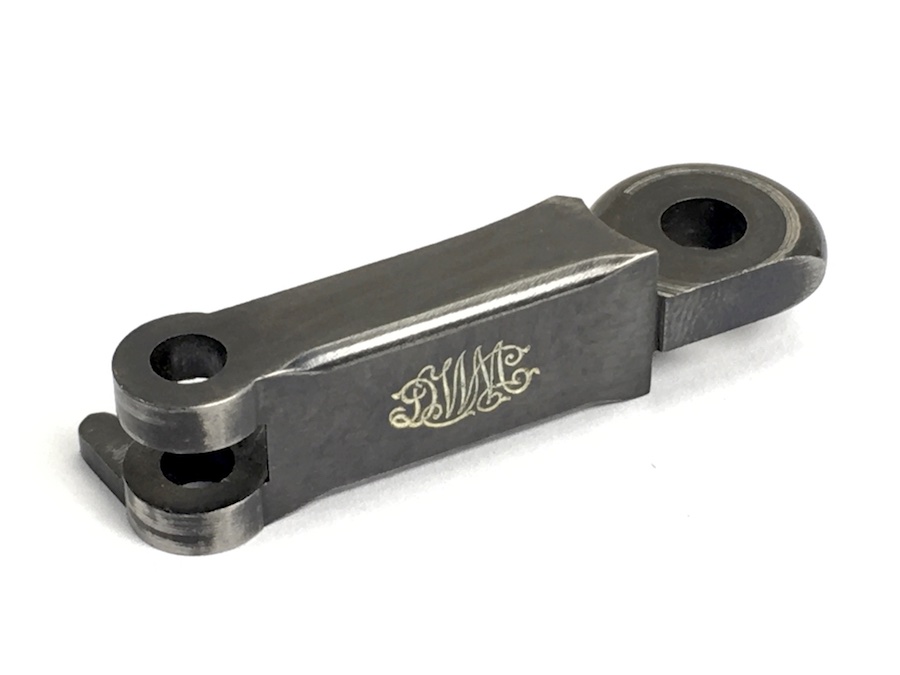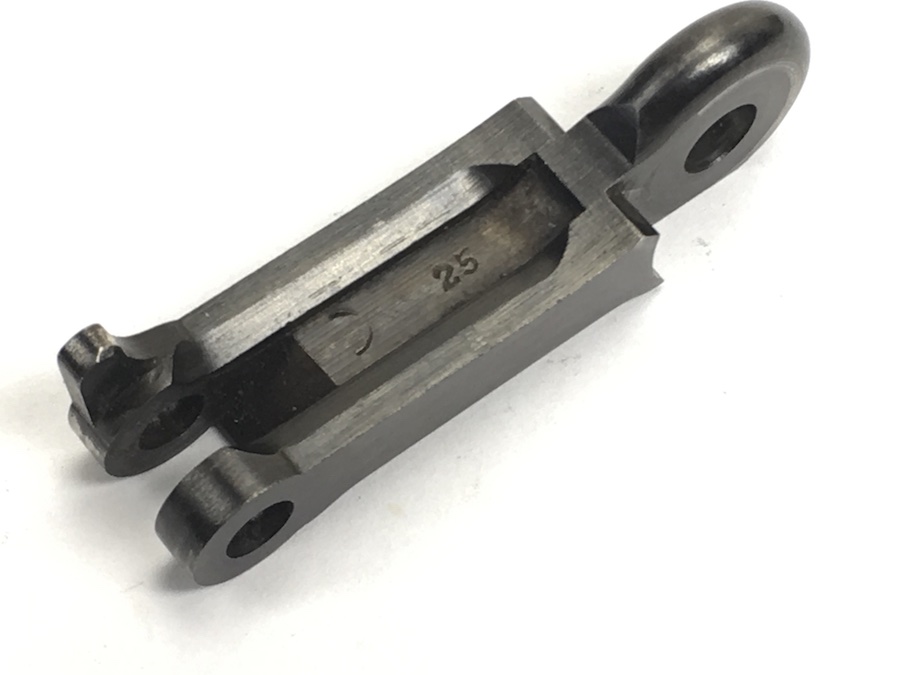 8/12/19 – This is an authentic, forward toggle for a DWM made Luger. Bluing is about 95% and the DWM logo marking is distinct. The numeral 25 are stamped on the underside. Original, usable piece from the WWI era.