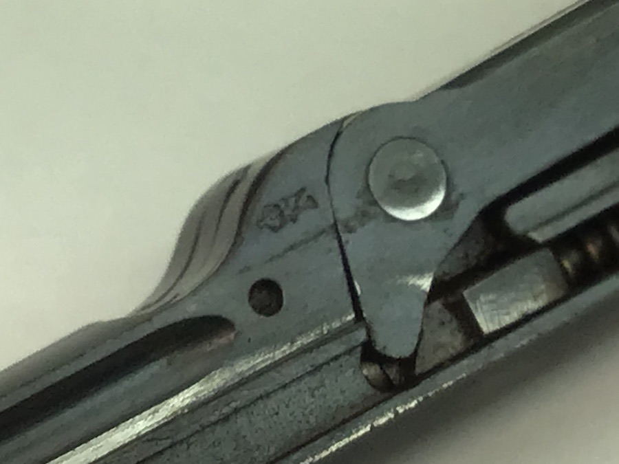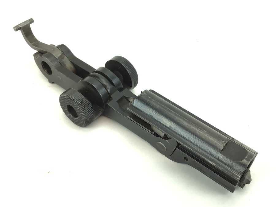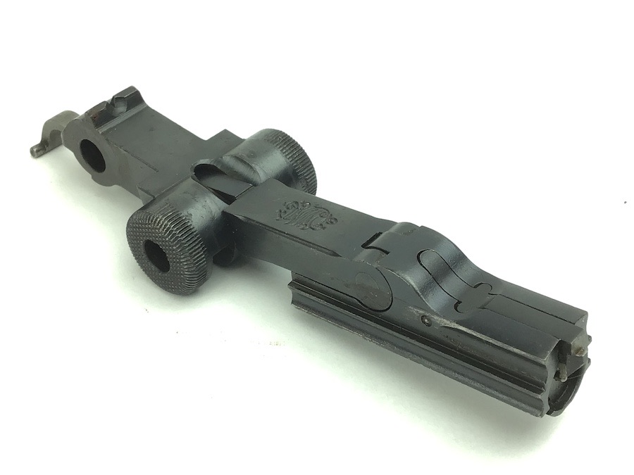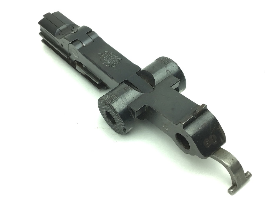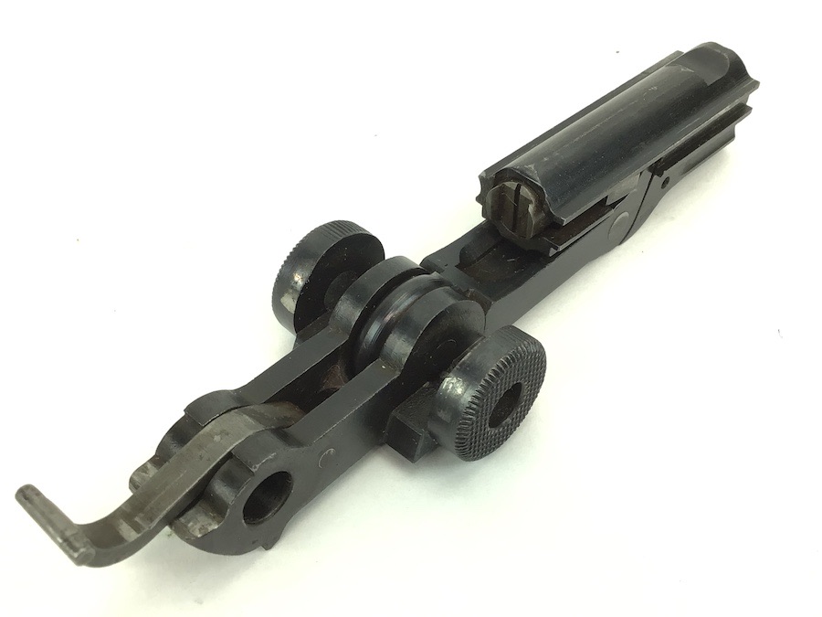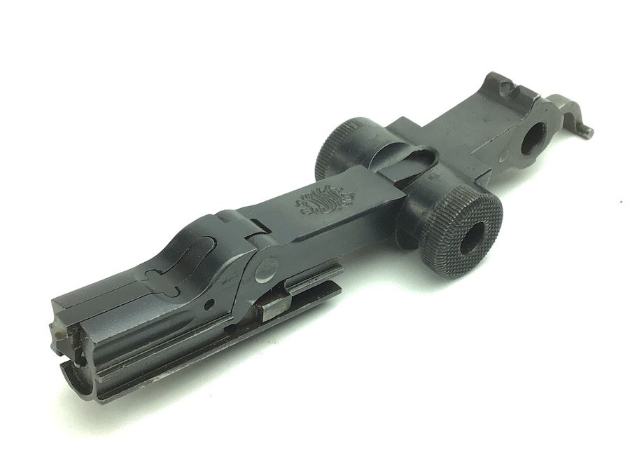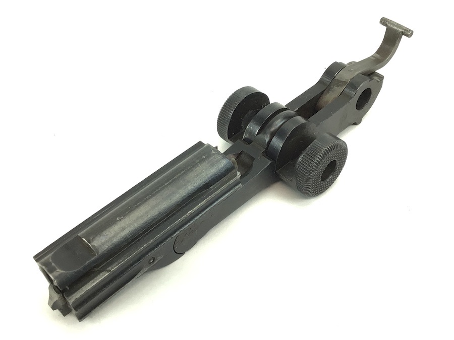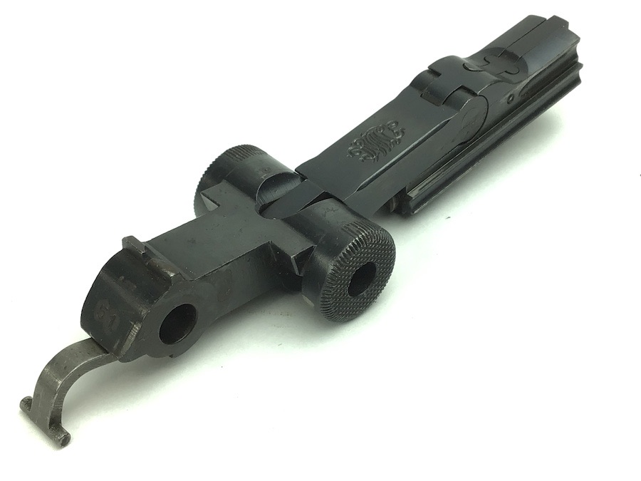 7/15/22 – This is a complete, authentic, Toggle Assembly for a DWM WWI era Artillery Luger. #51 stamped behind the rear site. Bluing is 98% and all pieces function properly. Firing pin is un-fluted and un-numbered. Includes the Crown N stamped breech block, extractor, springs, pins, firing pin and coupling link.