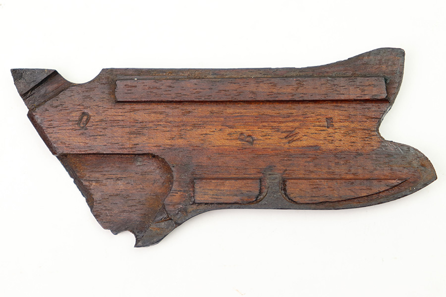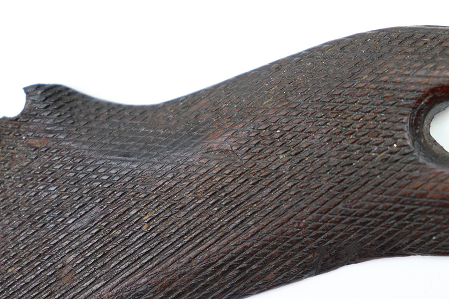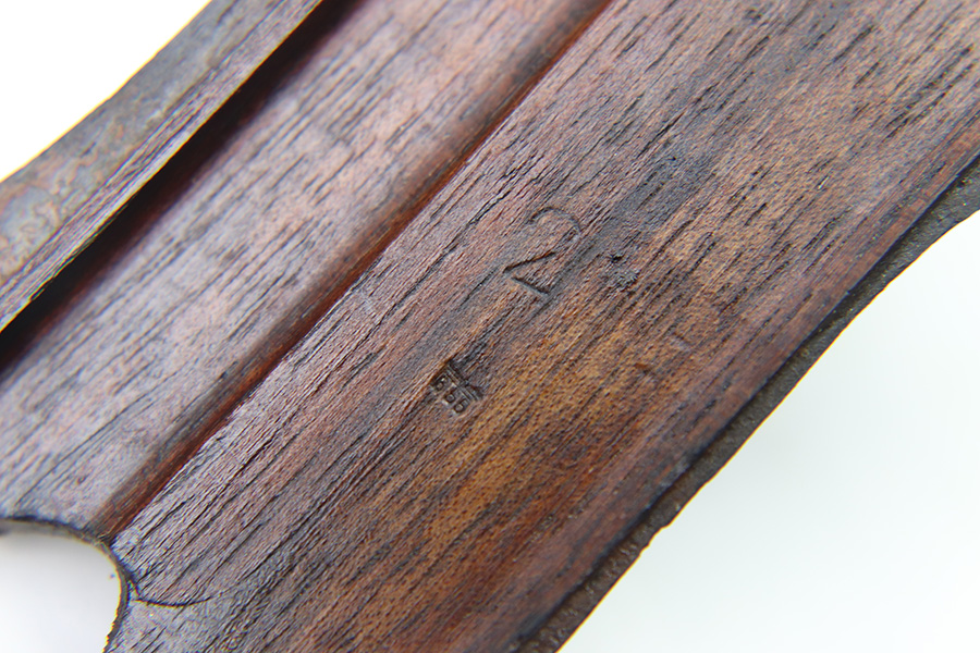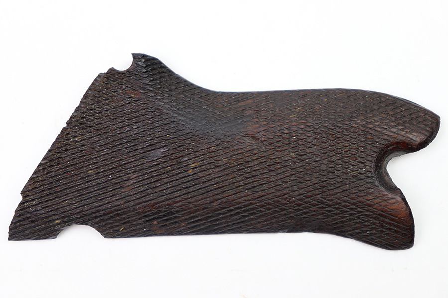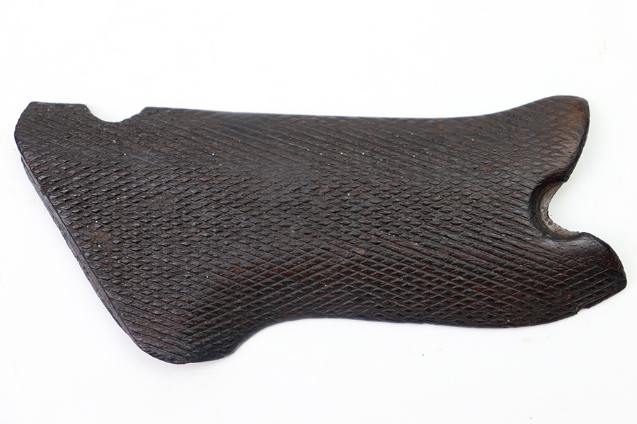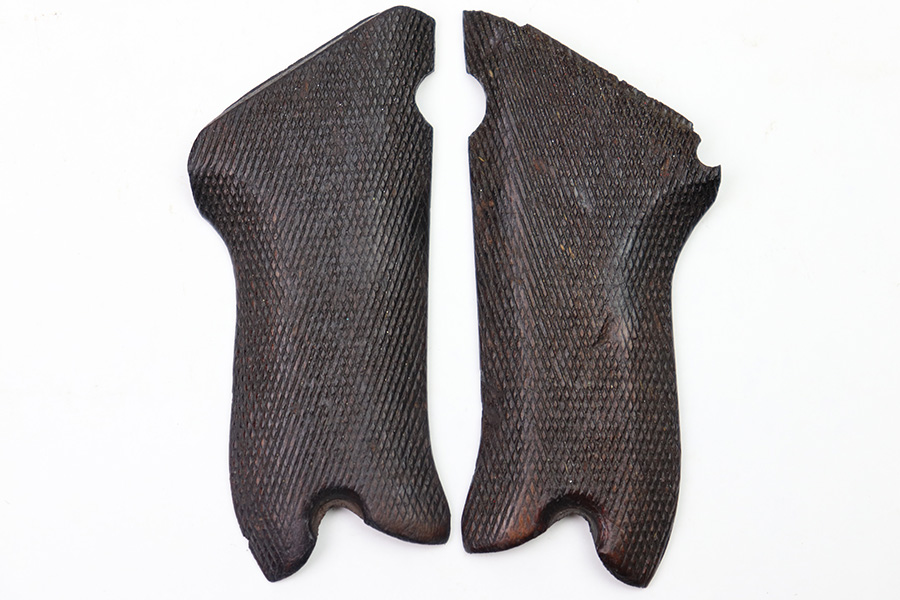 9/28/22 – This is a set of very nice wooden Luger grips made by Mauser during the WW2 era. Both grips are stamped with a E/655 proof mark on the interior. The left-hand side grip panel is in very nice condition with good checkering throughout. There are a few dings toward the middle of the grip and along the front facing edge. The right-hand side panel has great checkering throughout and no dings in the grip, there’s a small chip toward the bottom on the rear-facing edge. The blemishes described above are visible in the photos. Excellent addition to a wartime Mauser luger that my have cracked or heavily worn grips!