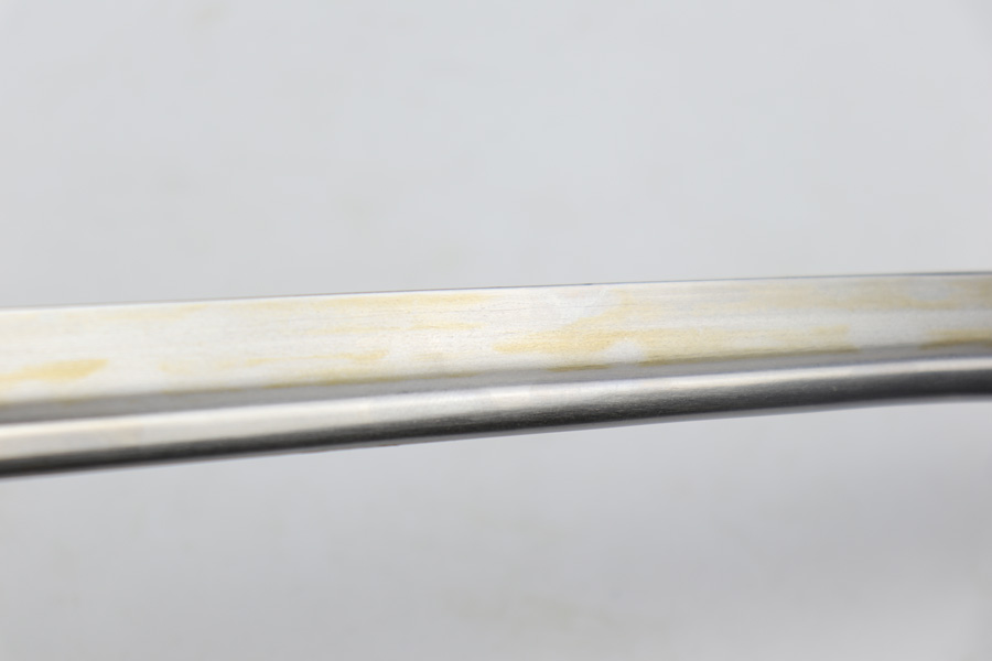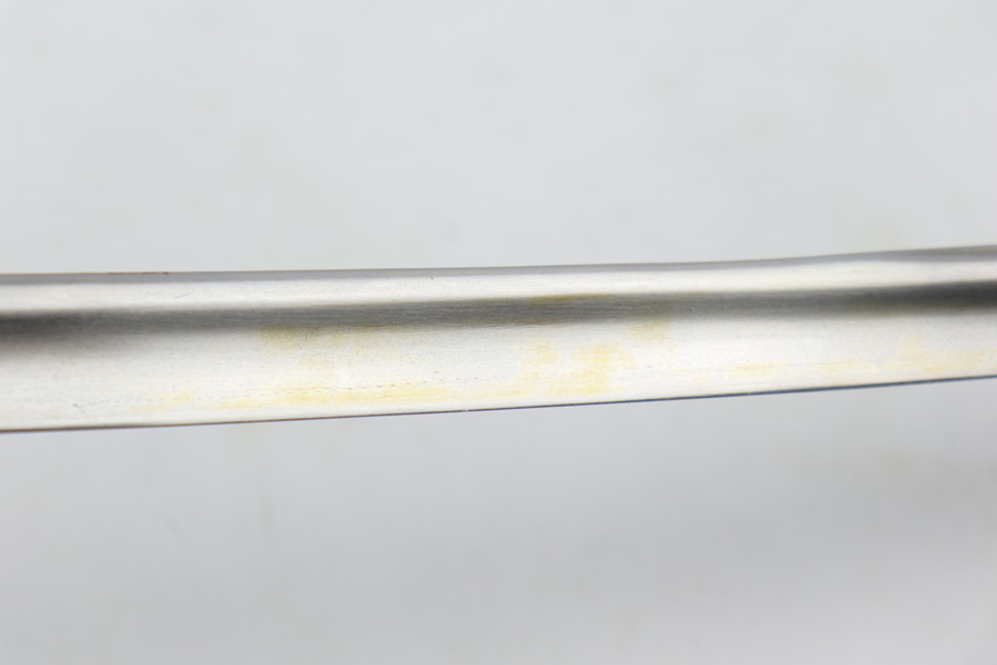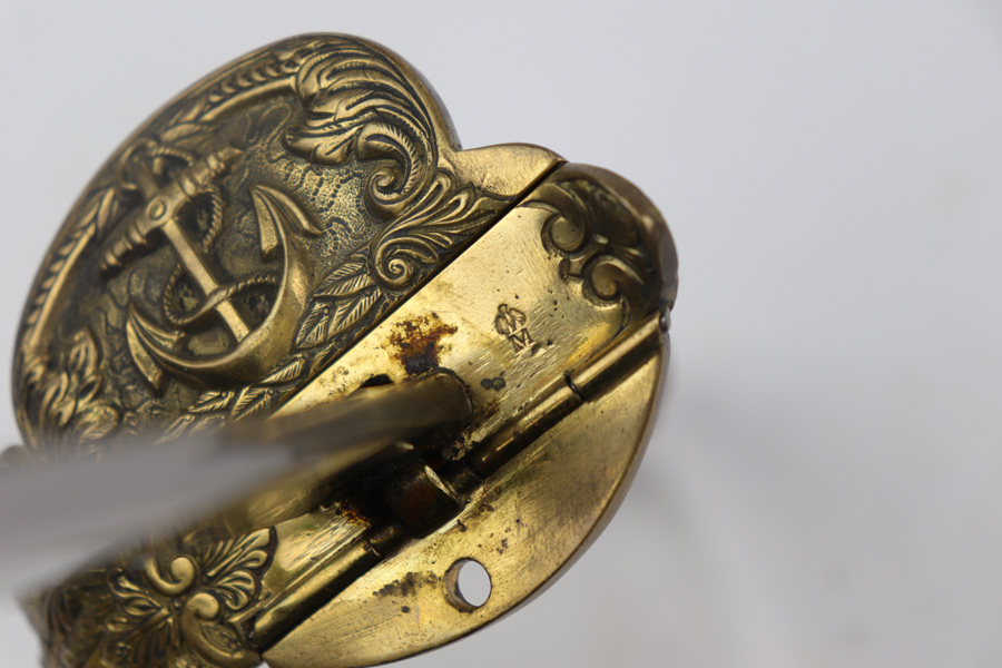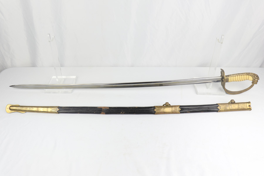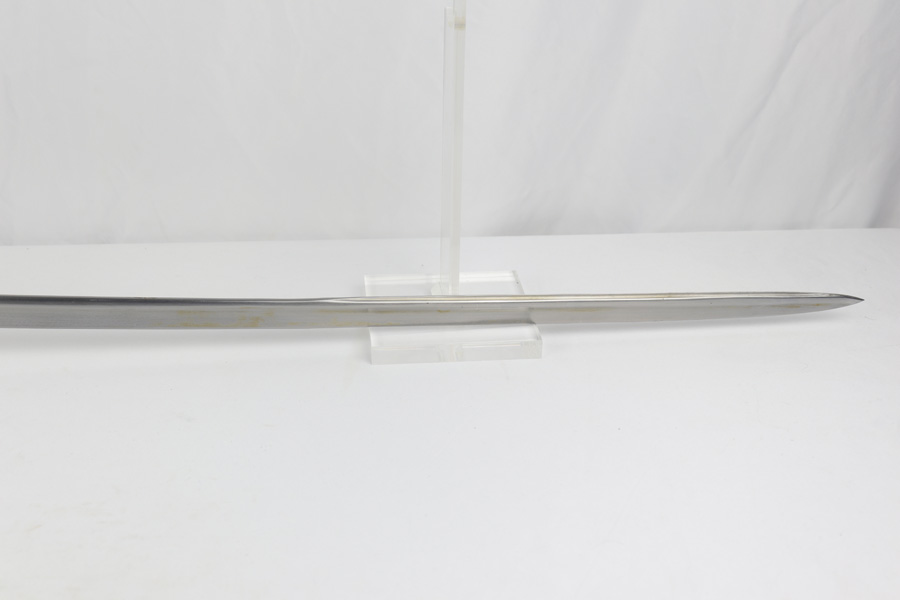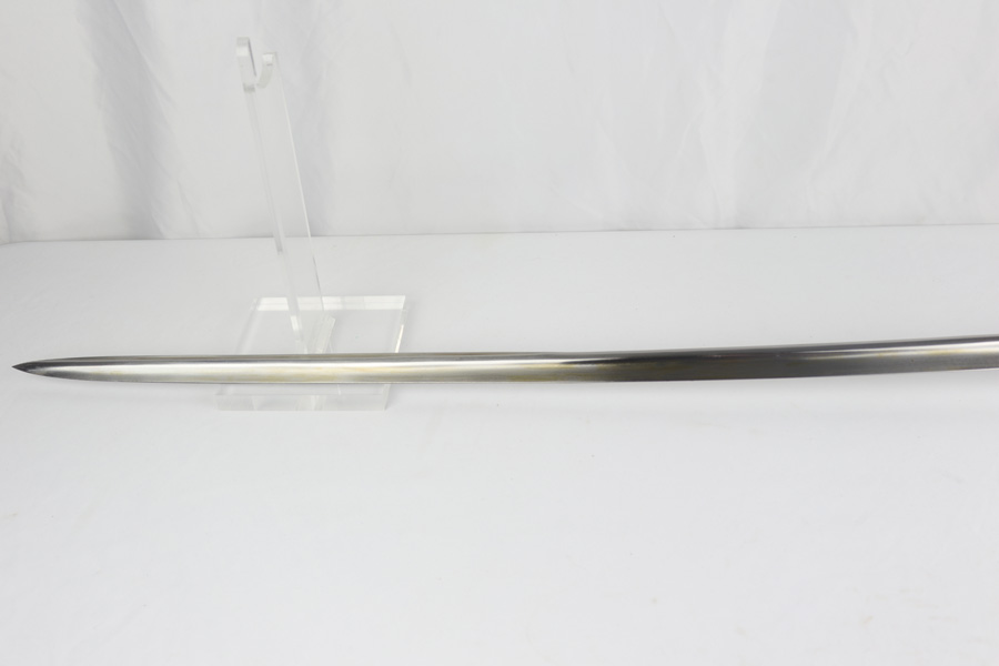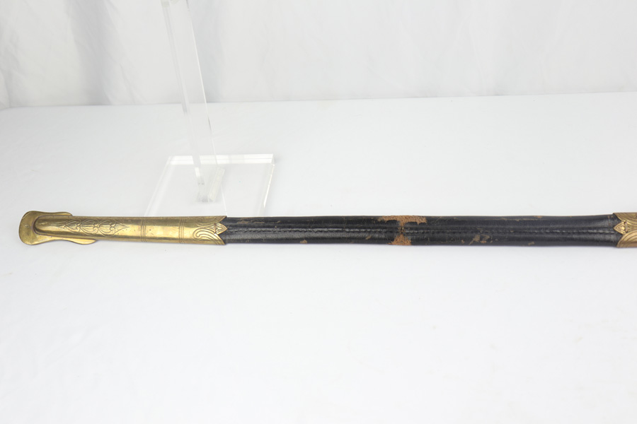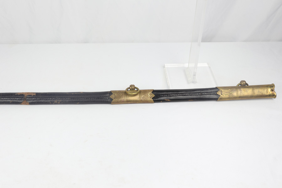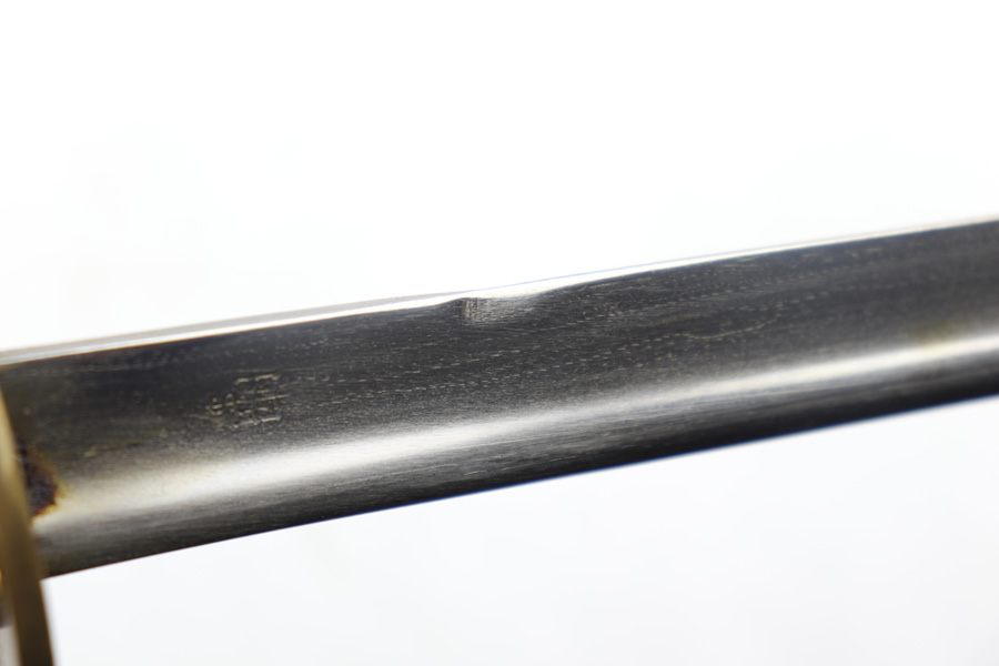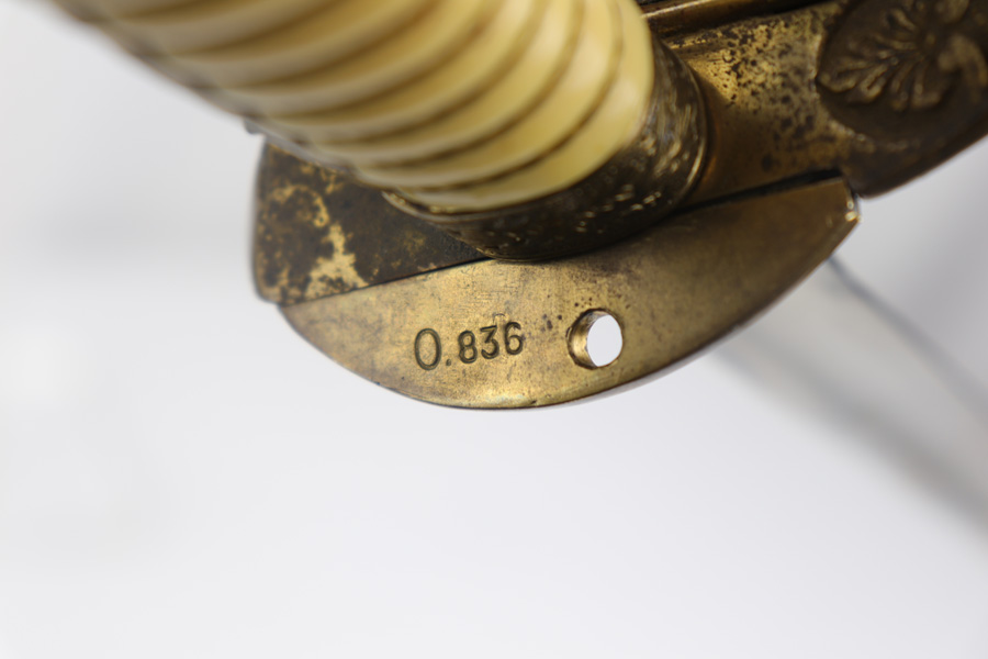 4/16/19 – This is an original WW2 Kriegsmarine (nazi navy) sword. The sword and scabbard are both Ostsee marked and unit numbered “O. 836” (matching). These weren’t used in combat but rather for parades and a symbol of status. The sword is maker stamped by E.F. Horster and there’s barely any notable wear on the blade. No signs of sharpening either. The handle has almost no notable flaws as well. The only issue of note is the scabbard has a wear point where it can be belt or “goes limp” when the sword is not inside. This is the only area where there’s loss of the black leather finish around the body of the scabbard. The rest of the scabbard is very nice. Overall a great collectible sword.