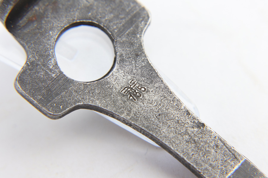 12/13/18 – This is an original, increasingly rare Mauser eagle/135 proofed Luger tool. These tools are often seen with Black Widow Lugers. There aren’t nearly as many E/135 Black Widows as E/655 as well, which in turn means there aren’t that many e/135 tools in circulation. This tool has an excellent, crisp stamp that’s guaranteed original and authentic.